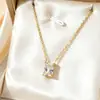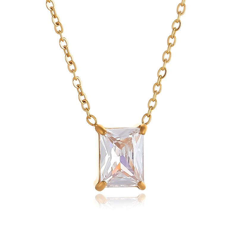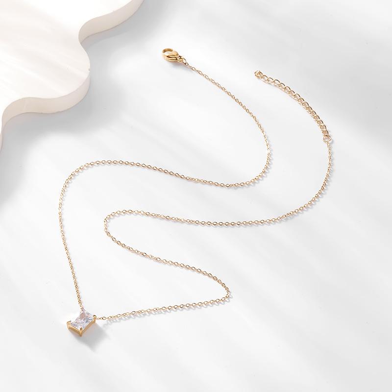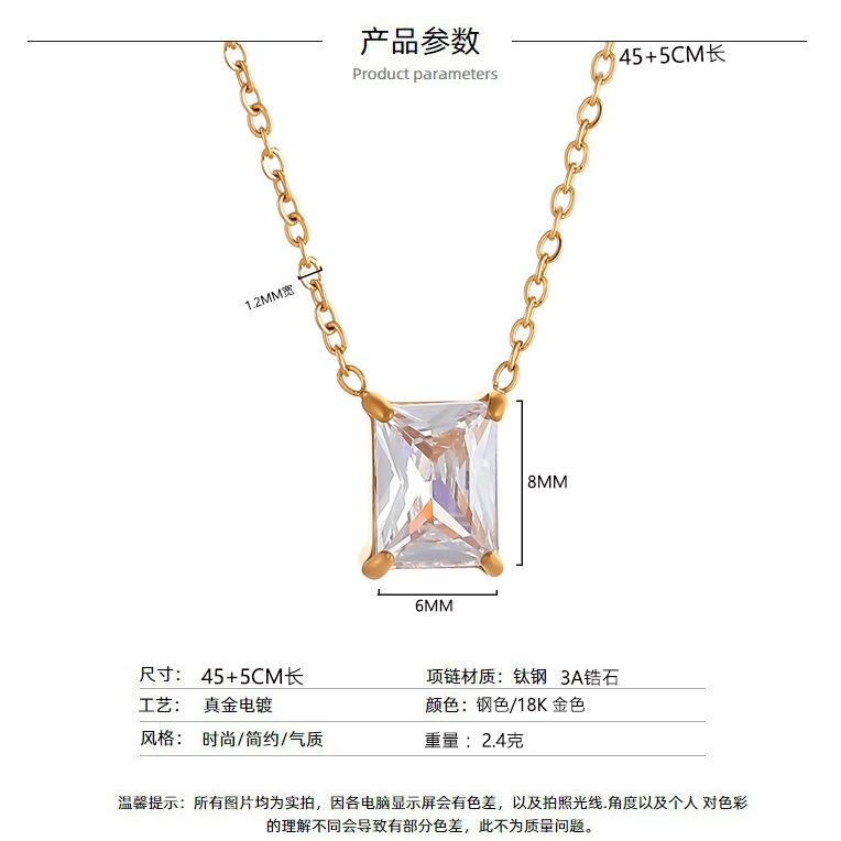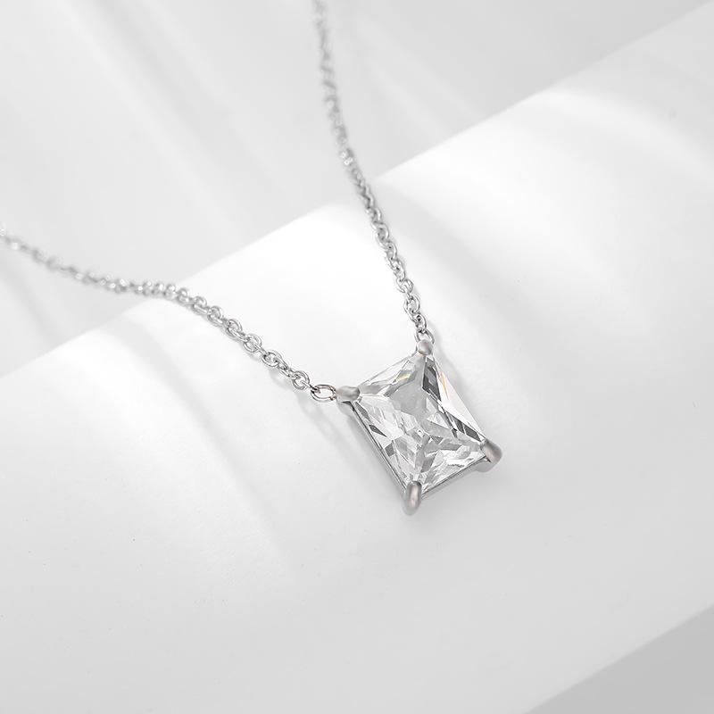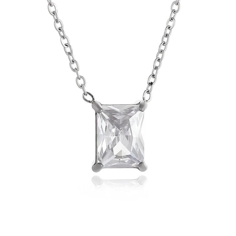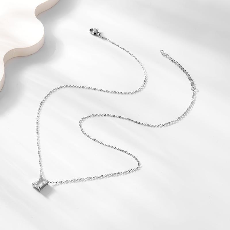 Colgante de circonita cuadrada de acero inoxidable de moda simple, elegante y sencillo, collar con personalidad que combina con todo, cadena de clavícula ligera y de lujo.