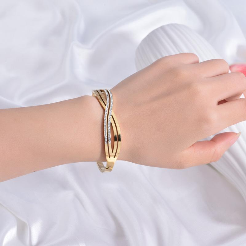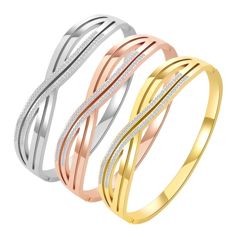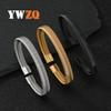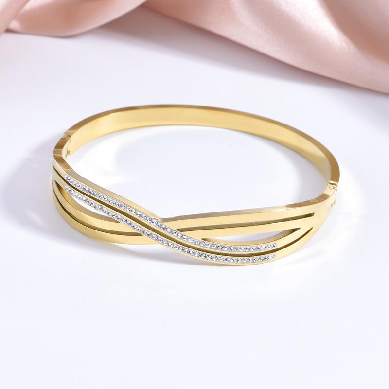 Fabricantes mayoristas de pulseras nuevas de acero inoxidable transfronterizas, moda europea y americana, apertura con hebilla de resorte, no se decolora, pulsera chapada en oro