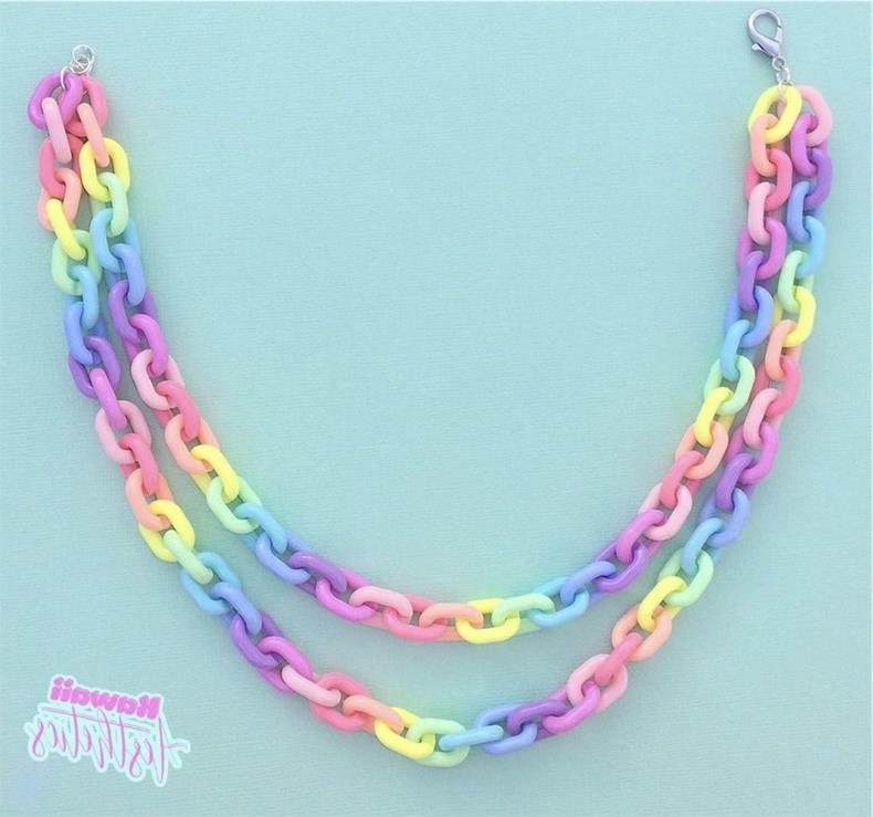 Collar popular de comercio exterior europeo y americano, exagerado para club nocturno, hip hop, cadena acrílica doble, color fluorescente, accesorios, juego de collar