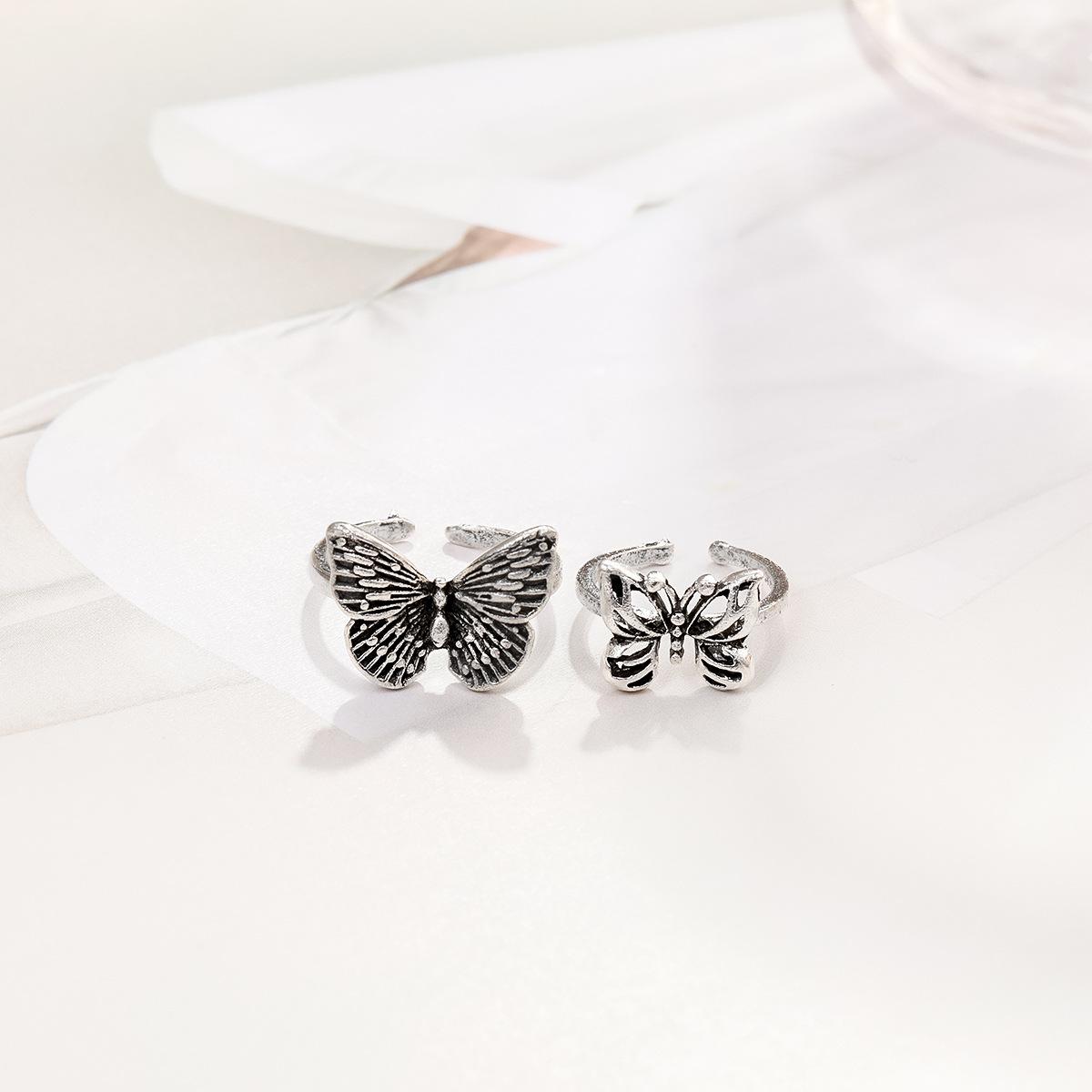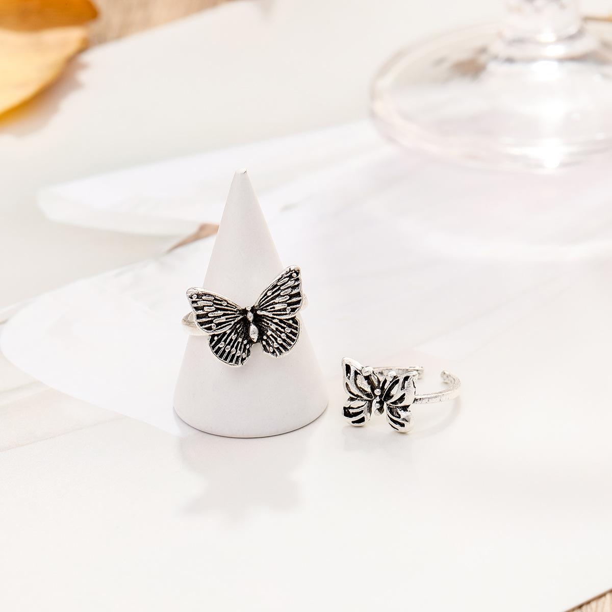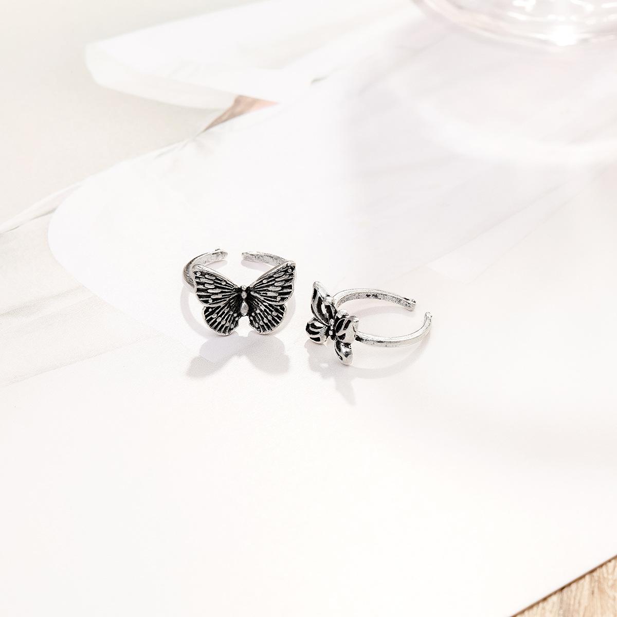 Anillo nuevo retro hueco de mariposa transfronterizo de Europa y Estados Unidos, personalidad, tendencia de moda, juego de anillos para nudillos, 2 piezas