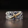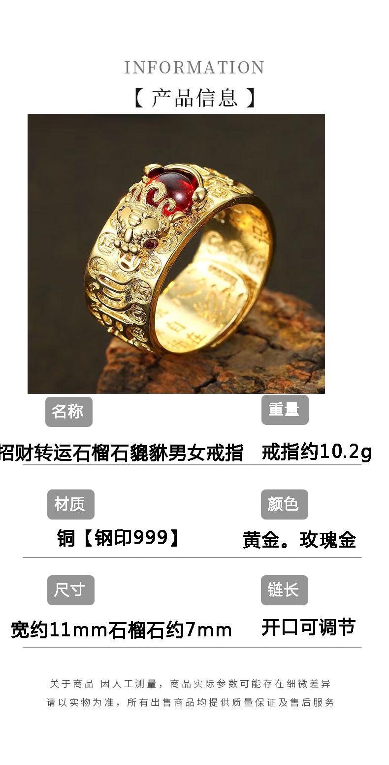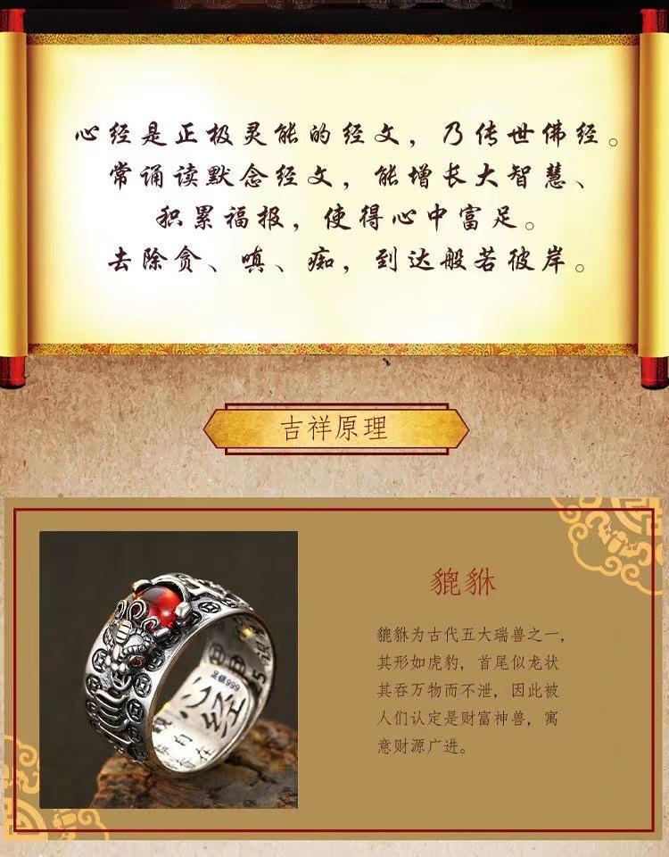 Anillo Pixiu Retro de Plata Tailandesa para Hombre y Mujer Oro Granate Moda Literario y Artístico Fan Seis Caracteres Palabras Verdaderas Apertura Anillo Viejo