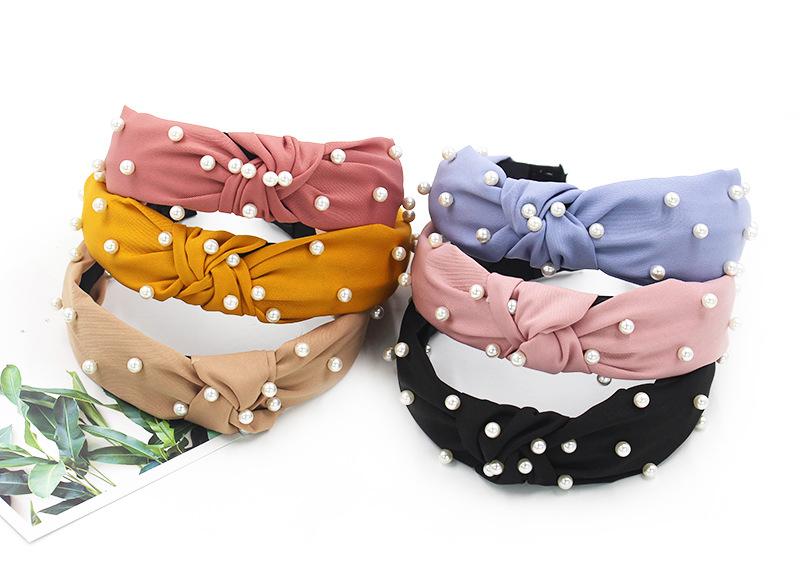 Tocado estilo coreano Diadema anudada de perlas otoño e invierno nueva banda para el cabello horquilla antigua de ala ancha diadema deportiva para lavar la cara