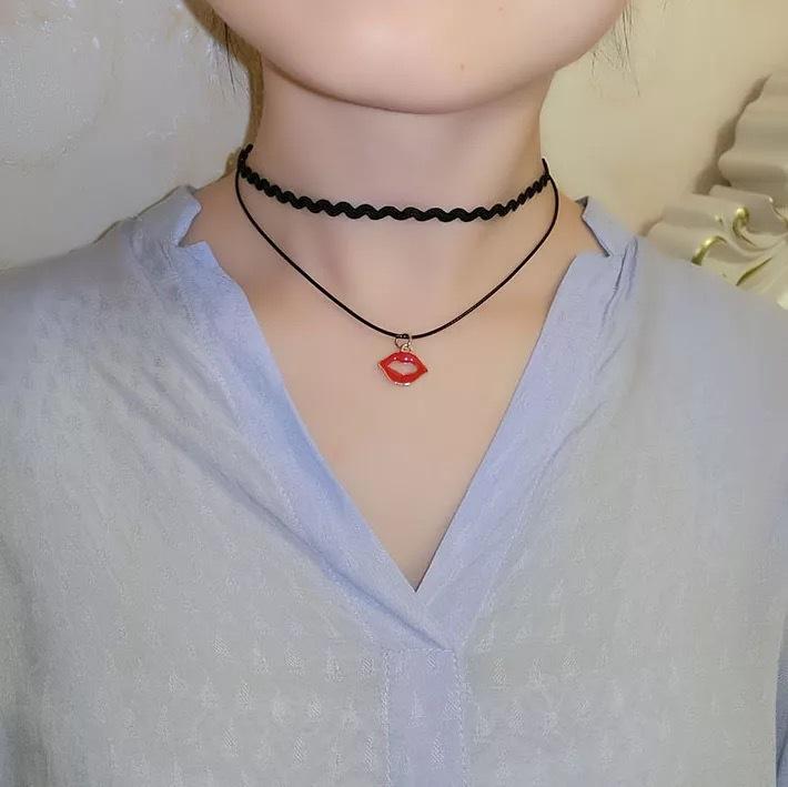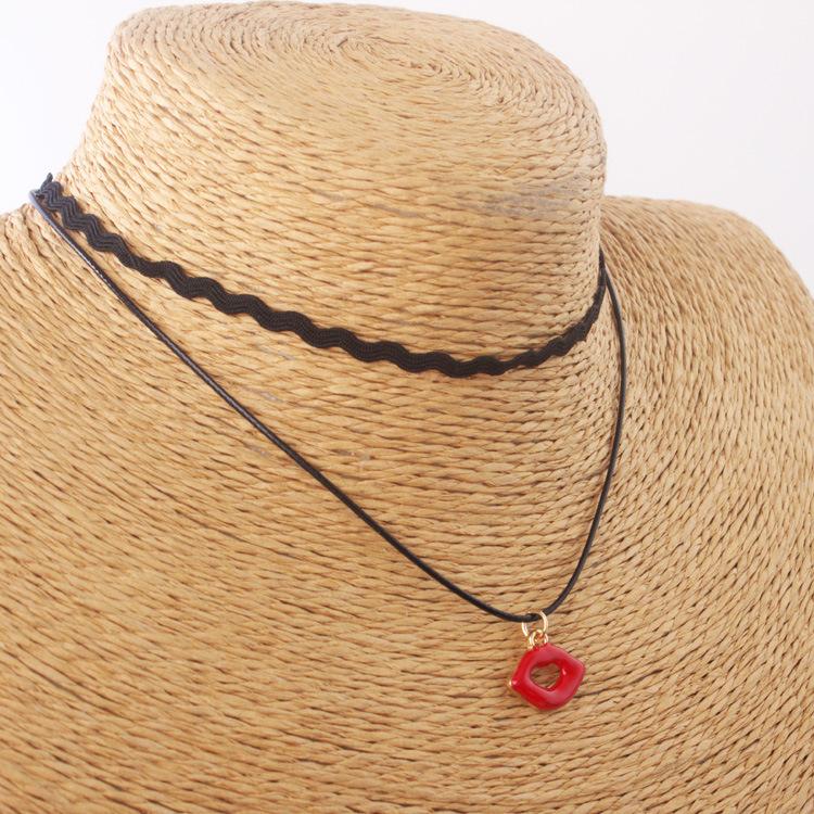 Nuevo collar de clavícula de doble capa con labios rojos, sencillo, de verano, con ondas europeas y americanas, para mujer, fabricantes al por mayor