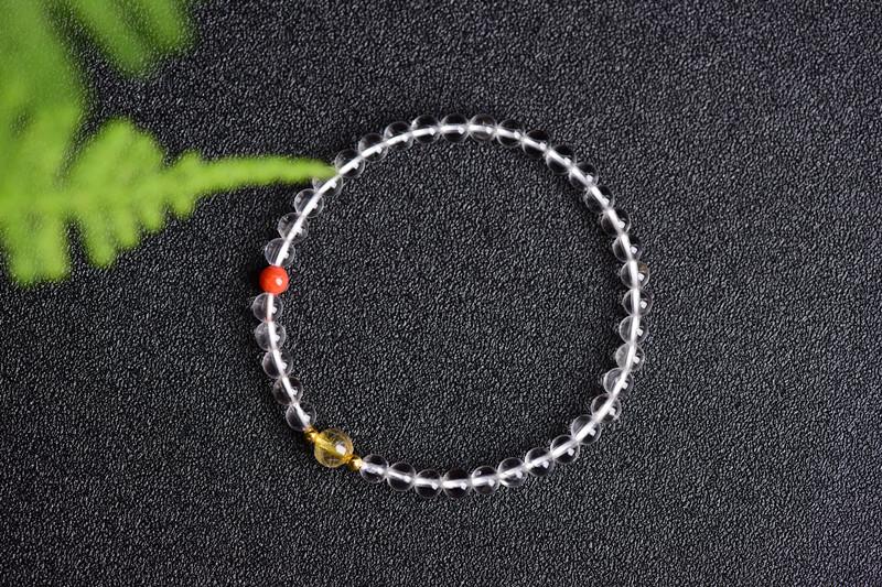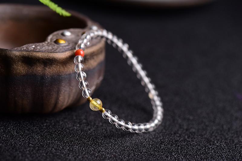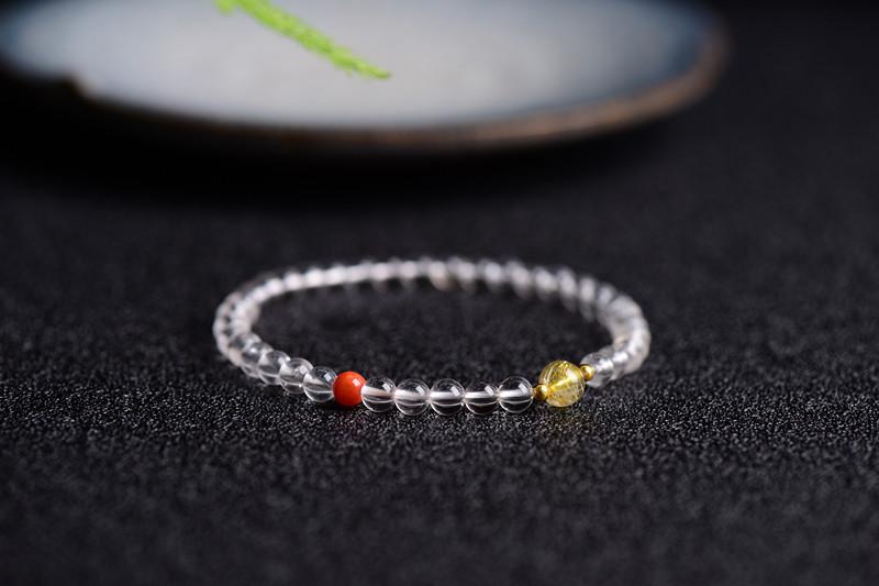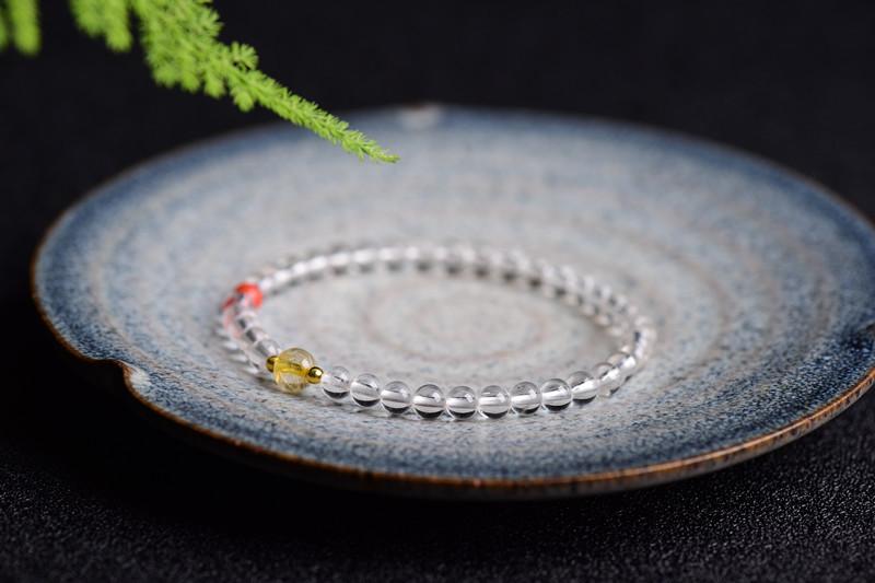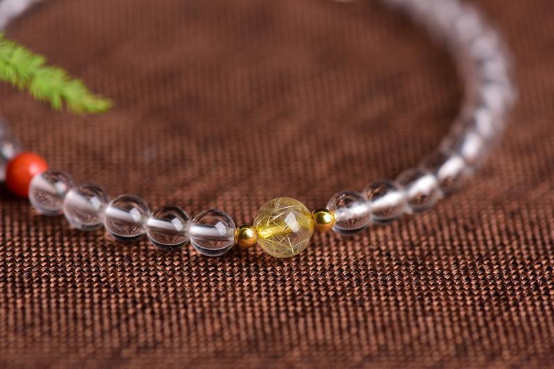 Pulsera de Cristal Blanco Natural con Accesorios de Cristal de Cabello Dorado Rojo del Sur para Niños y Niñas Joyería de Mano Pulsera de Cristal de Círculo Único
