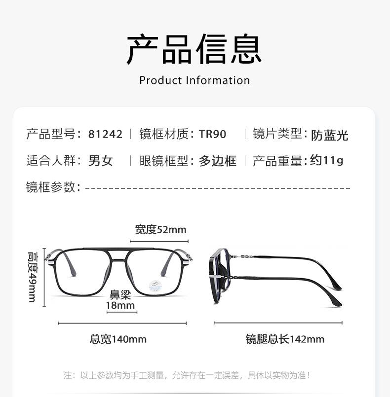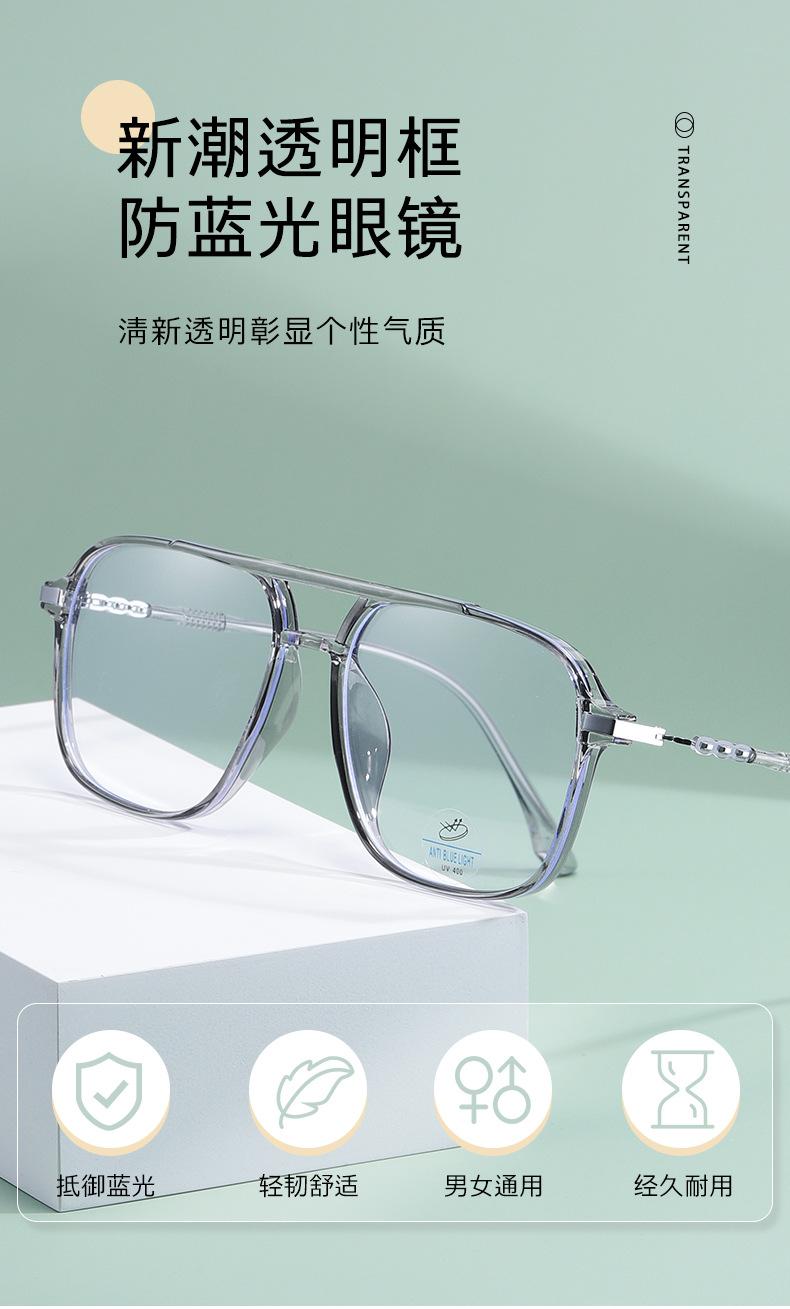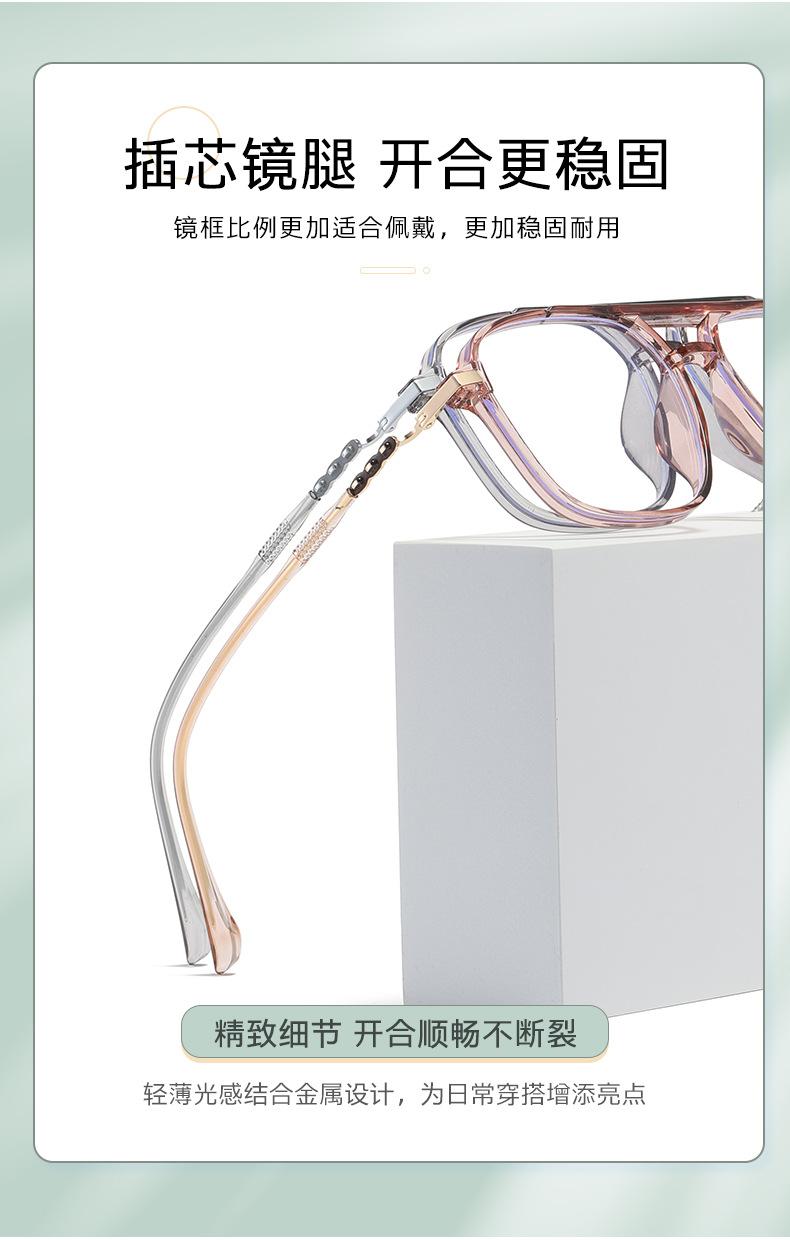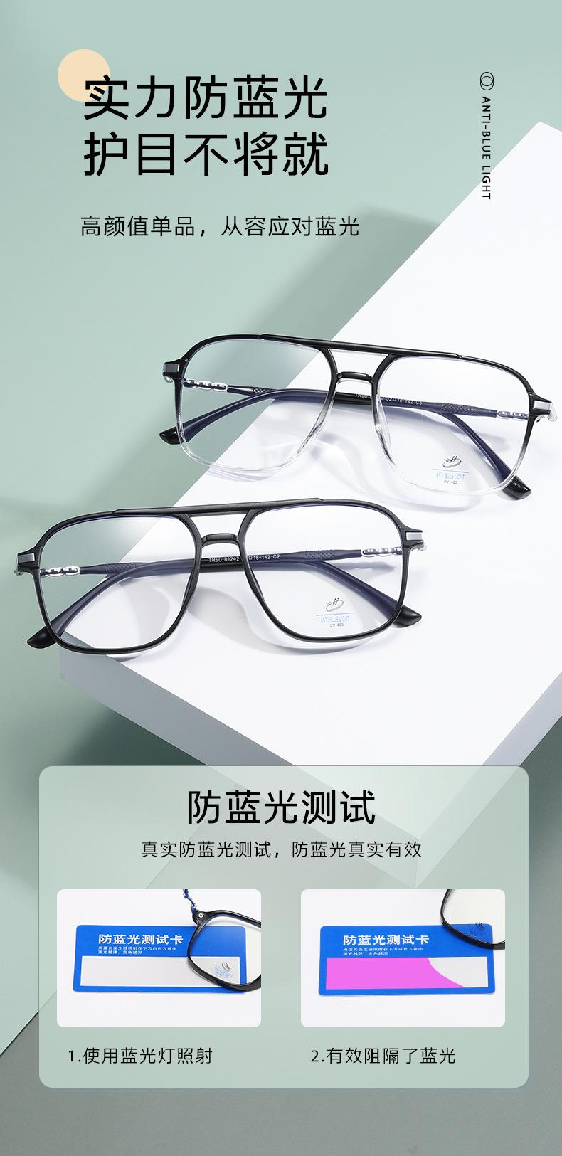 2023 nuevo armazón de pata de mortaja de doble varilla gafas de moda armazón grande TR90 luz anti-azul gafas lisas Femenino Fábrica mayoreo