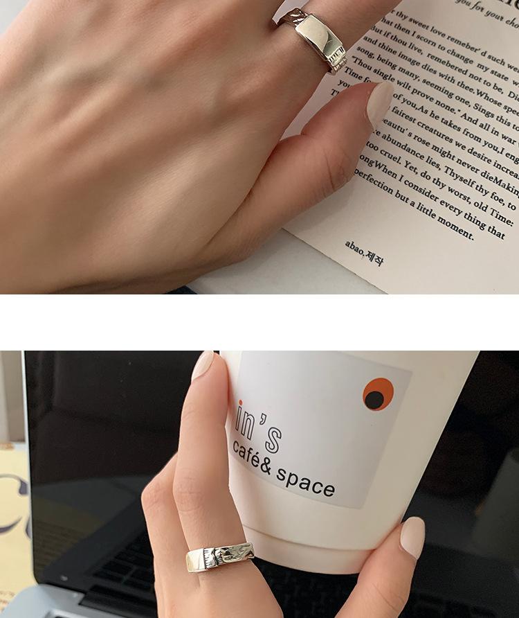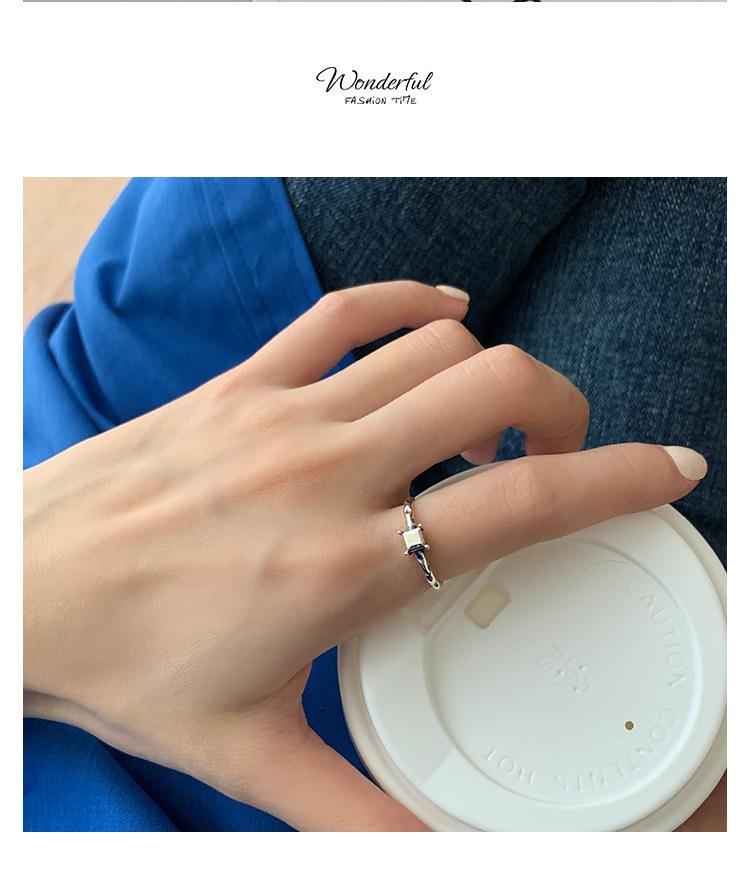 Anillo Cuadrado de Plata S925 Estilo Coreano Personalidad para Mujer Retro Moda Geométrico Irregular Dividido Anillo Hip-Hop Anillo de Dedo