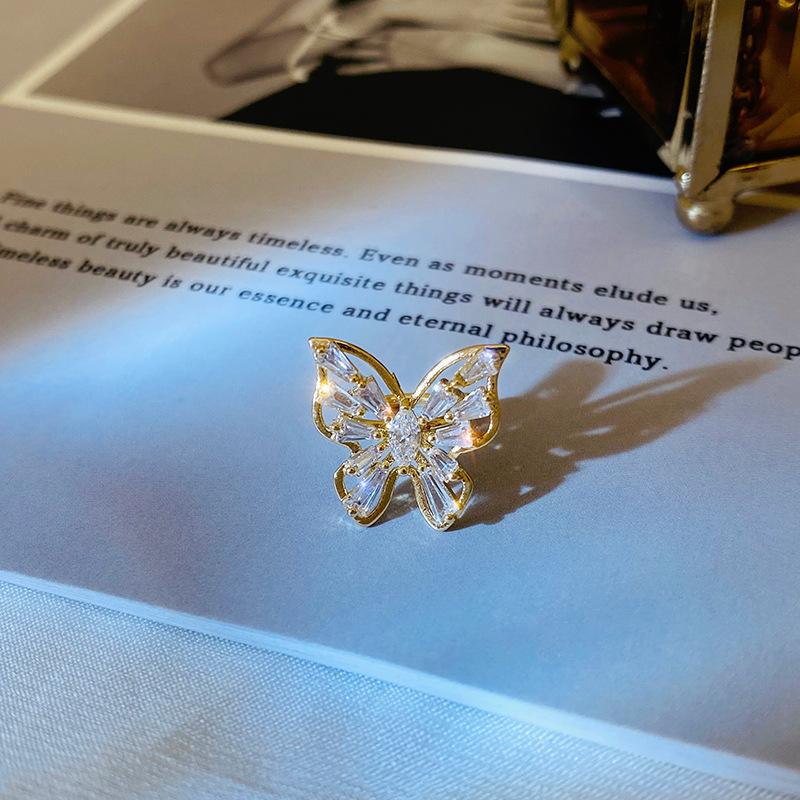 Pendientes de mariposa con circonita, sin orificios, para mujer, con clip para el hueso de la oreja, estilo elegante, 2022