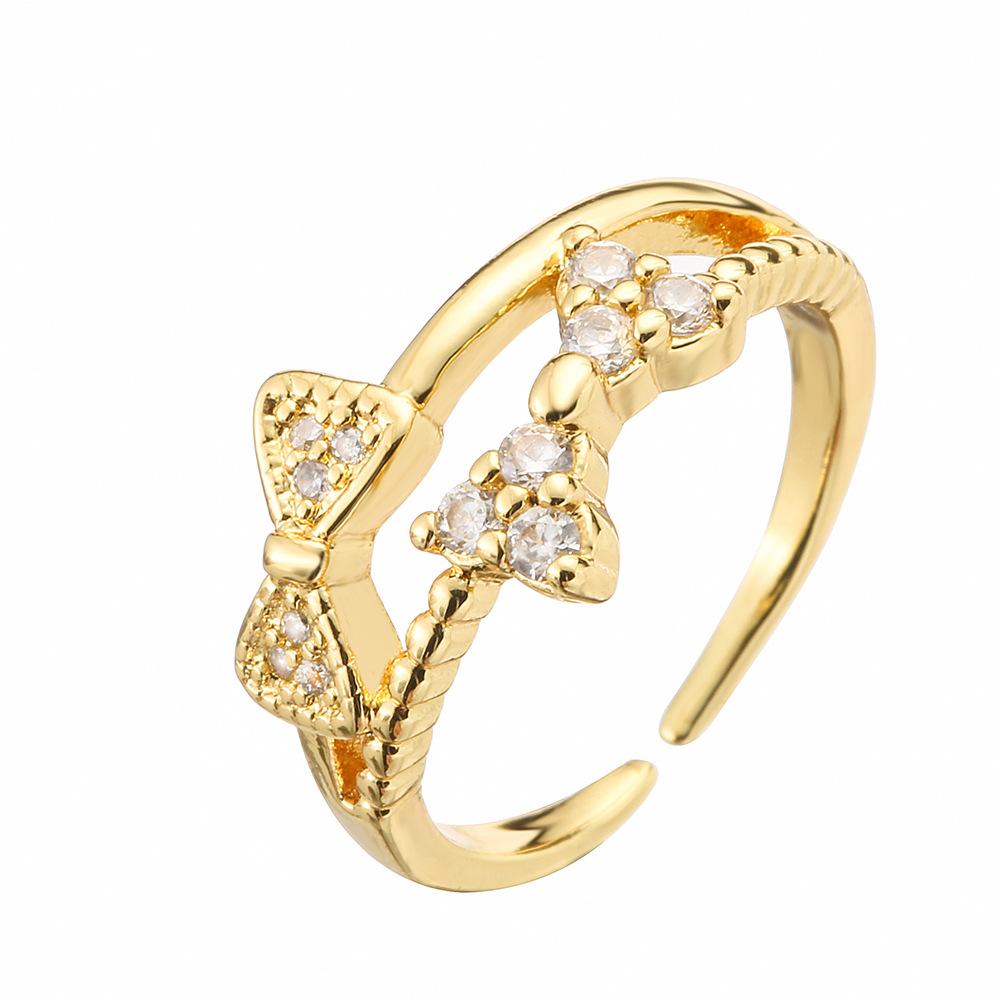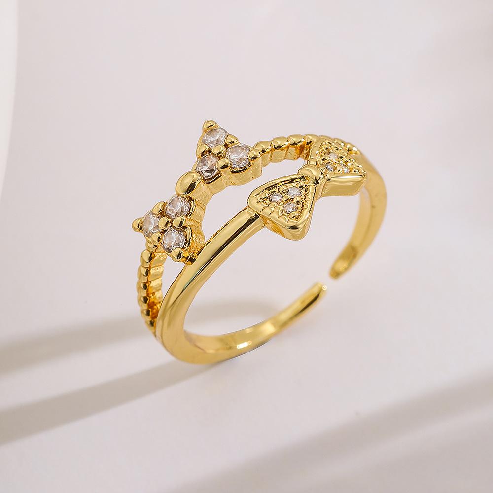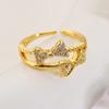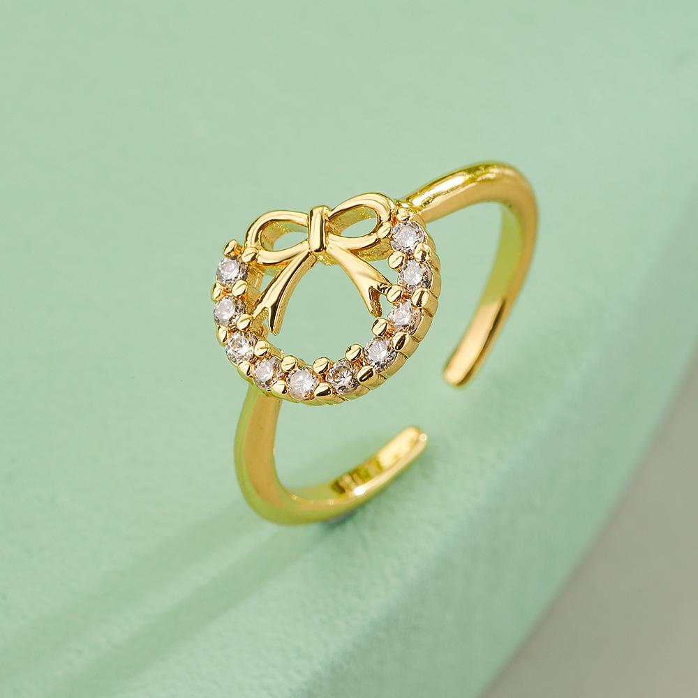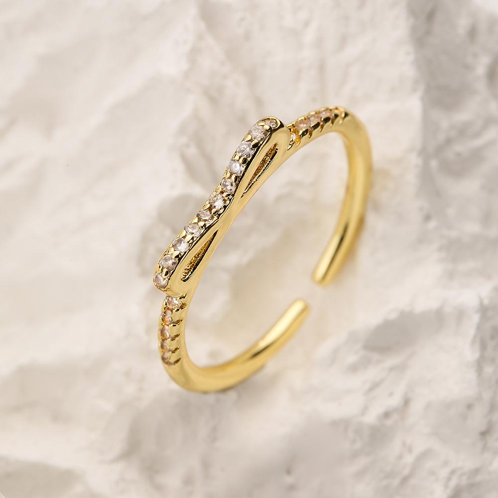 Aogu Anillo Abierto Geométrico de Lazo de Circonita Chapado en Oro Real de Cobre Simple y a la Moda Anillo Elegante Popular para Mujer