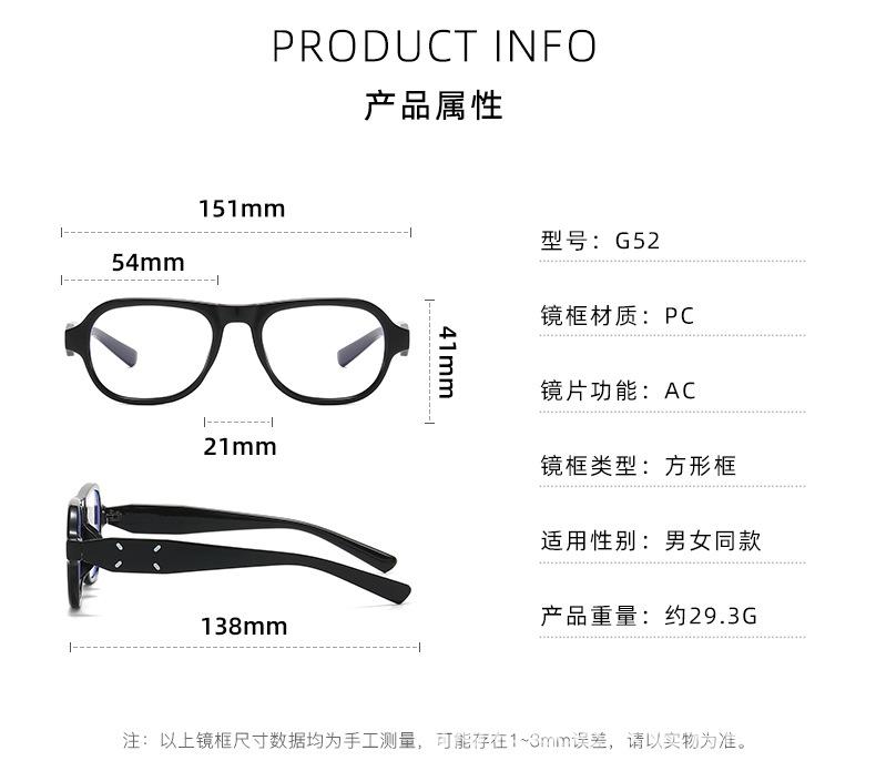 Gafas planas con montura negra retro sin maquillaje, montura cuadrada gm, cuadradas, redondas, adelgazantes, ajustables, para miopía, para mujer