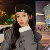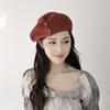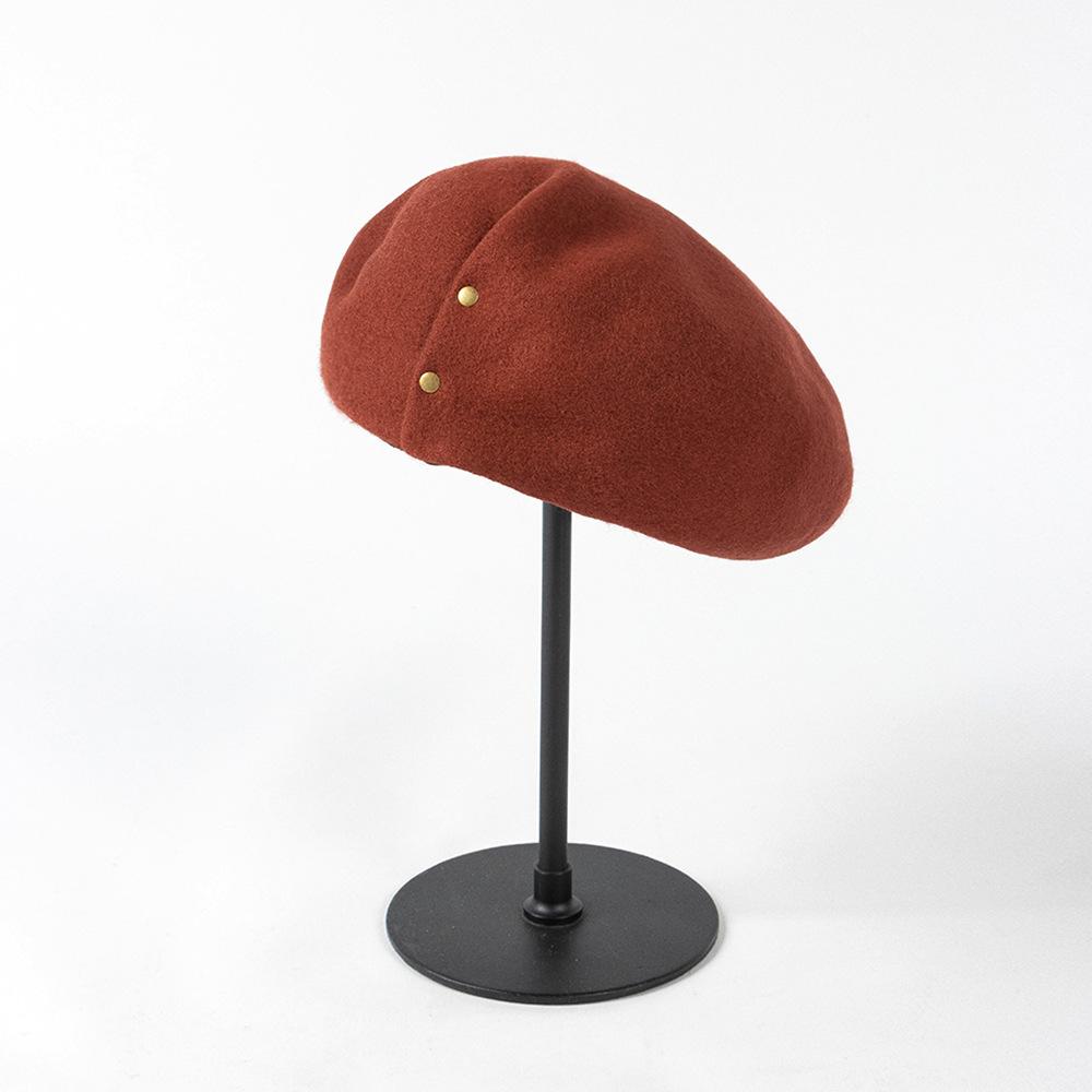 Otoño e invierno nueva moda casual cálida botón metálico tridimensional alero profundo boina de lana para mujer sombrero de pintor moda