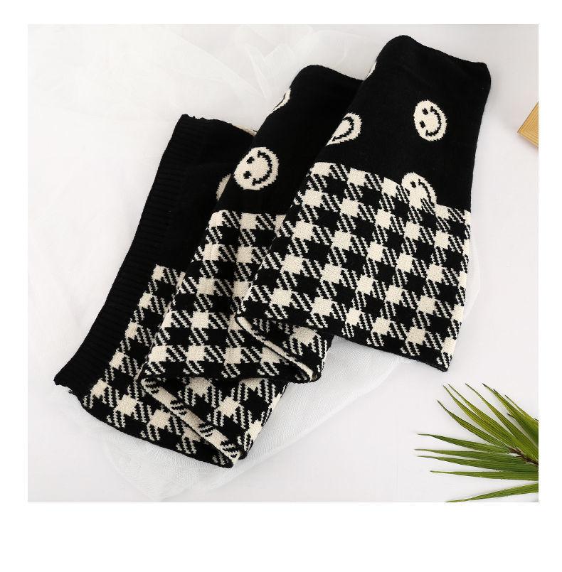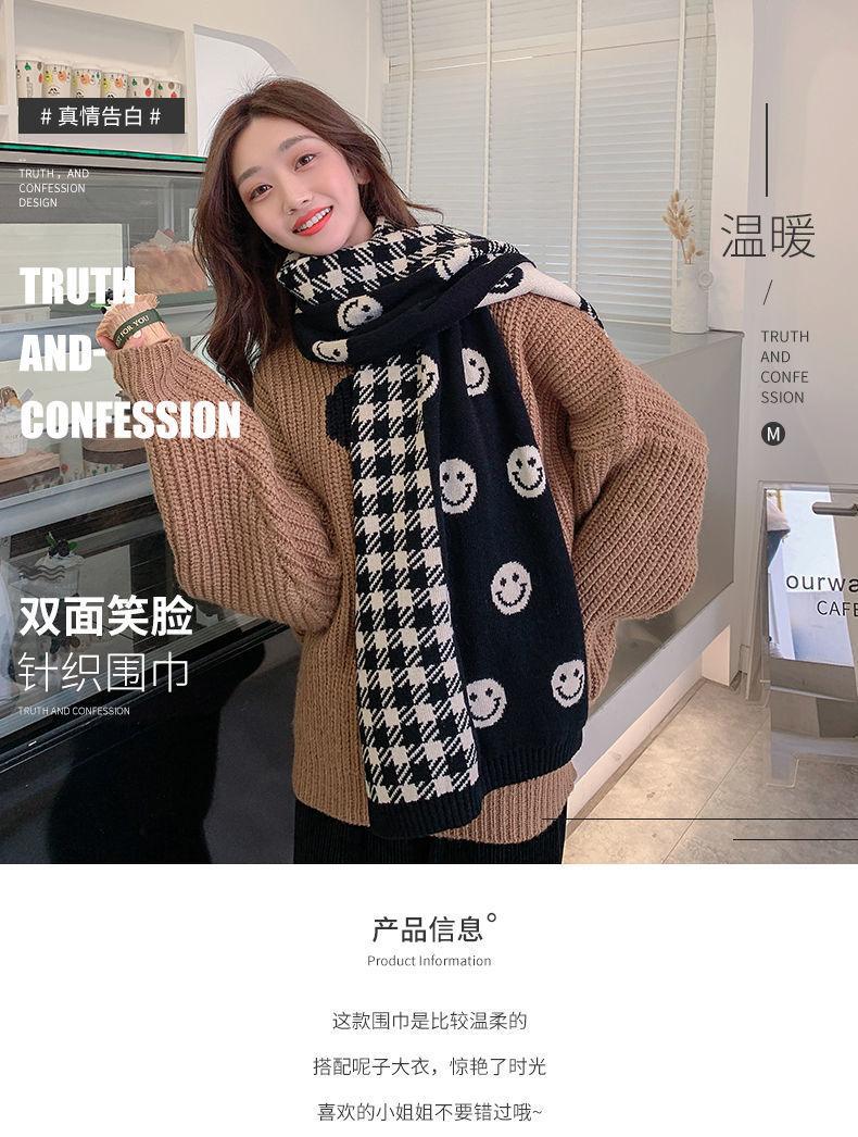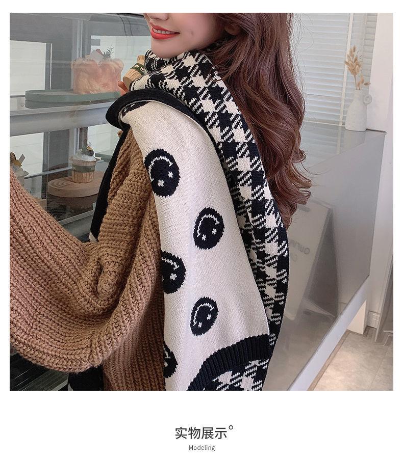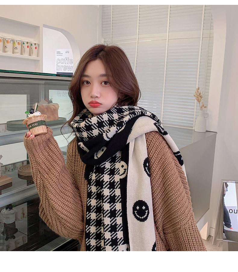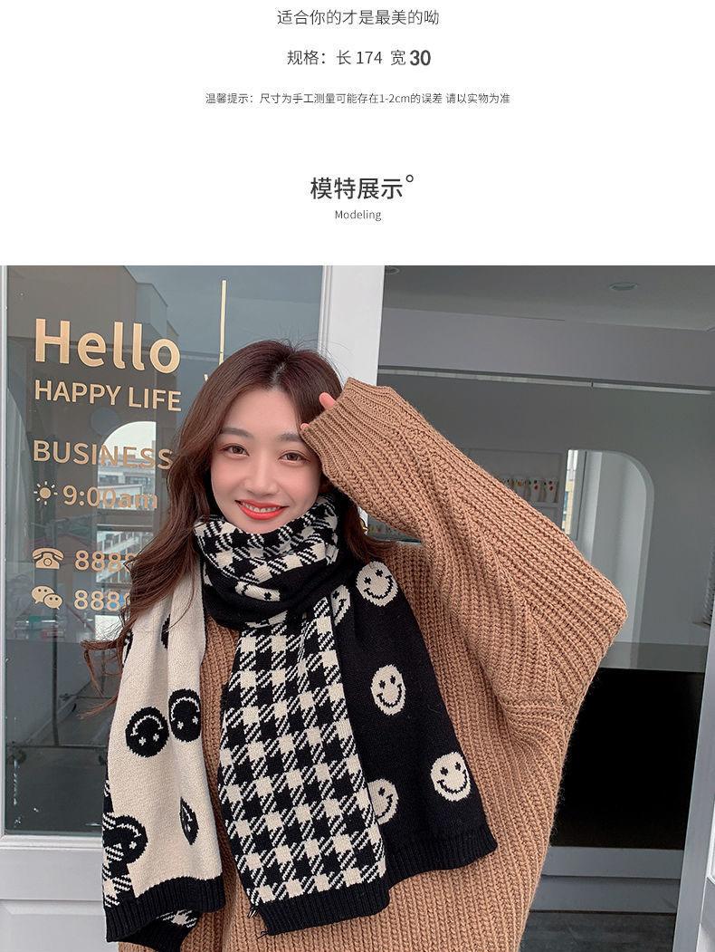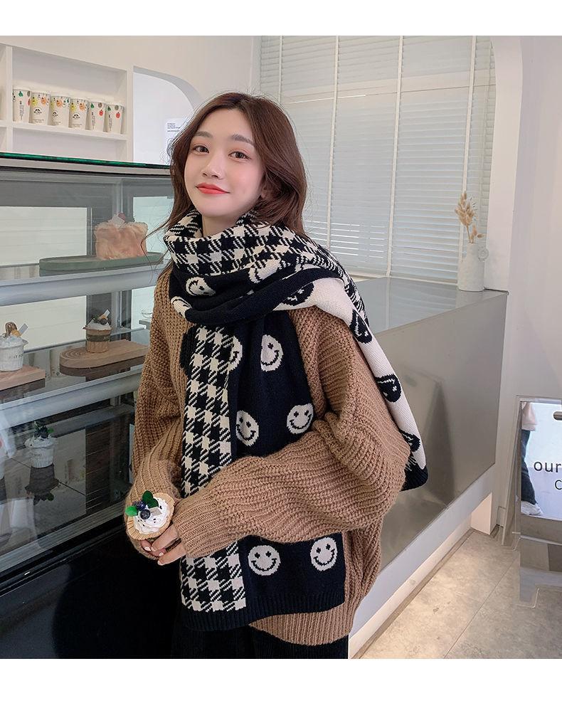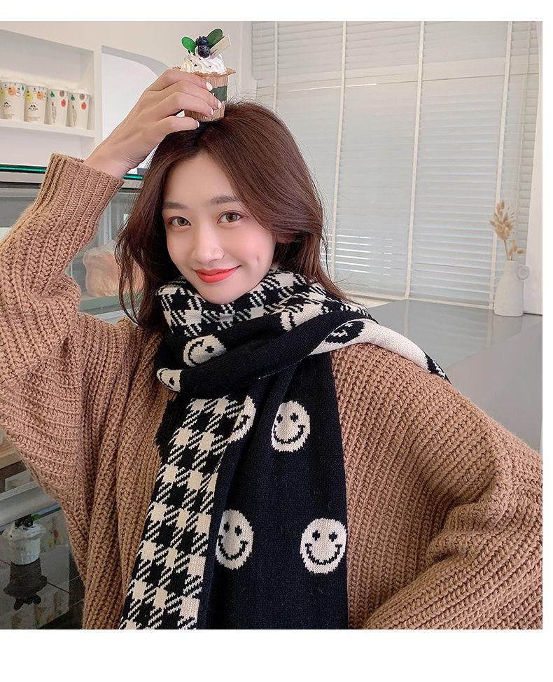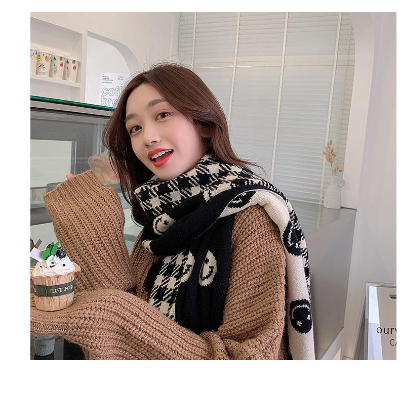 Bufanda Smiley 2024 Nueva Cuadros Invierno para Mujer Estilo Coreano Cachemira Tejida Gruesa Chal de Estudiante