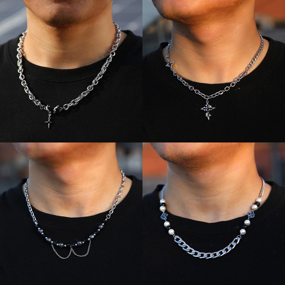 Collar para hombre MNZ0046 transfronterizo europeo y americano, cadena cubana de metal, colgante de cruz, cadena para clavícula, estilo hip-hop, collar para hombre