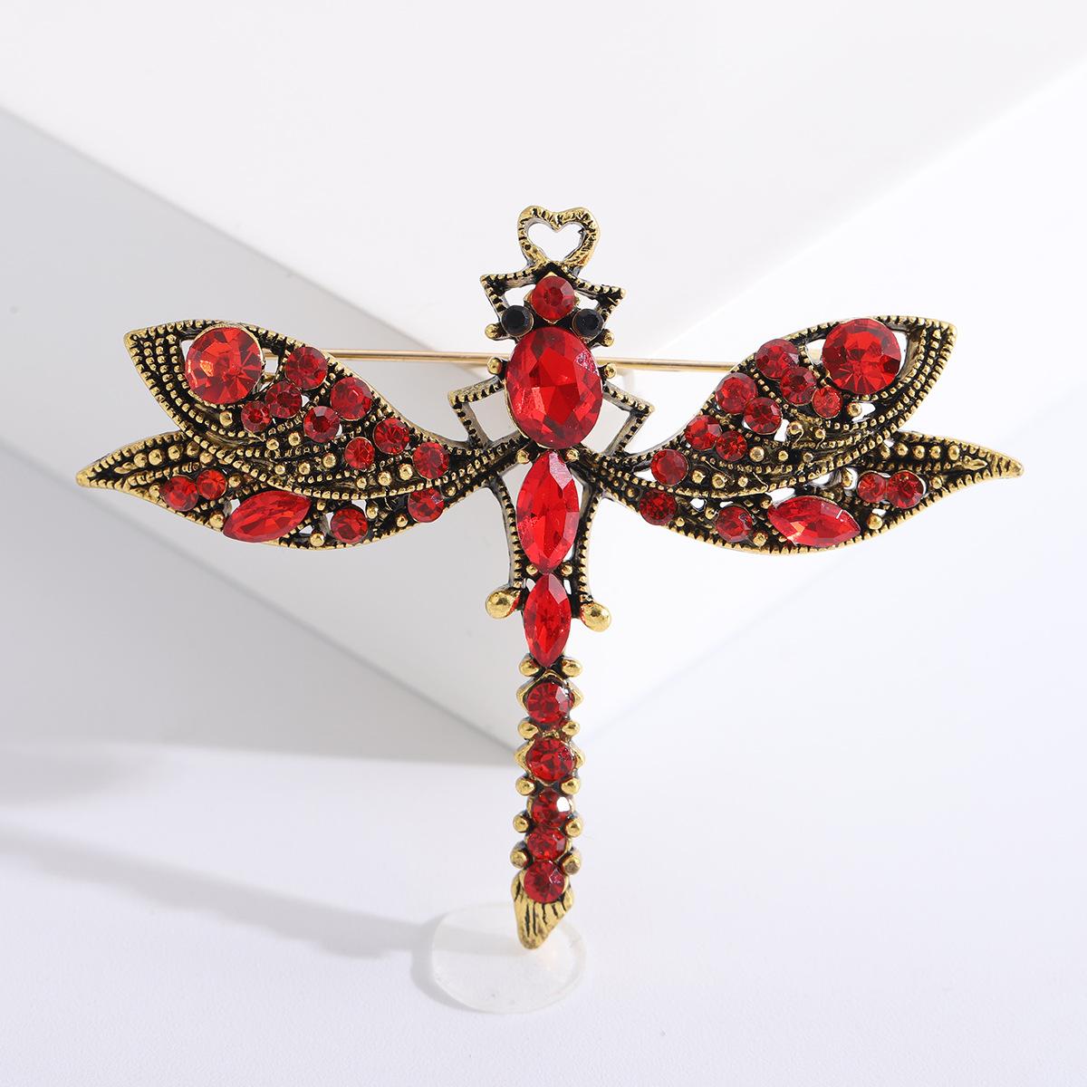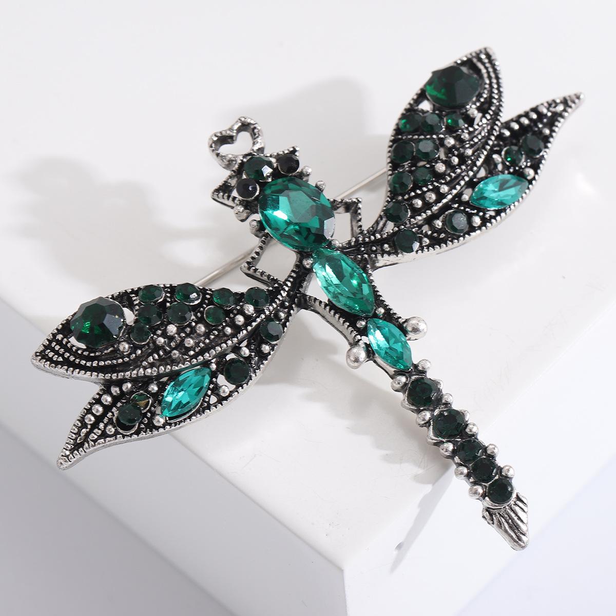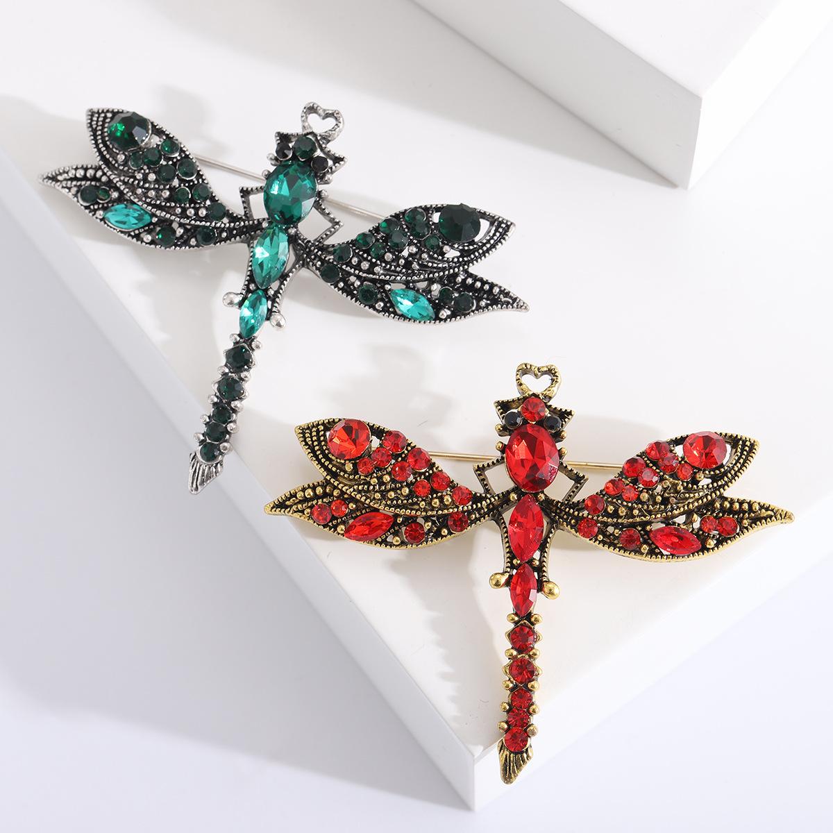 Broche de libélula con diamantes de imitación retro creativo de moda europea y americana, broche de aleación con forma de insecto, accesorios de ropa personalizados, venta al por mayor