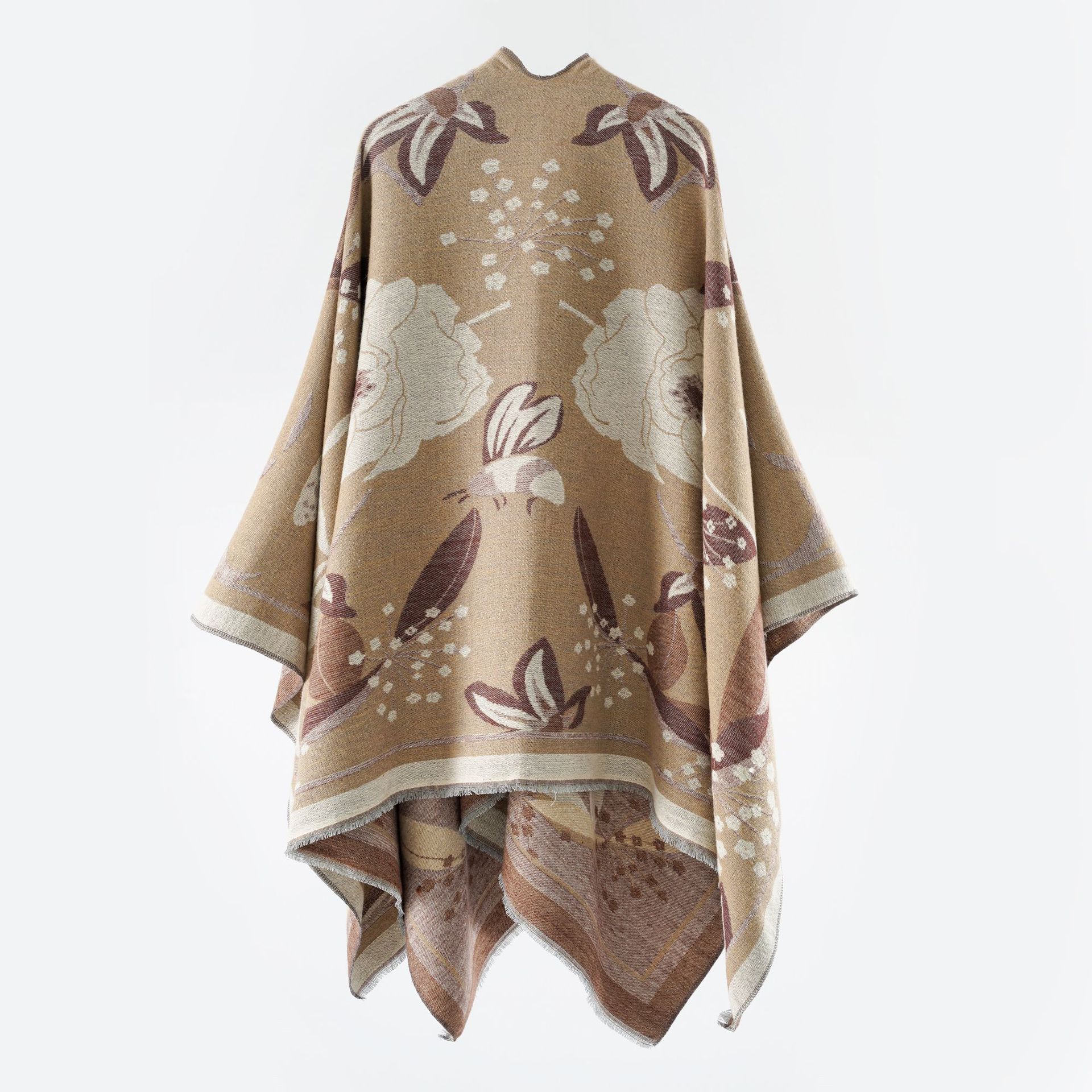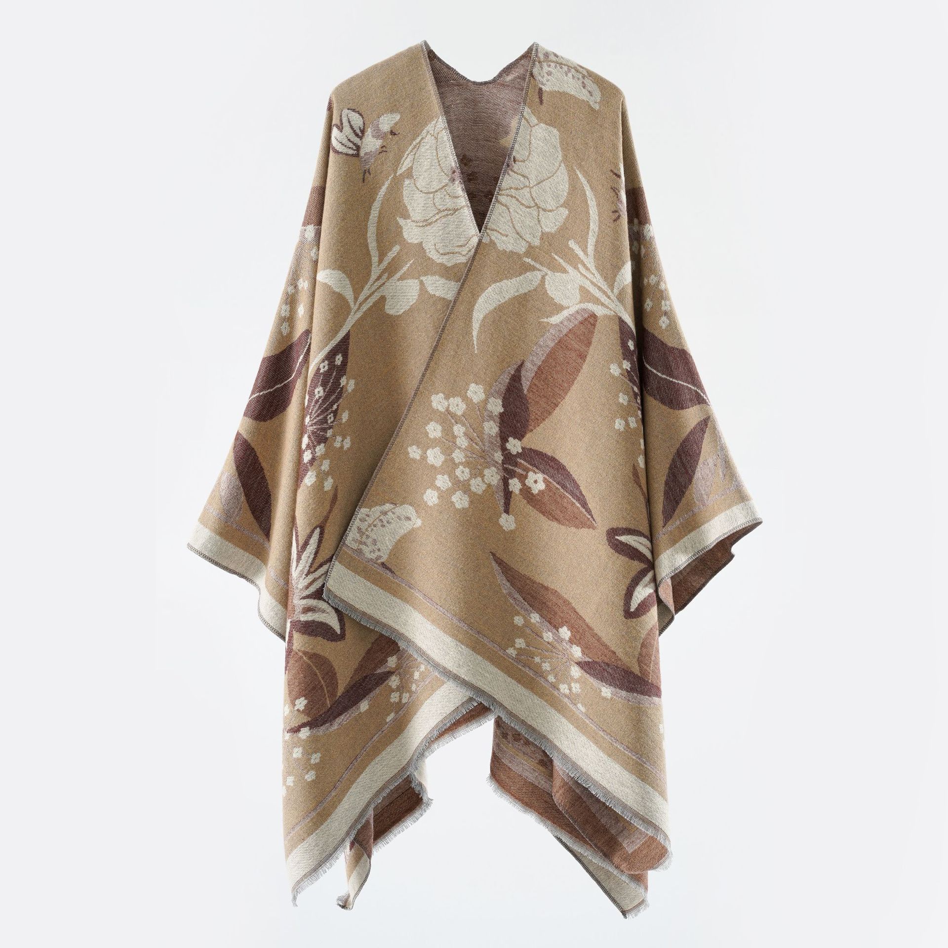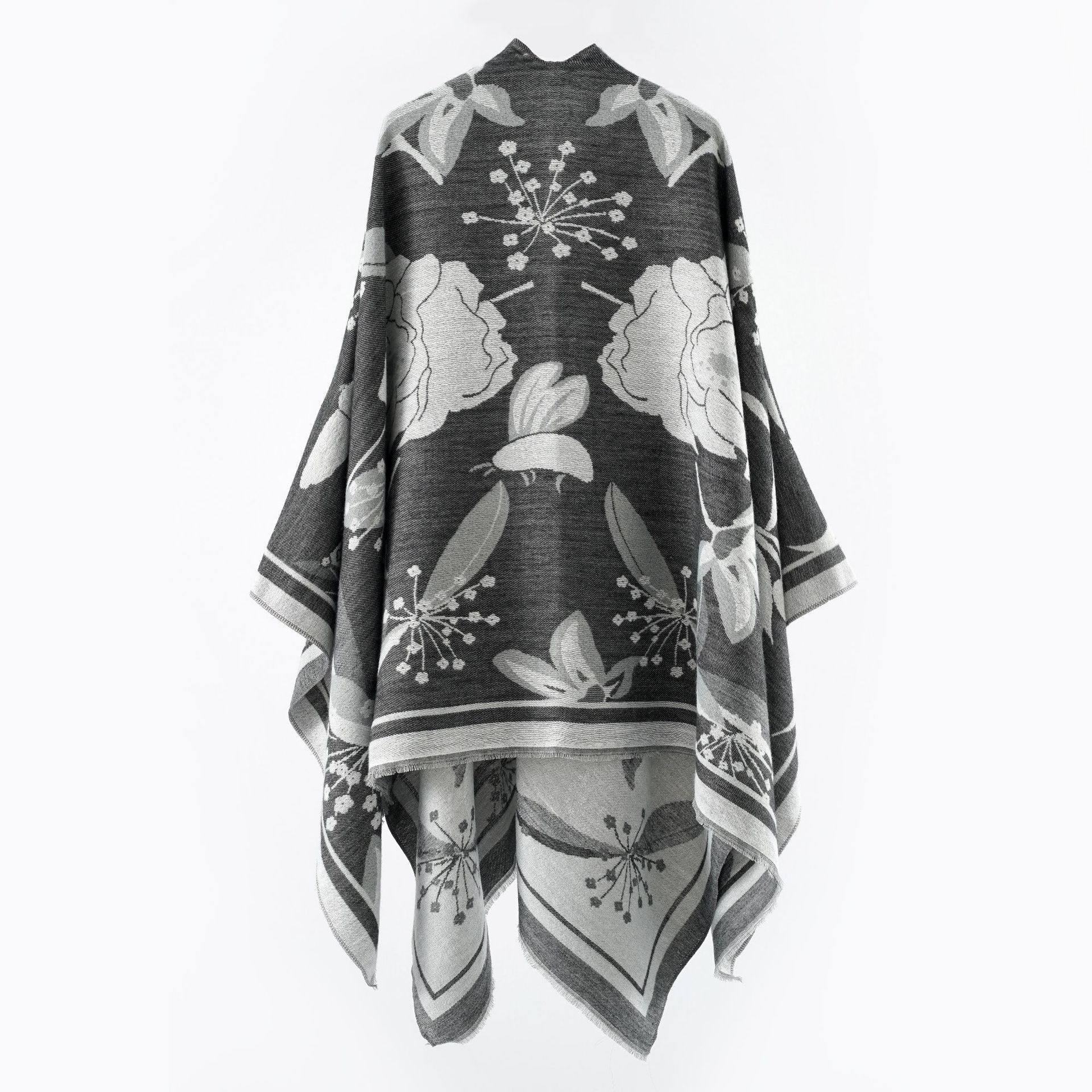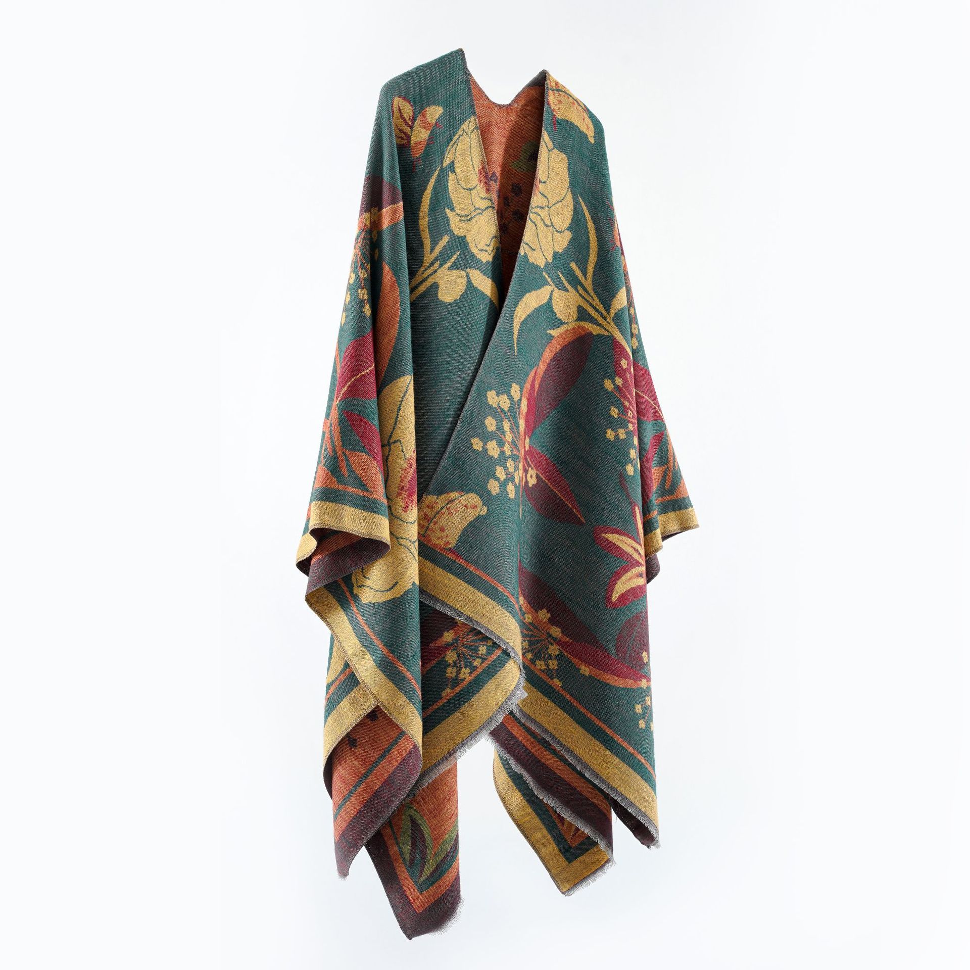 • Nuevo chal dividido cálido de moda de estilo étnico europeo y americano de otoño e invierno, capa de cachemira de imitación, bufanda floral, chal femenino