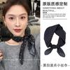 | Bufanda de seda coreana para primavera y otoño y verano, estilo femenino, combina con todo, literaria, pequeña y fresca, cuadrada, con decoración de tul de dibujos animados. |