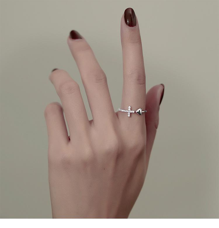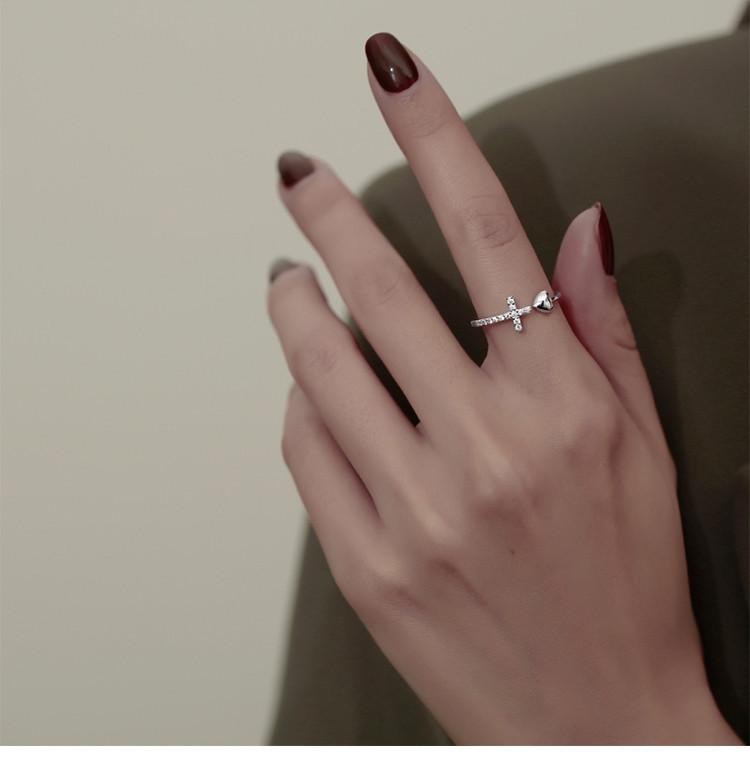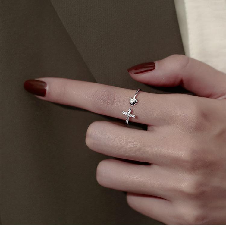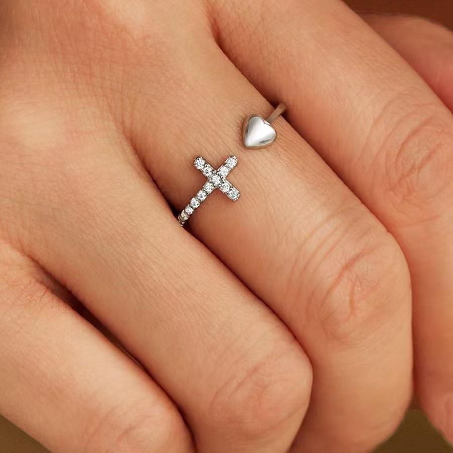 Anillo cruzado de amor europeo y americano de venta caliente transfronteriza para mujer con circonita incrustada en forma de corazón, diseño abierto versátil al por mayor