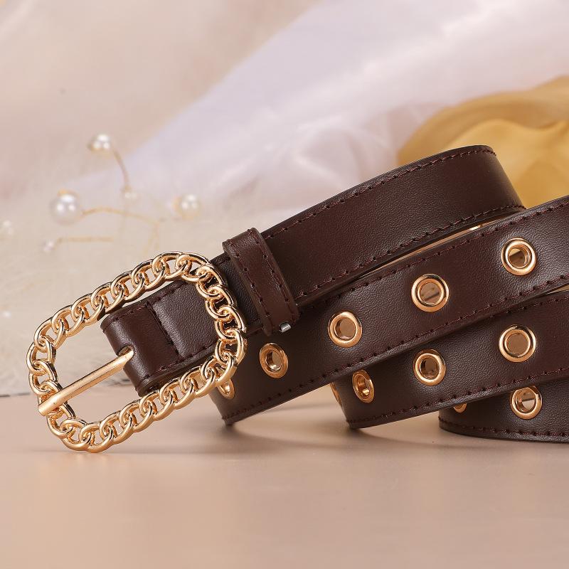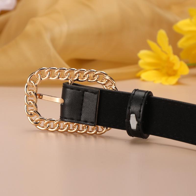 Cinturón con hebilla cuadrada dorada retro para mujer, nuevo estilo, combina con todo, para jeans y vestido, para todas las temporadas