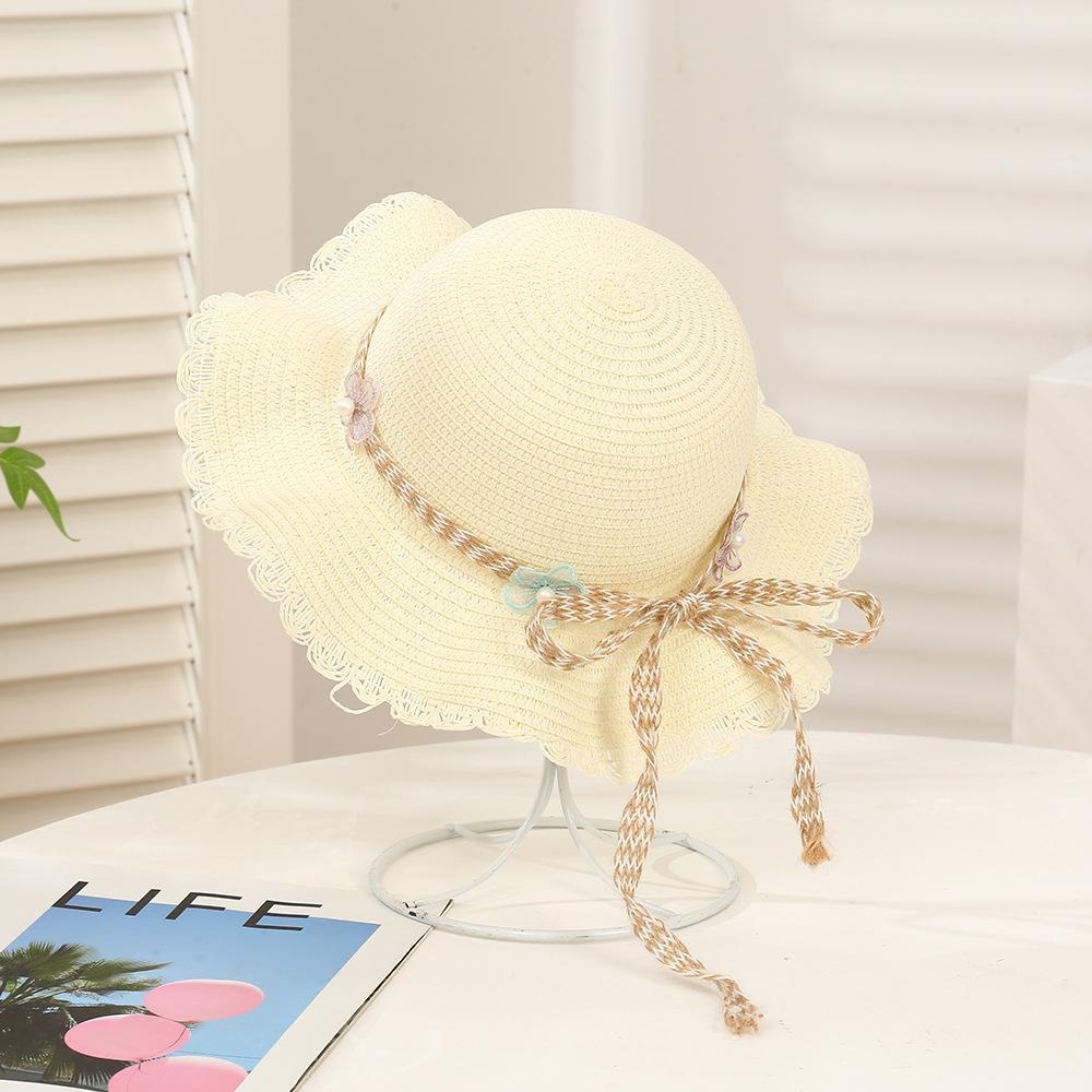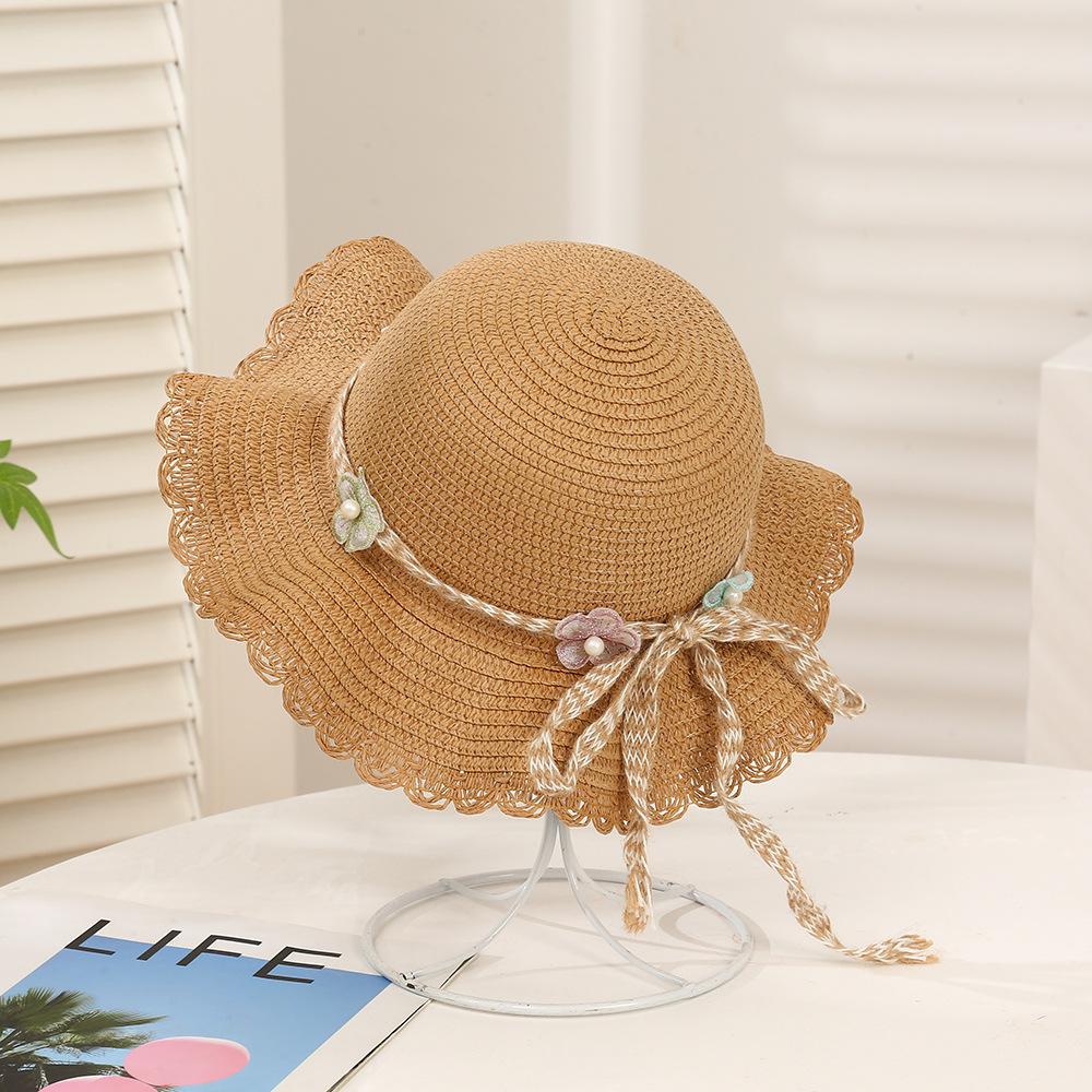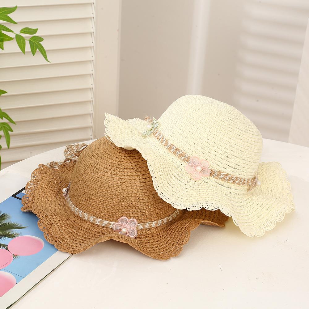 Verano Nuevo Flor Niños Sombrero de Paja Vacaciones Junto al Mar Sombrero para el Sol de Niña Sombrero de Playa Protección Solar Sombrero para el Sol