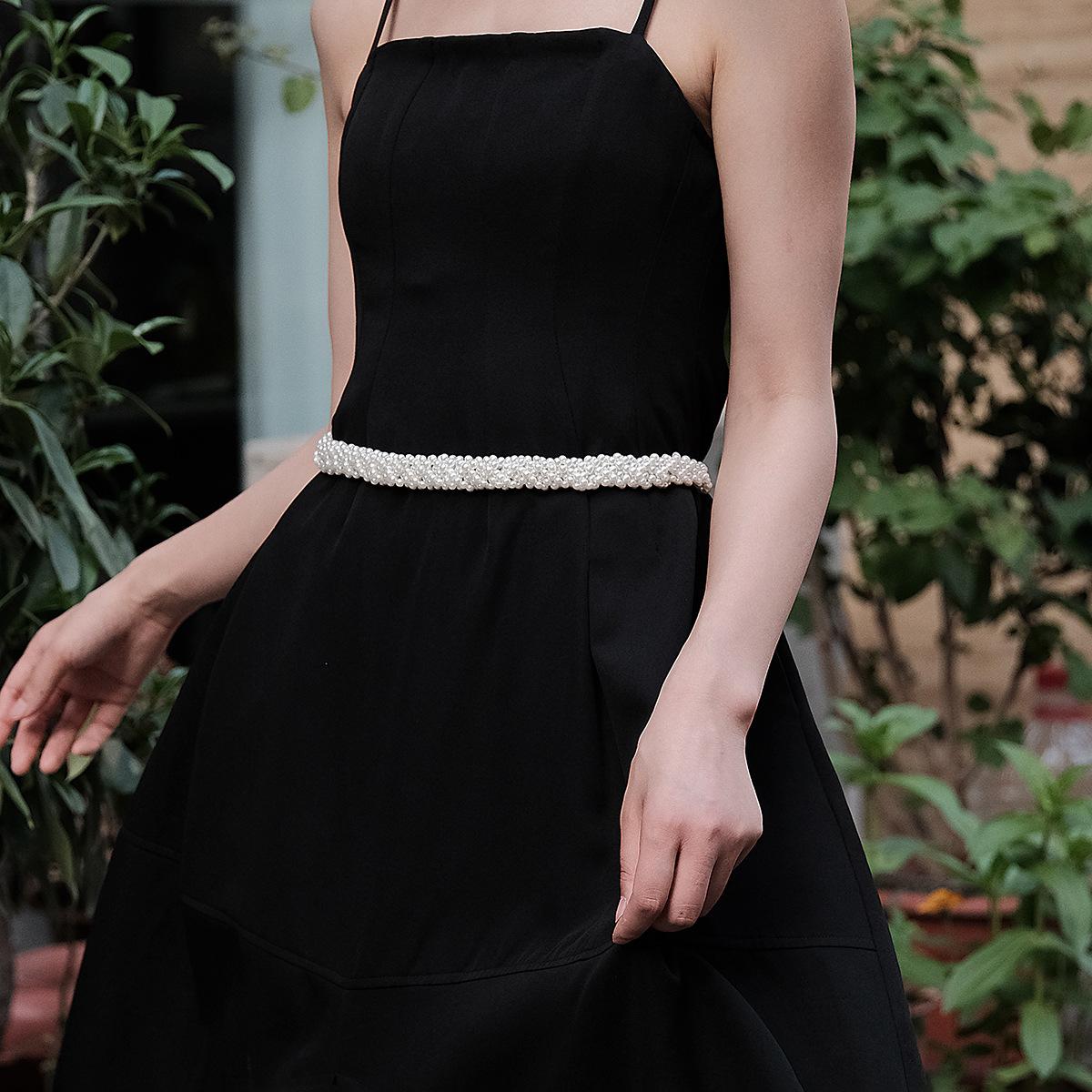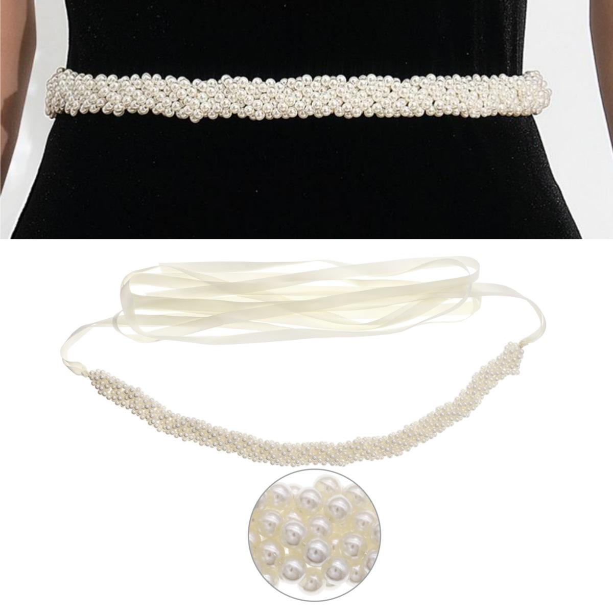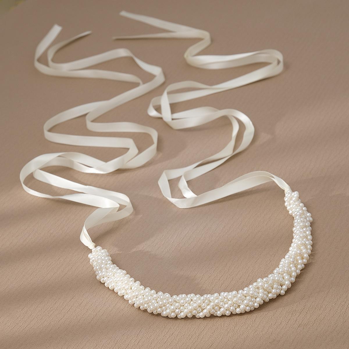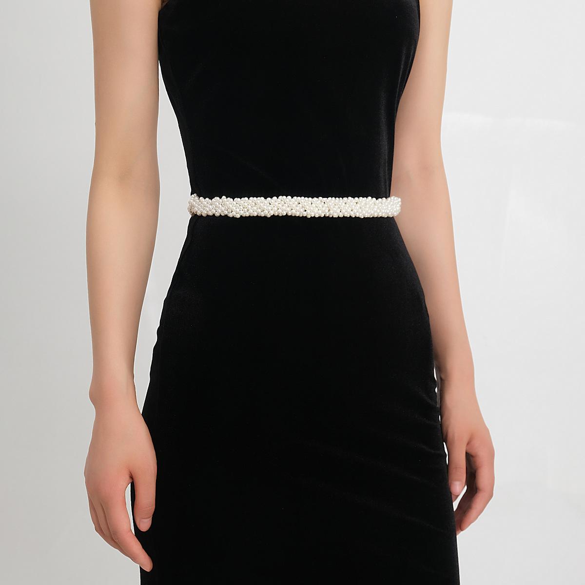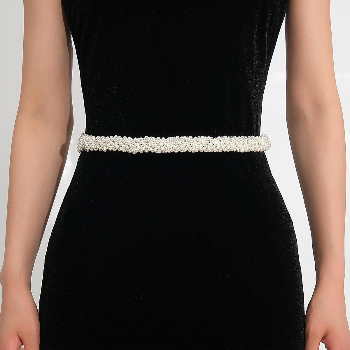 Cinturón de novia europeo y americano nuevo, accesorio para vestido de novia, hecho a mano, con cuentas de perlas, cinta blanca para mujer
