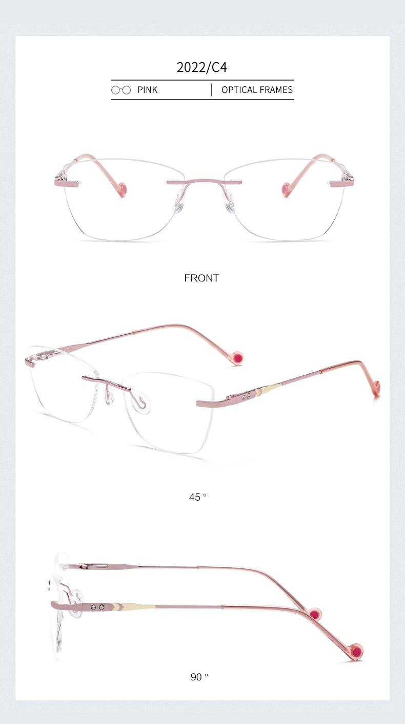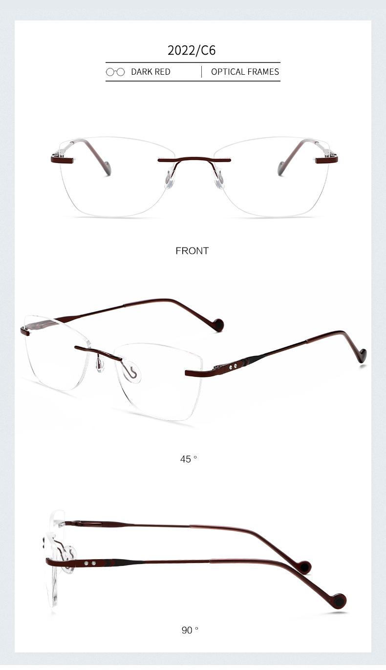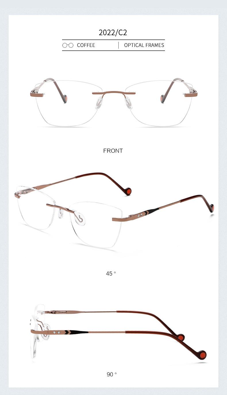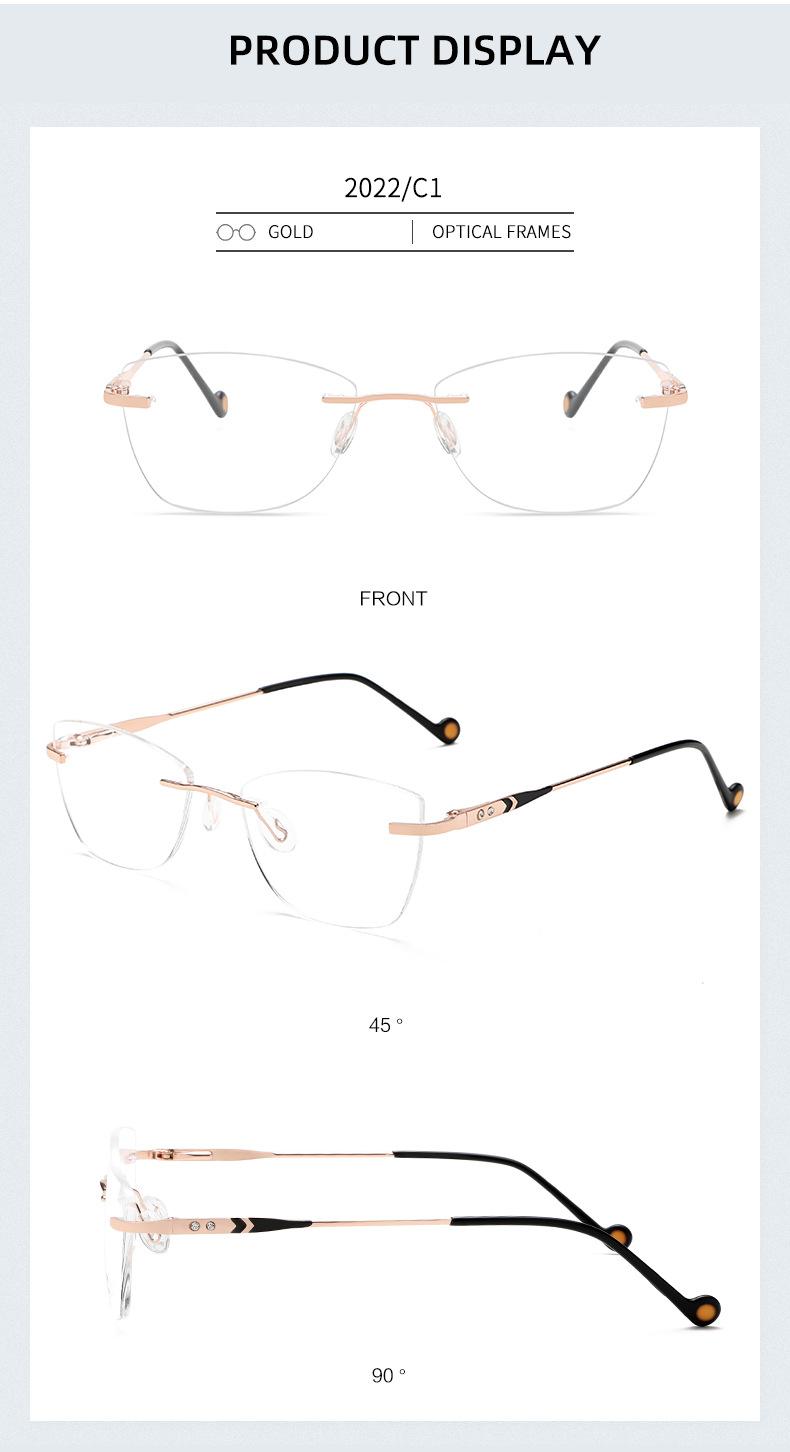2022 nuevo armazón de gafas sin montura metal armazón para miopía gafas ojo de gato para dama gafas planas pata de resorte mayoreo