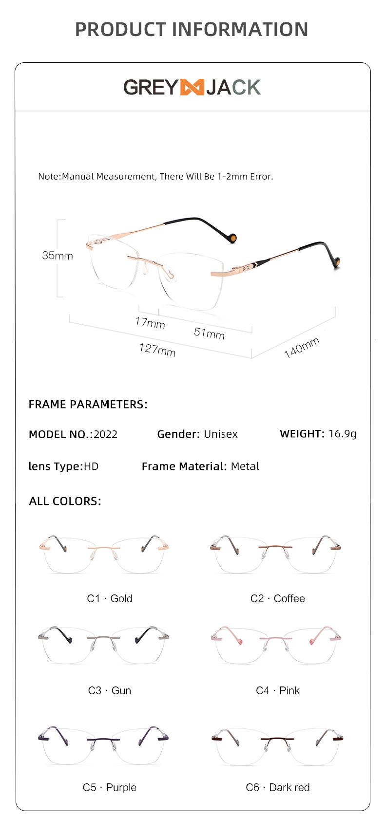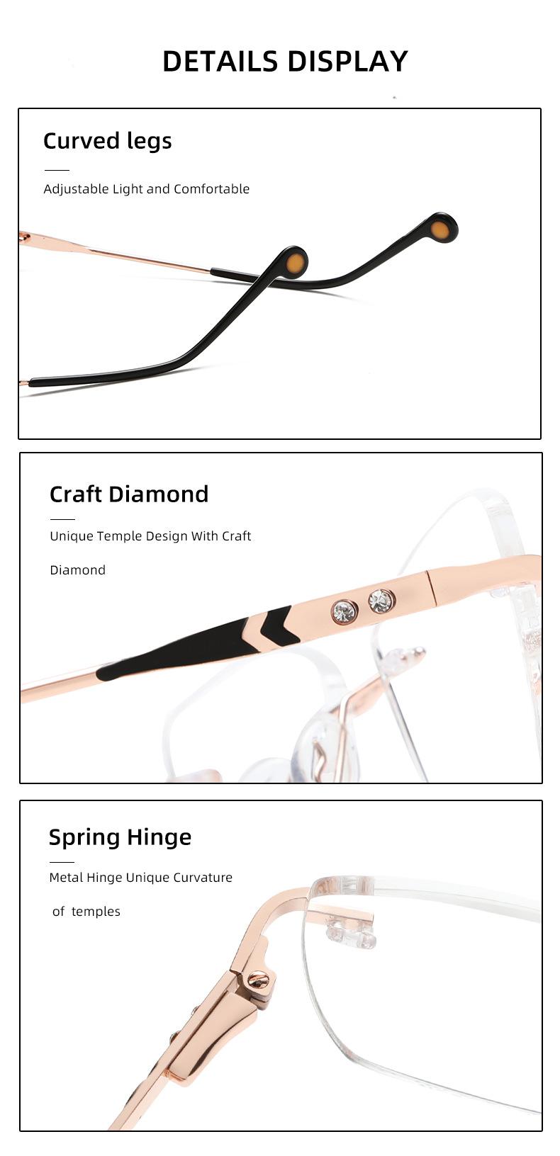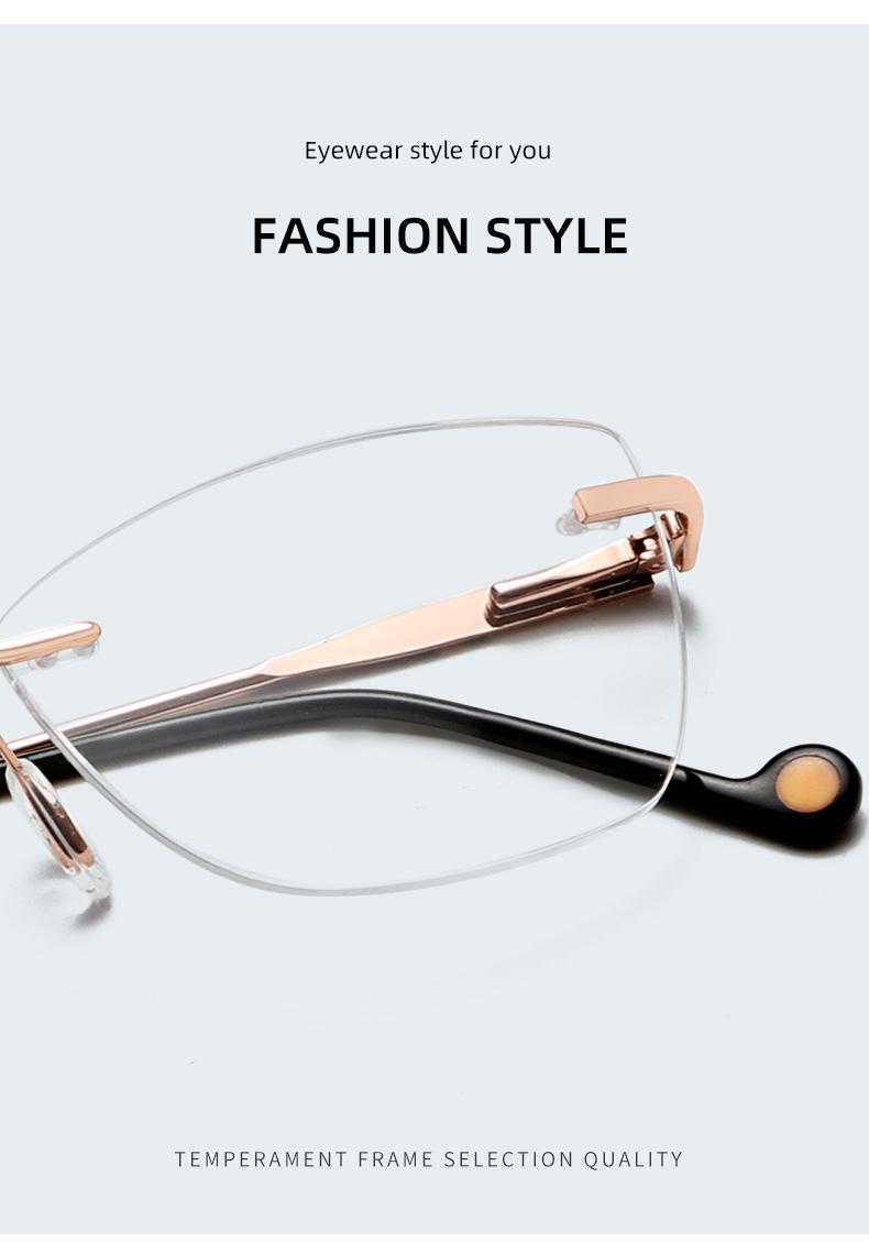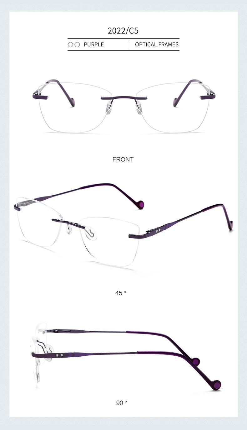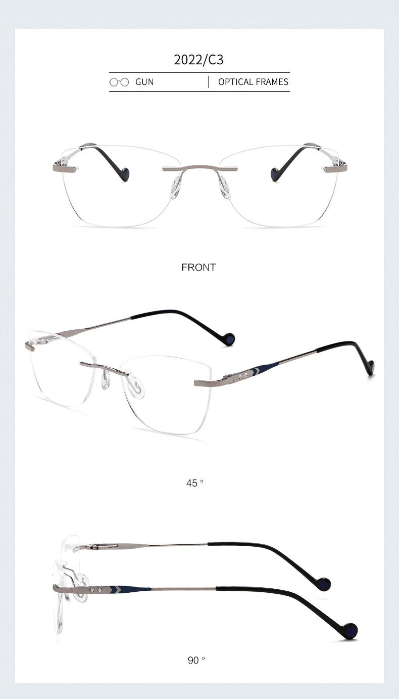 2022 nuevo armazón de gafas sin montura metal armazón para miopía gafas ojo de gato para dama gafas planas pata de resorte mayoreo