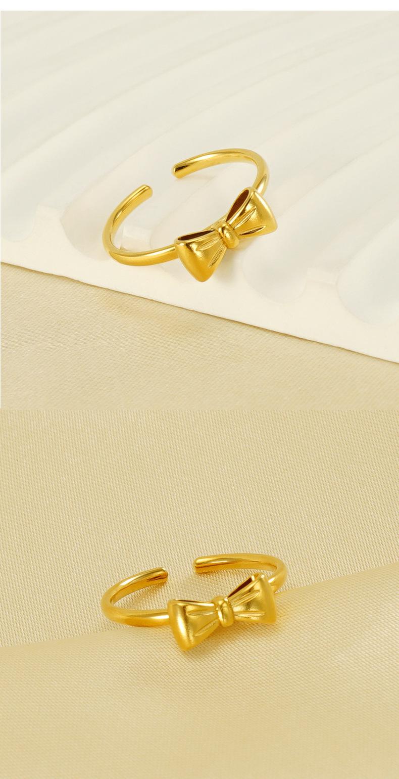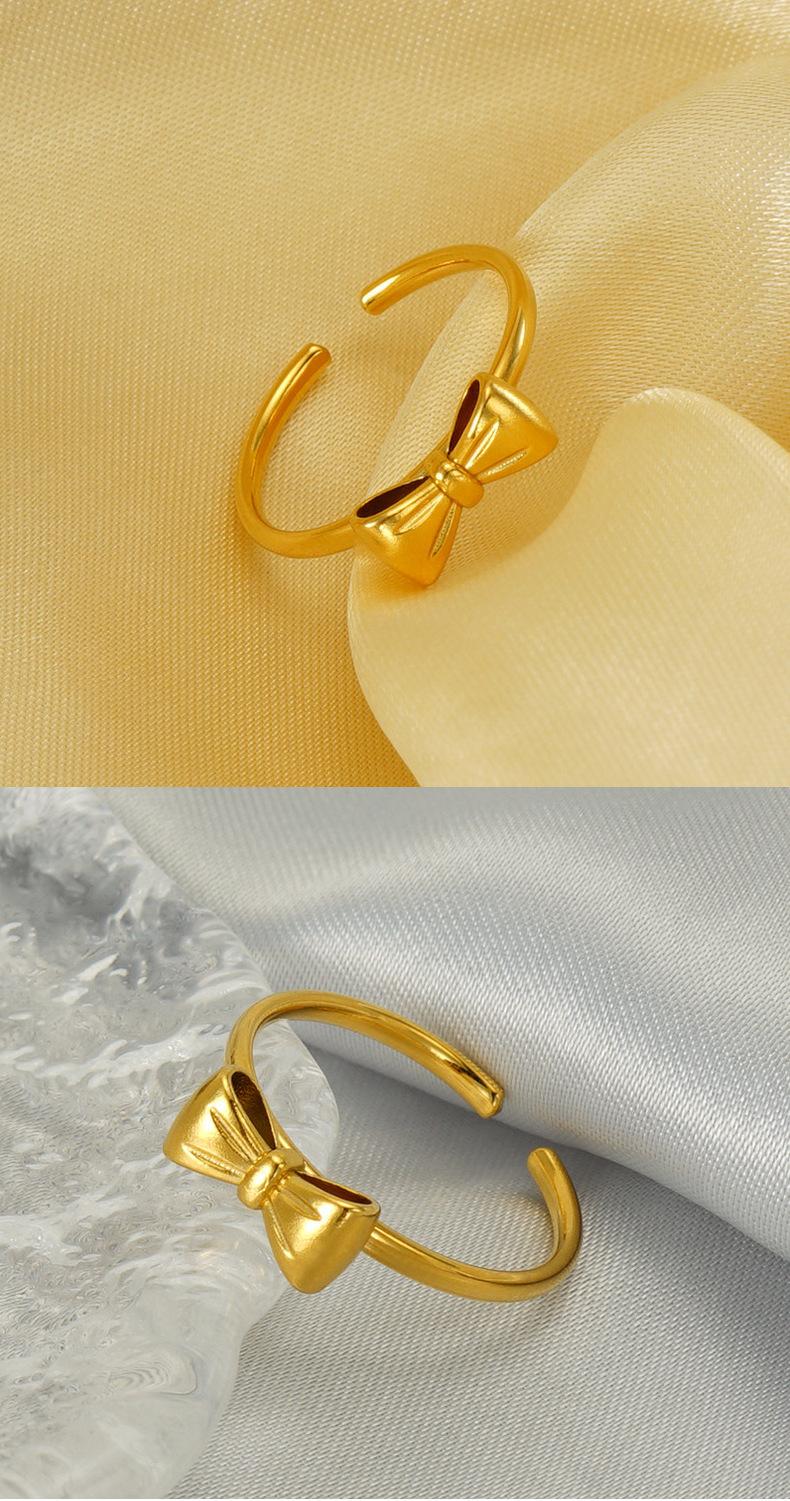 Anillo Transfronterizo Europeo y Americano 2024 Nuevo Acero Inoxidable Chapado en Oro de 18K Anillo de Apertura Ajustable Diseño de Lazo para Mujer