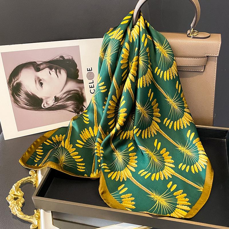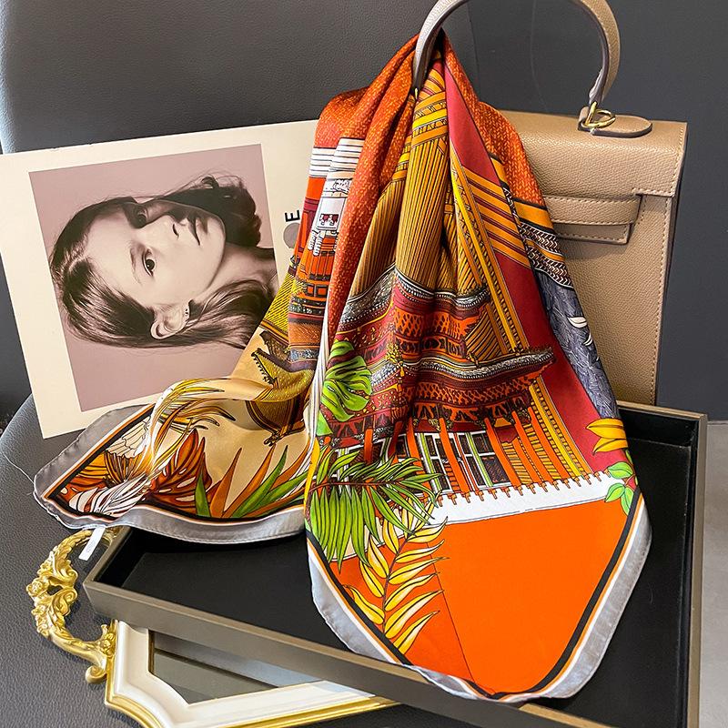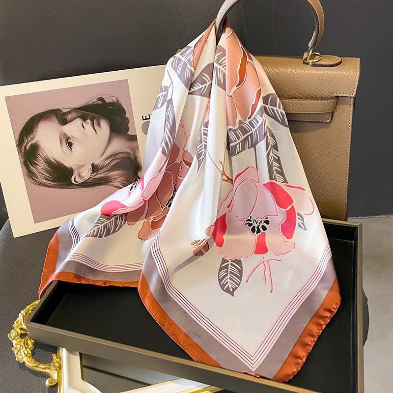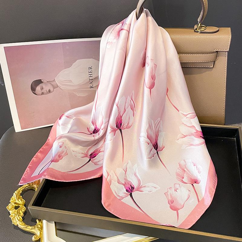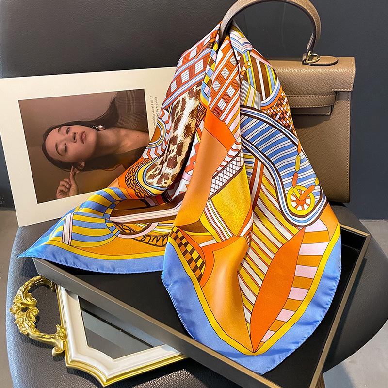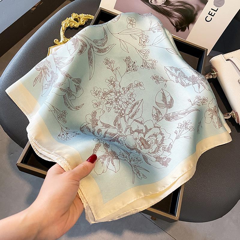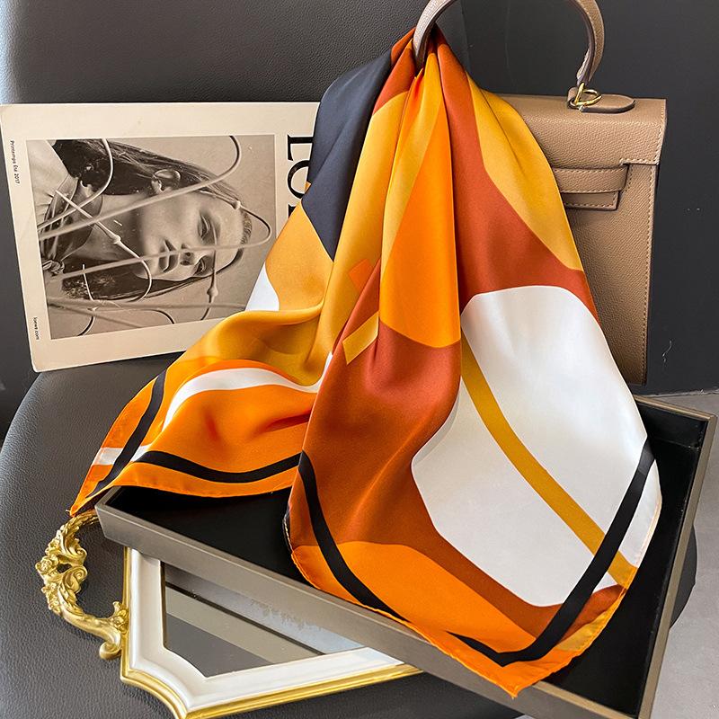 Bufanda cuadrada de seda sintética de alta gama para mujer, estilo veraniego, elegante, combinable con todo, con protección solar, chal grande, para playa
