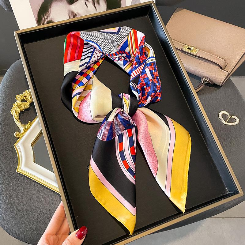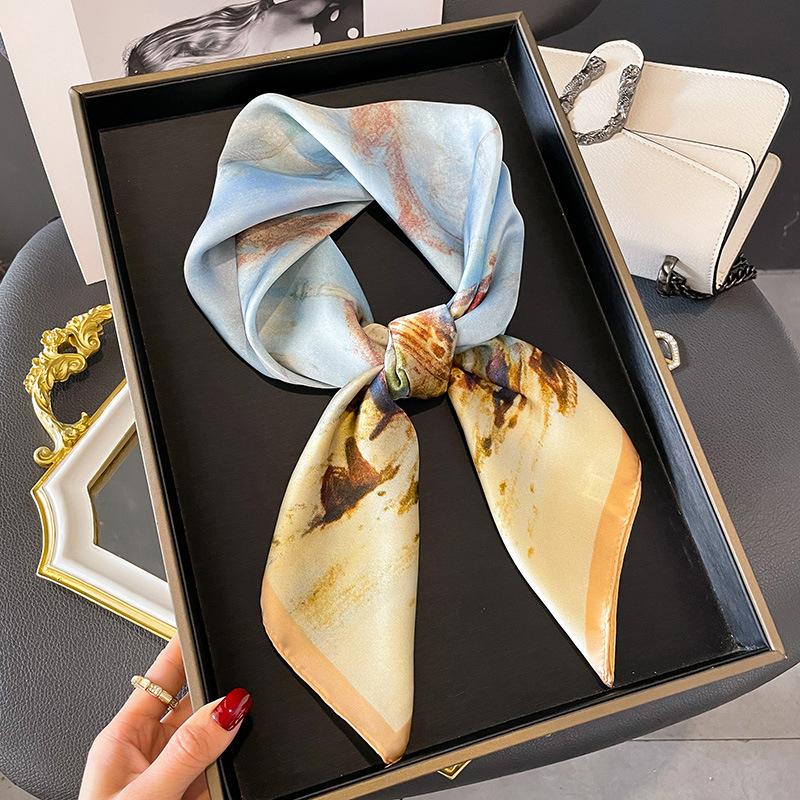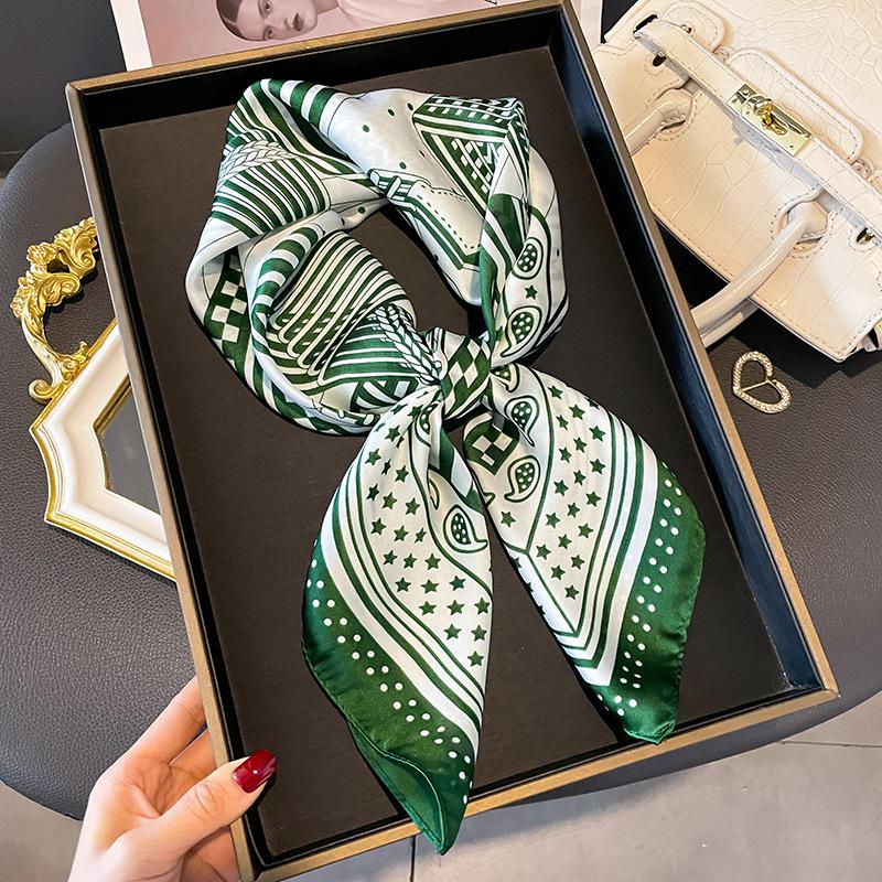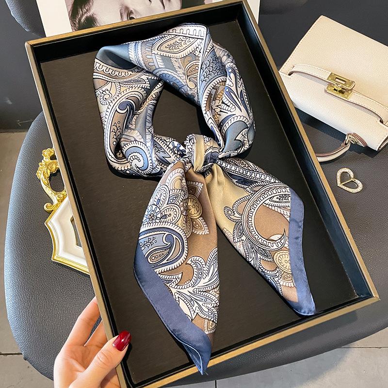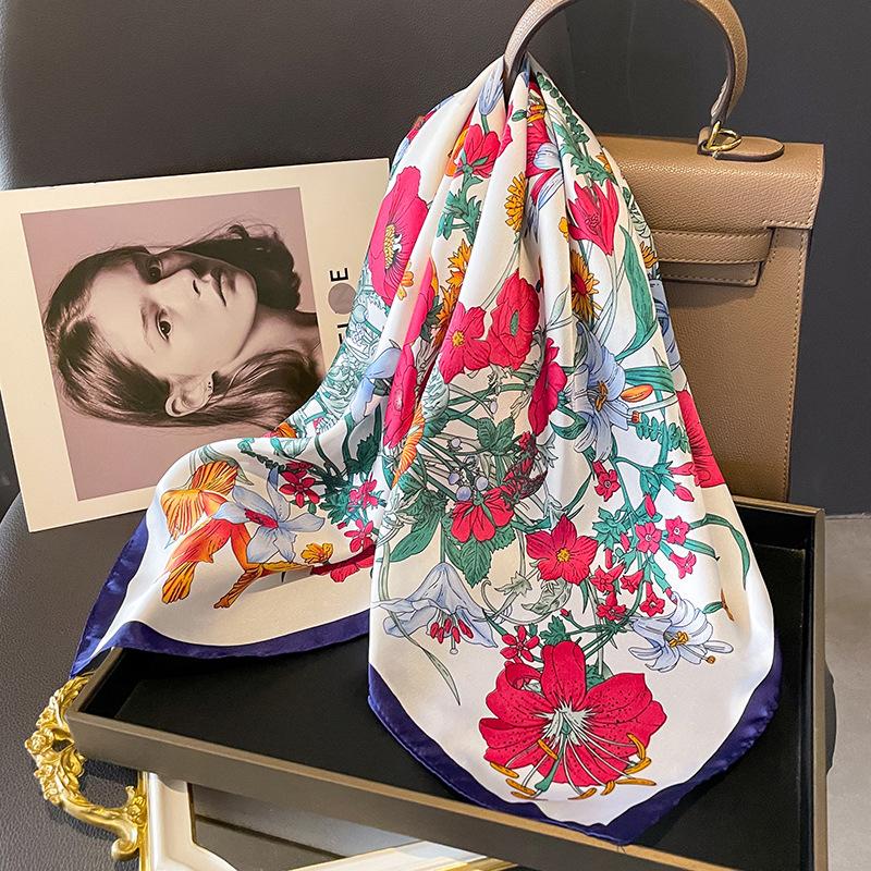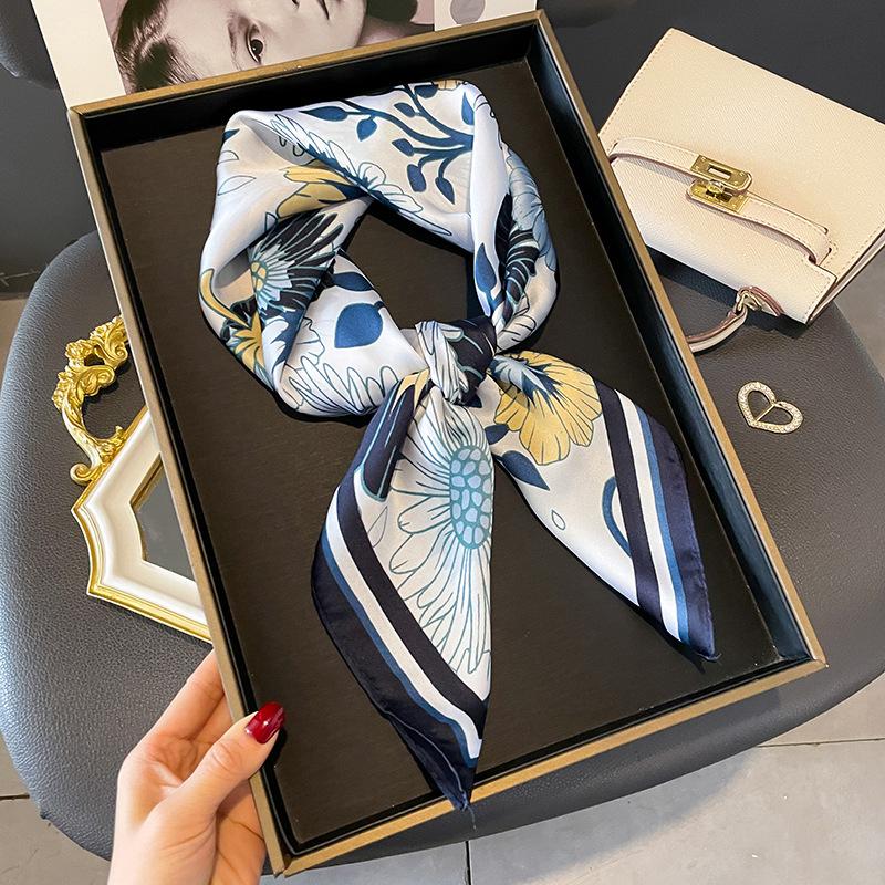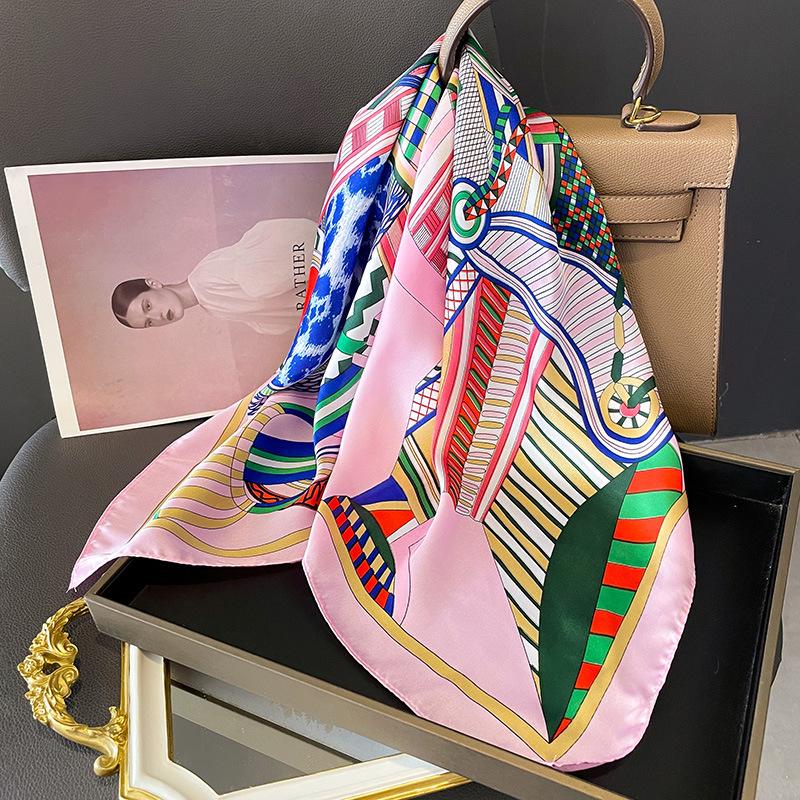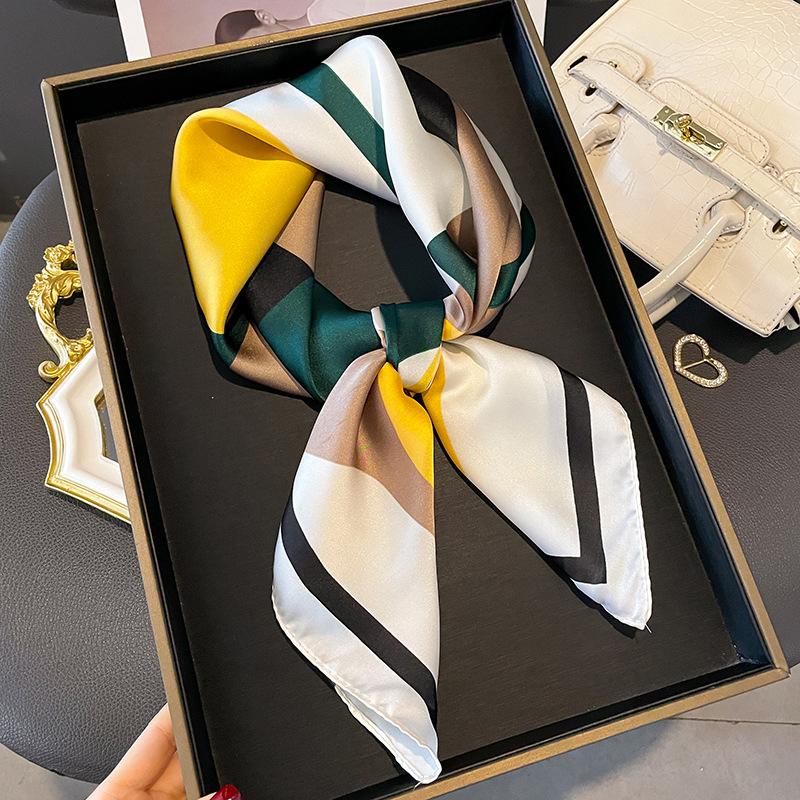Bufanda cuadrada de seda sintética de alta gama para mujer, estilo veraniego, elegante, combinable con todo, con protección solar, chal grande, para playa