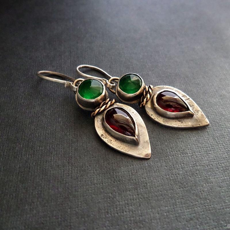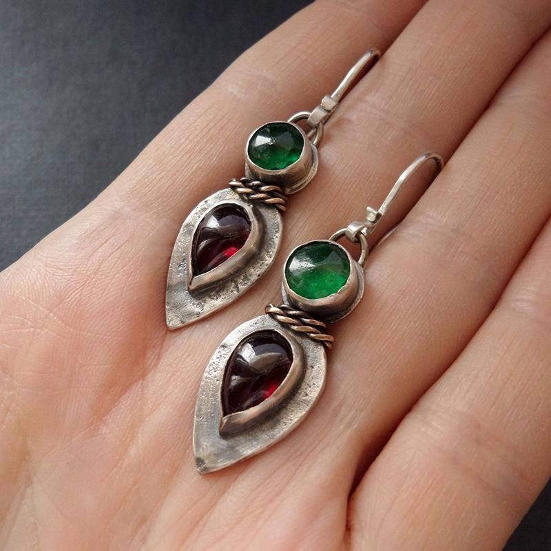 Pendientes vintage geométricos sencillos, redondos, con incrustaciones de gota de agua en rojo y verde, de AliExpress TEMU, joyería de estilo europeo y americano.
