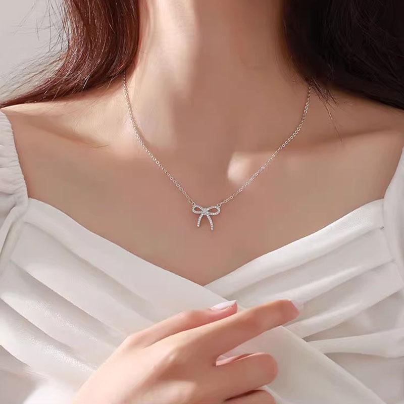 Collar de circonita con lazo de Corea del Sur para mujer, accesorios de lujo ligeros de alta calidad, diseño de nicho, cadena de clavícula que combina con todo, moda