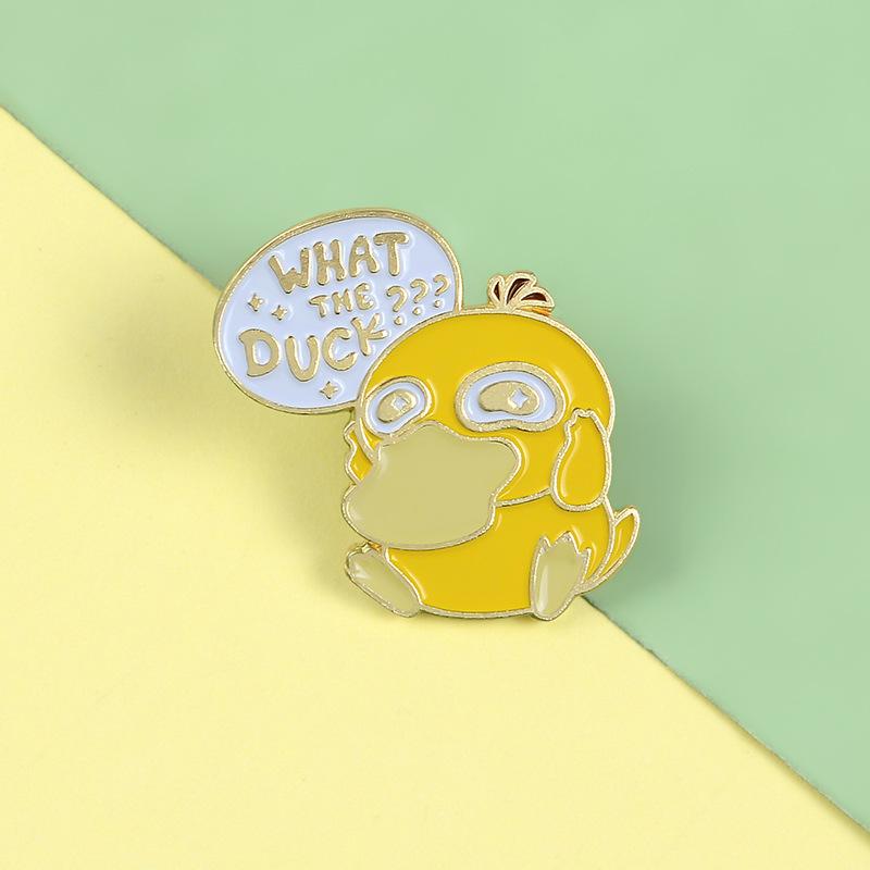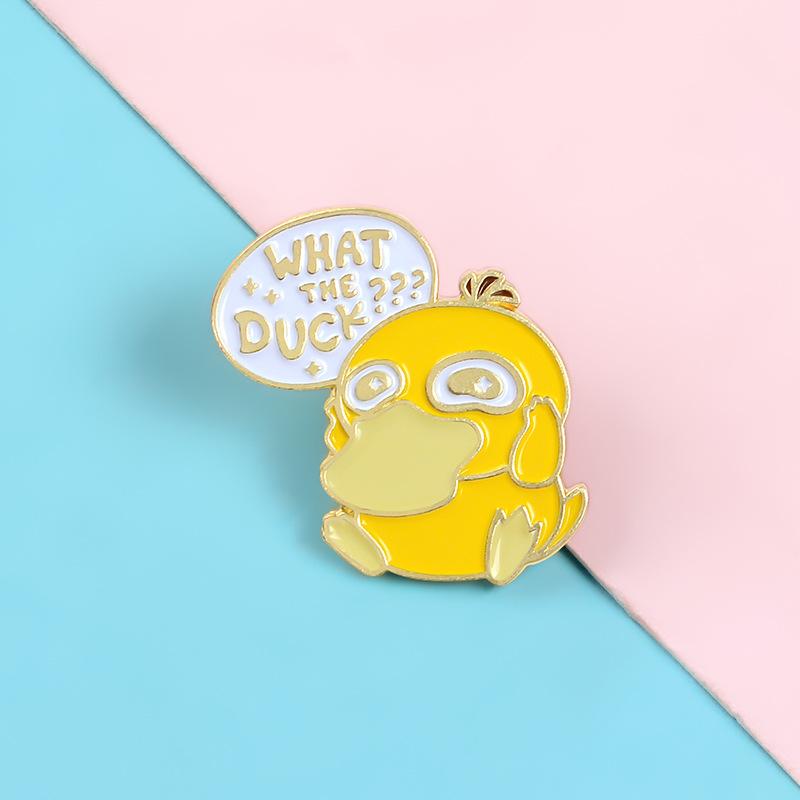 Broche de pintura de modelado con cuadro de diálogo de letras de pato amarillo lindo creativo de dibujos animados, accesorios de Joker, insignia al por mayor