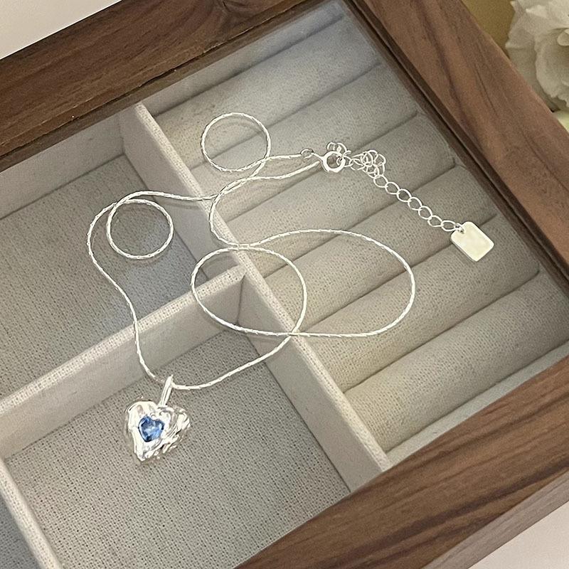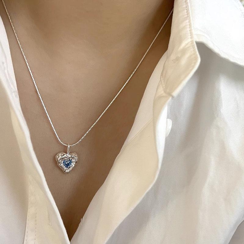 Collar de Corazón Plisado de Piedra Azul de Moda y Personalizado Estilo Coreano para Mujer Estilo Ins Nicho Versátil Cadena Clavicular de Alta Gama