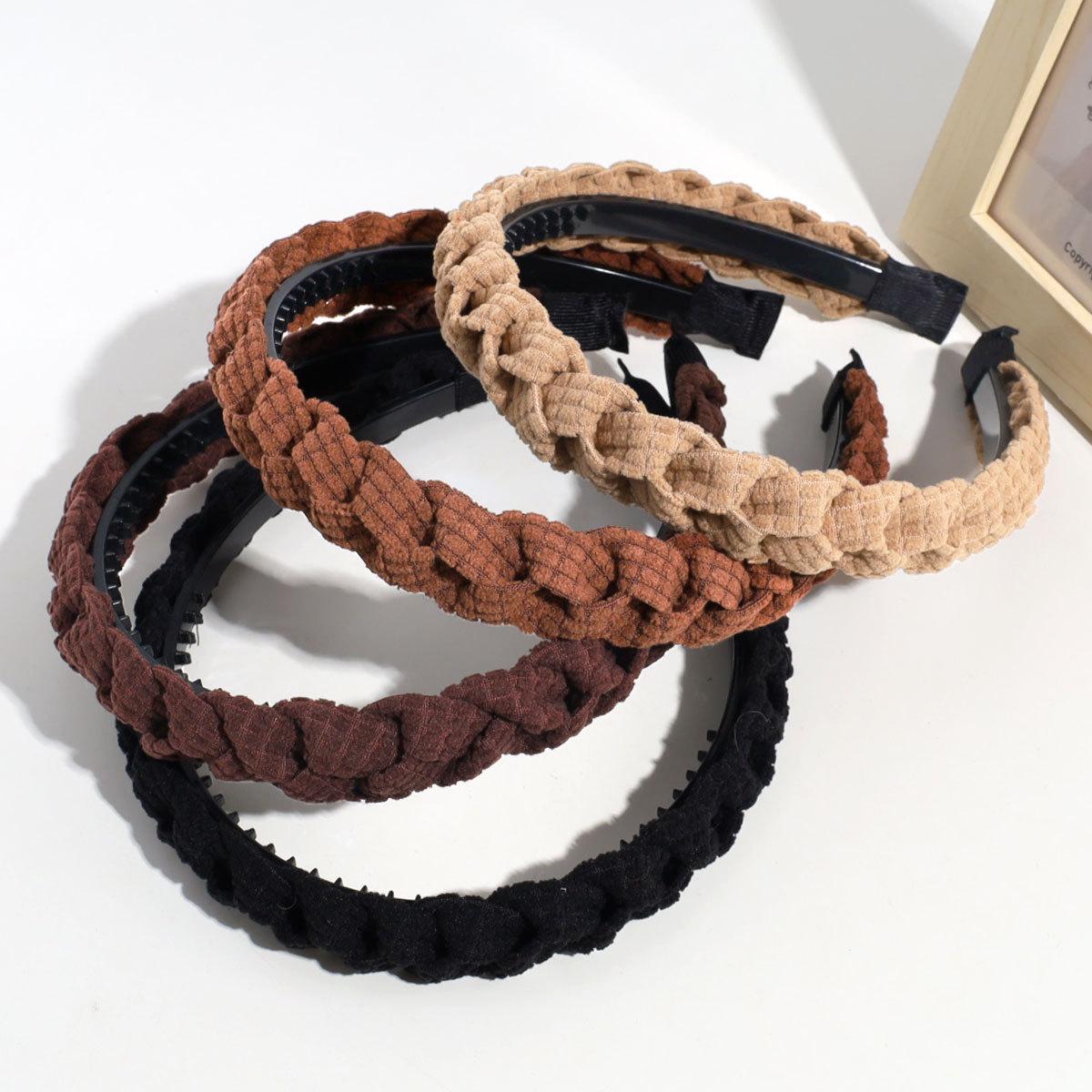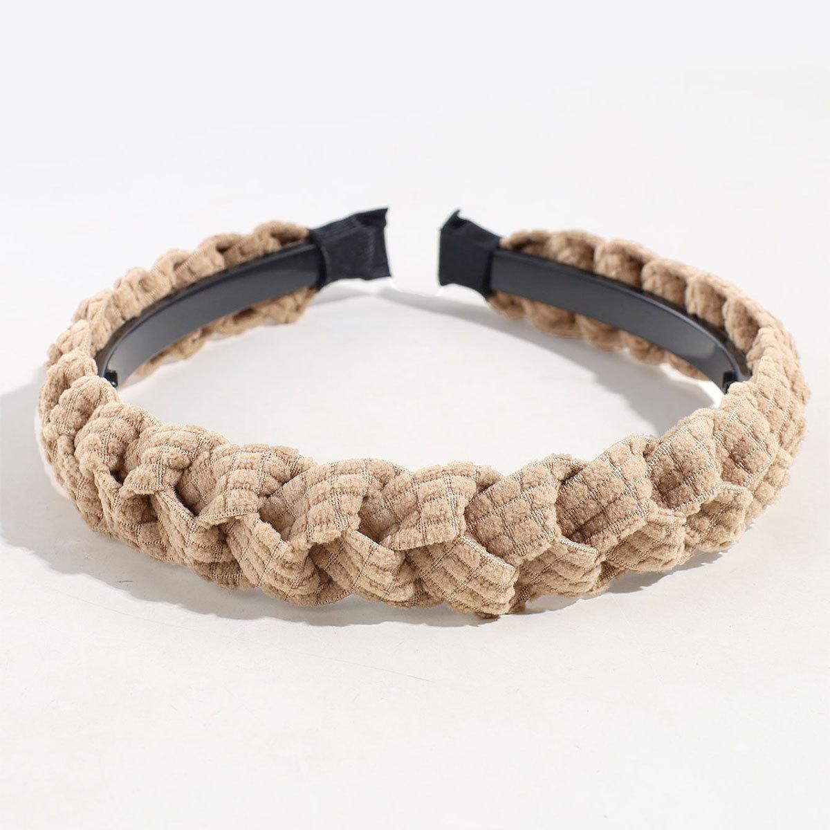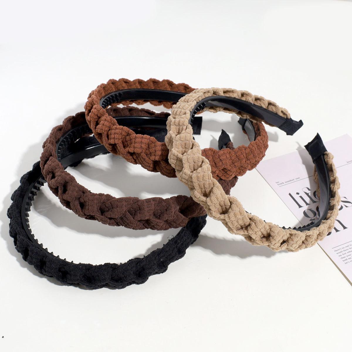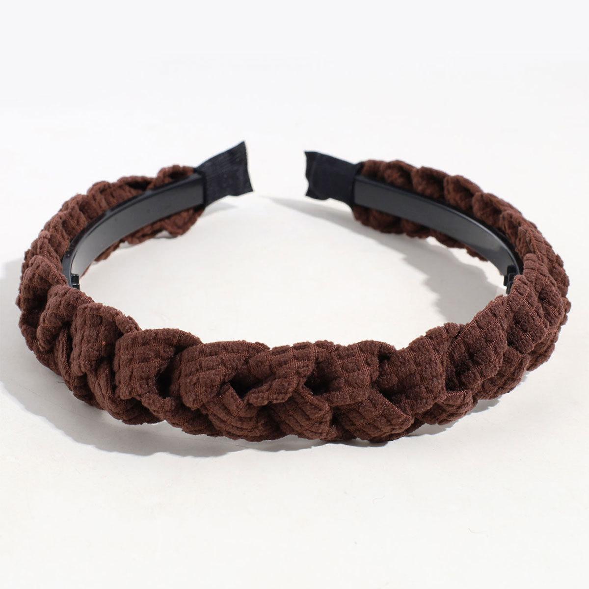 Otoño e invierno serie marrón diadema delgada suave diadema tejida trenzada retorcida para lavar la cara, presionar el cabello, accesorios para el cabello