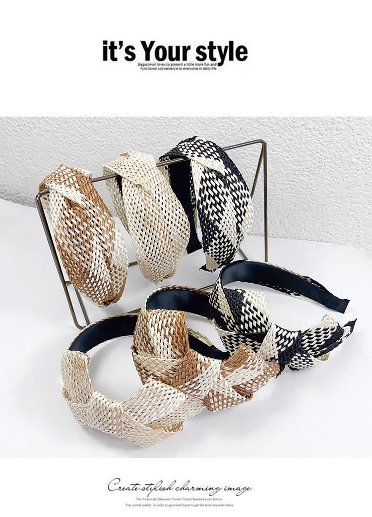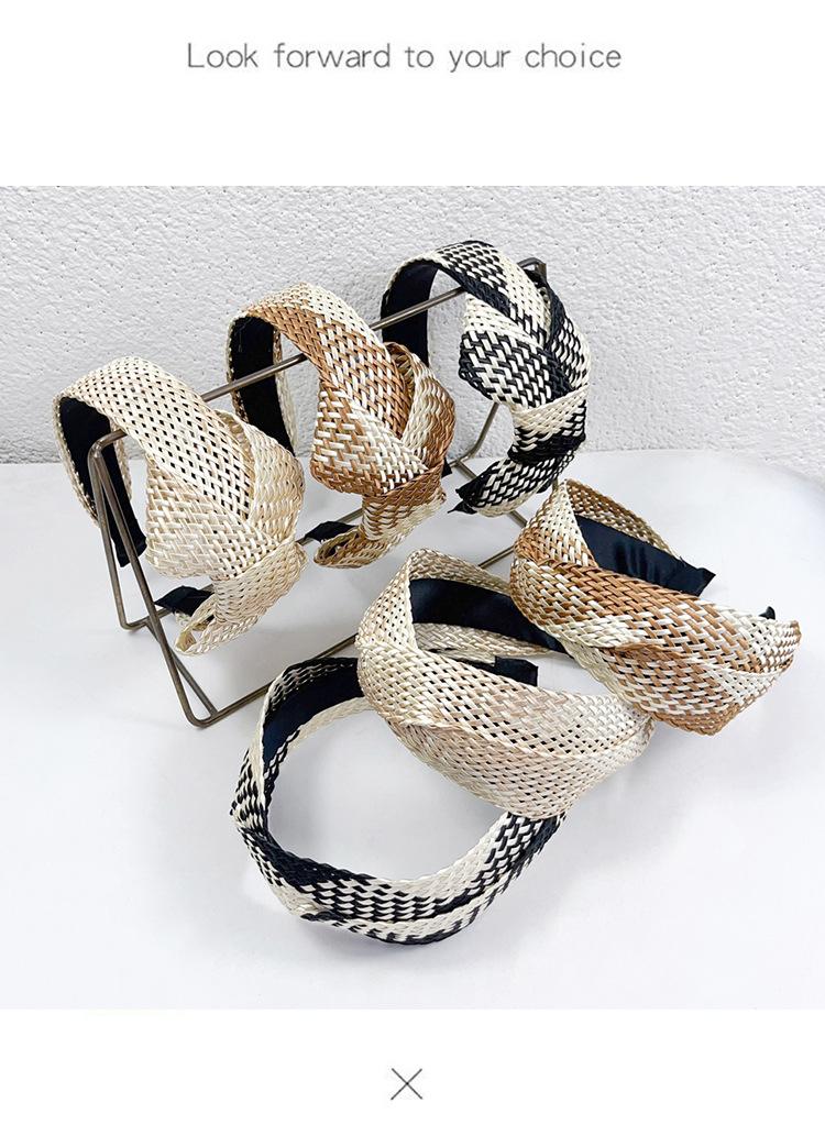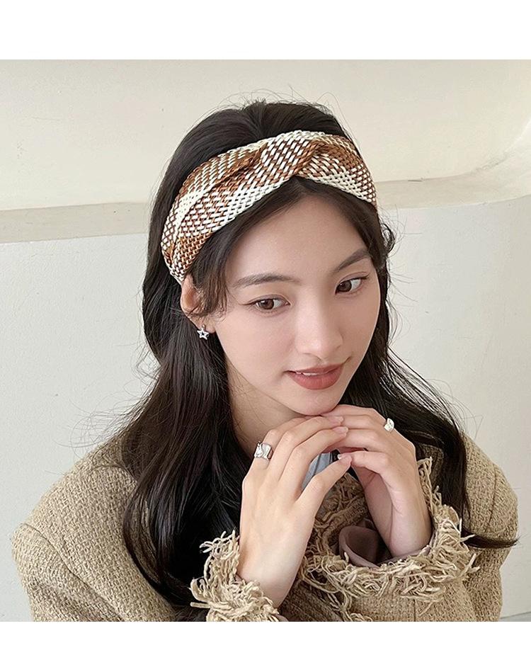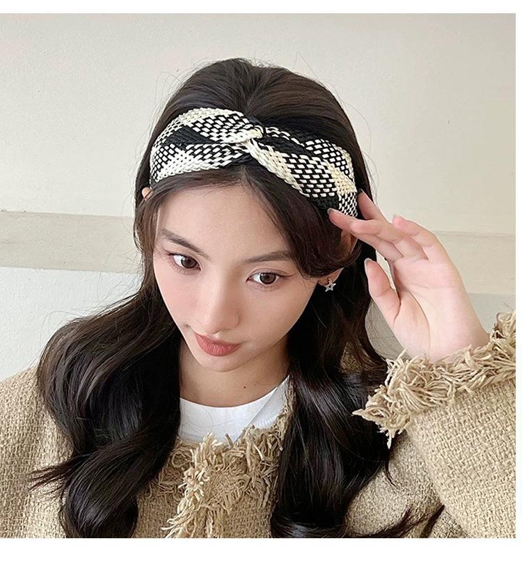 Diadema tejida con patrón de estilo europeo y americano nuevo transfronterizo, diadema de lazo versátil de personalidad de celebridad de internet para mujer Mori, accesorios para el cabello para mujer