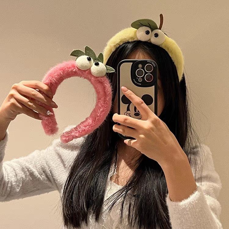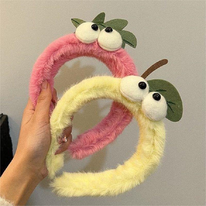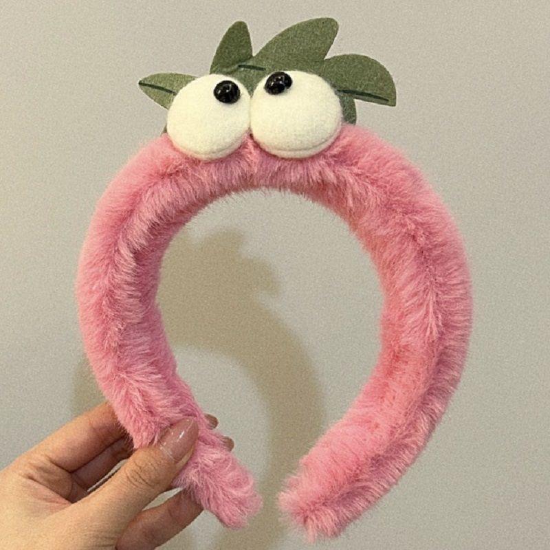 Diadema con forma de ojo grande, diseño de fresa rosa con dibujos animados, ideal para el cabello de niña vigorosa, con parte superior craneal alta, accesorios para el cabello.