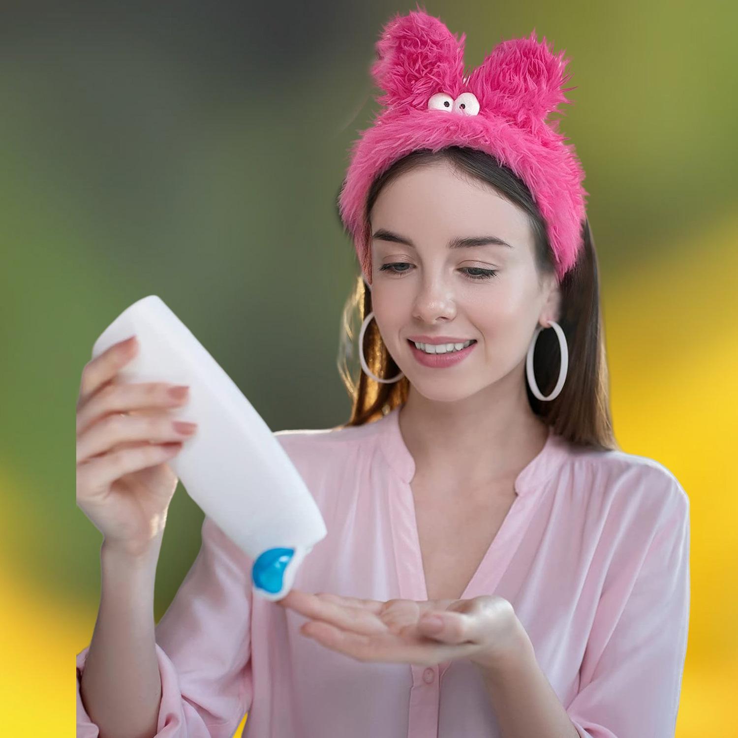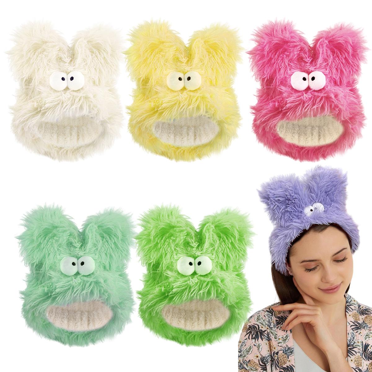 Bonita y divertida diadema con orejas de conejo para el pelo, accesorio de felpa para todo tipo de cabello, mascarilla de yoga de terciopelo larga, diadema multiusos para maquillaje y belleza.