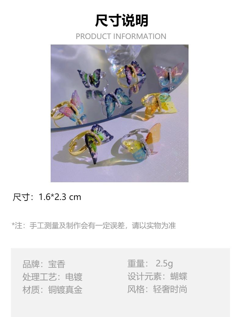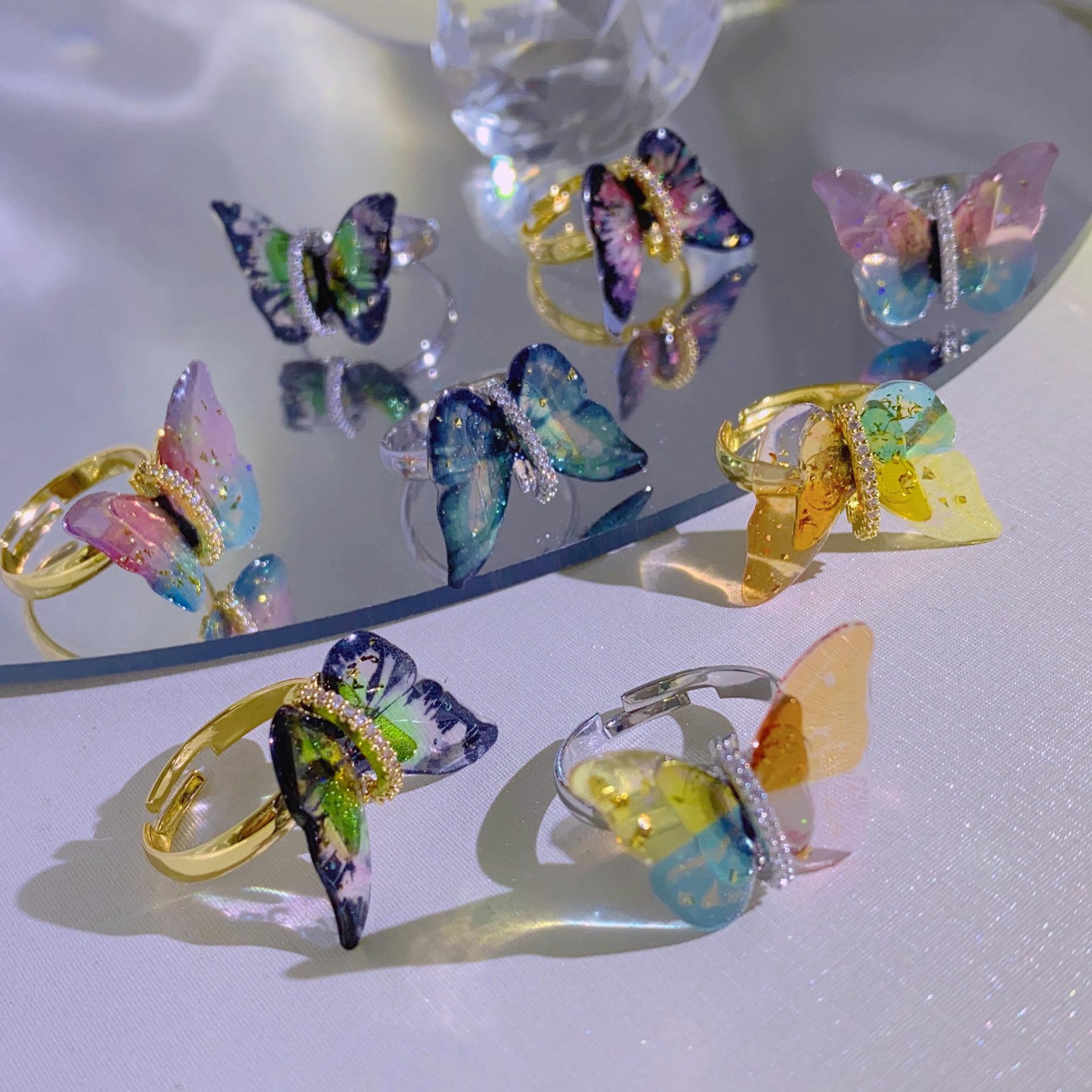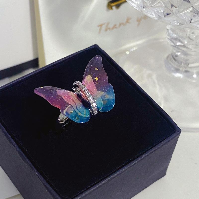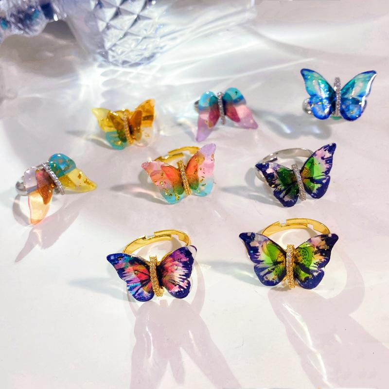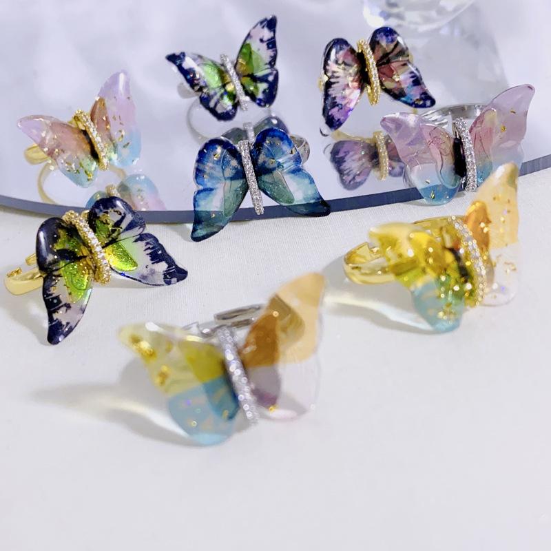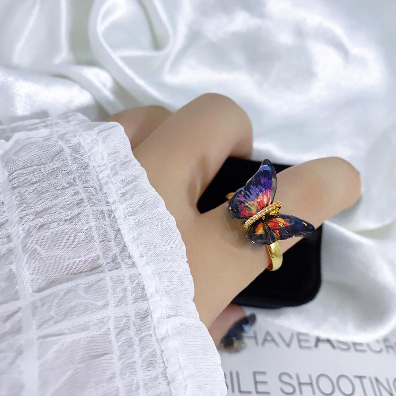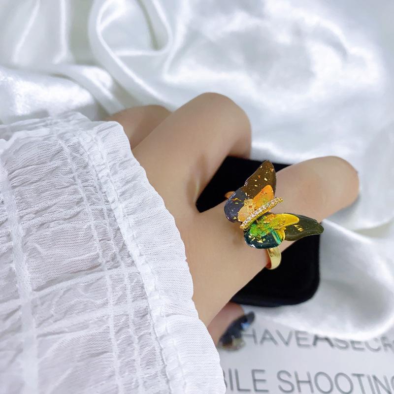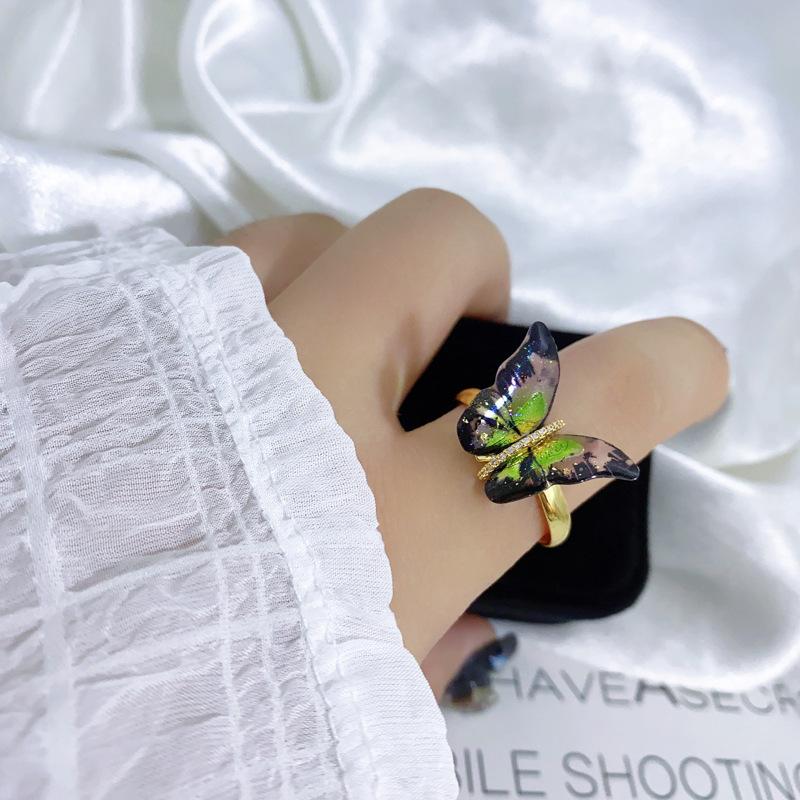 Anillo de mariposa colorido abertura ajustable anillo para mujer simple temperamento moda lujo ligero estilo INS estilo frío joyería de mano