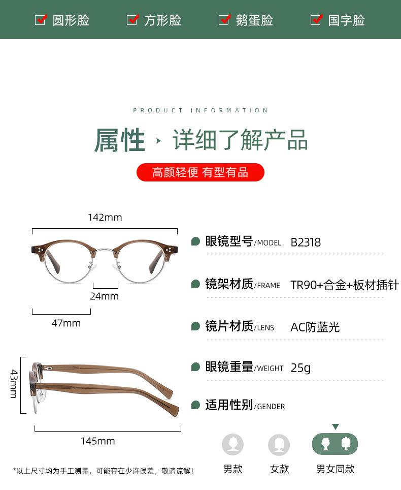 Nuevas gafas con placa TR90 para hombres y mujeres, con el mismo marco de cejas anti-luz azul, se pueden equipar con gafas para miopía.