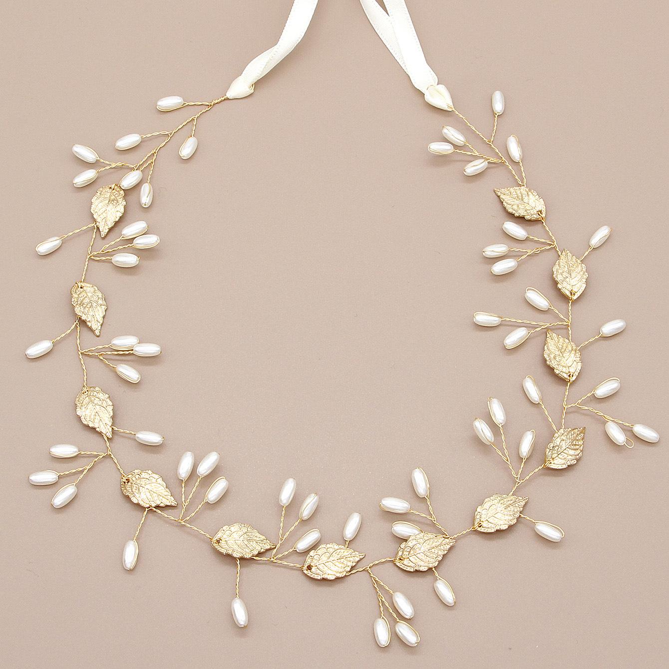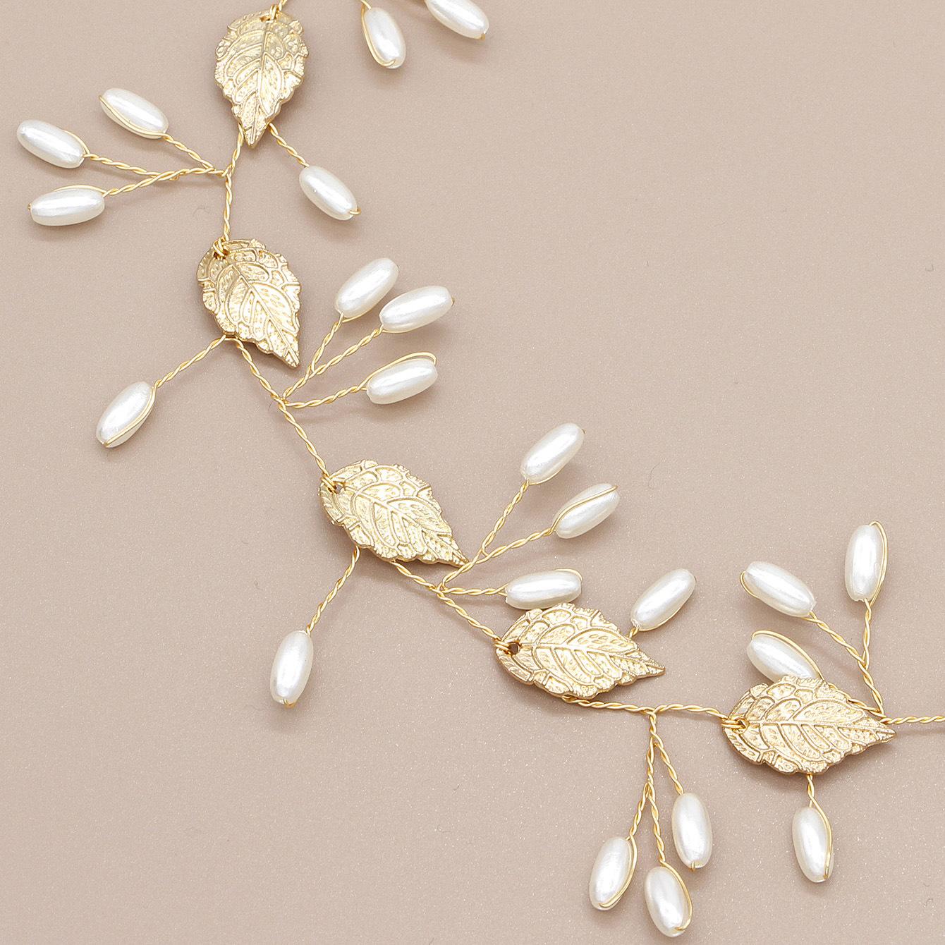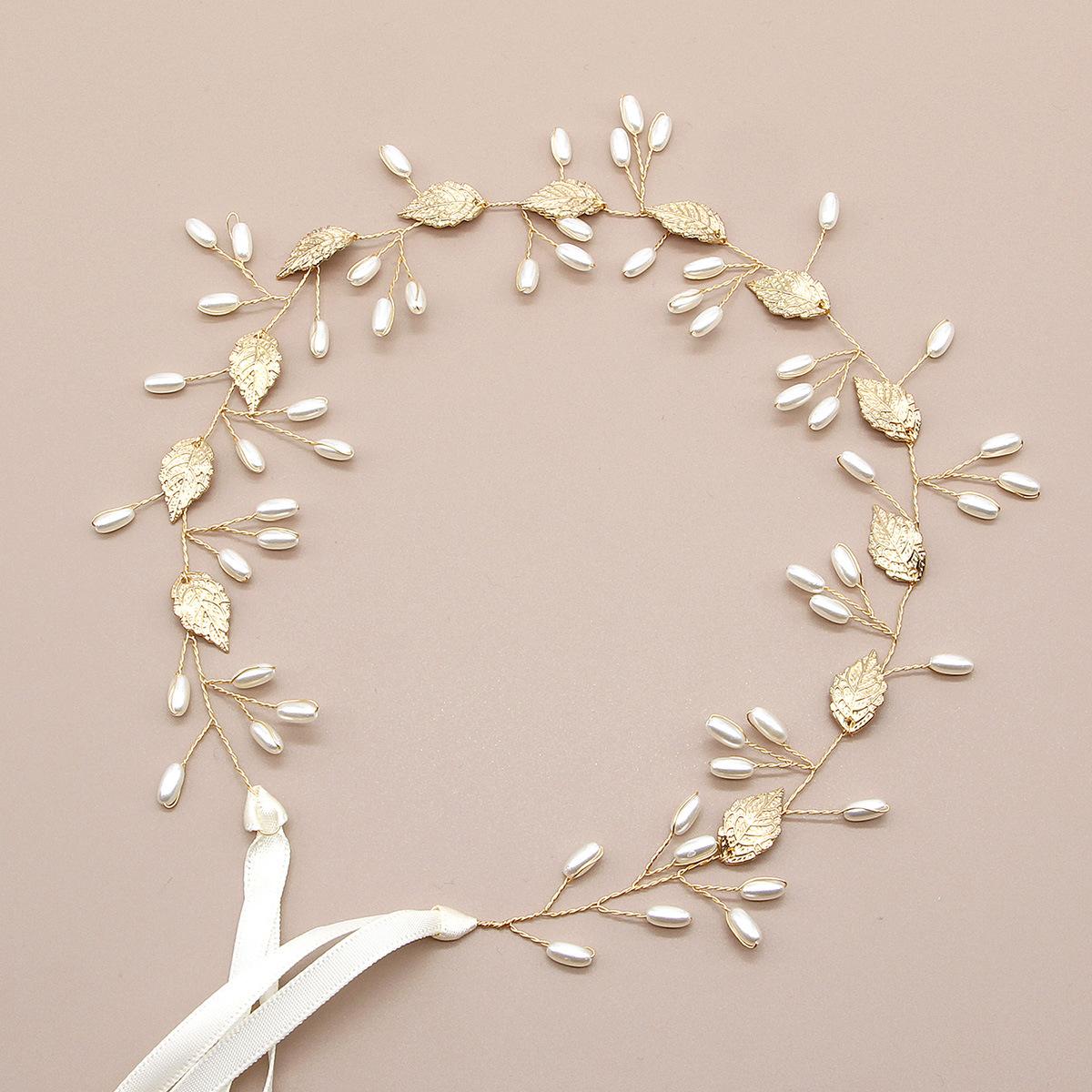 Accesorios para vestidos de niña, aleación, hoja, forma de hoja, perla, cuentas retorcidas, cadena suave, banda para el cabello, tocado, banda para el cabello con cinta