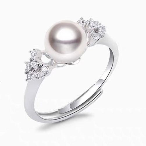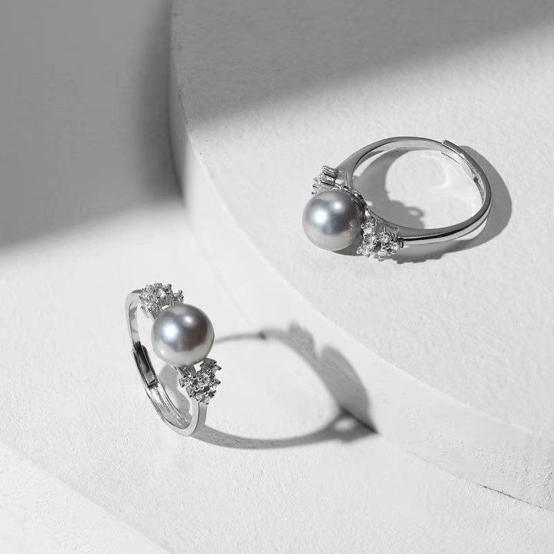 Nuevo anillo de perla gris con diamantes para niña, estilo moderno y elegante de alta gama, estilo coreano, ligero y lujoso con circonitas.