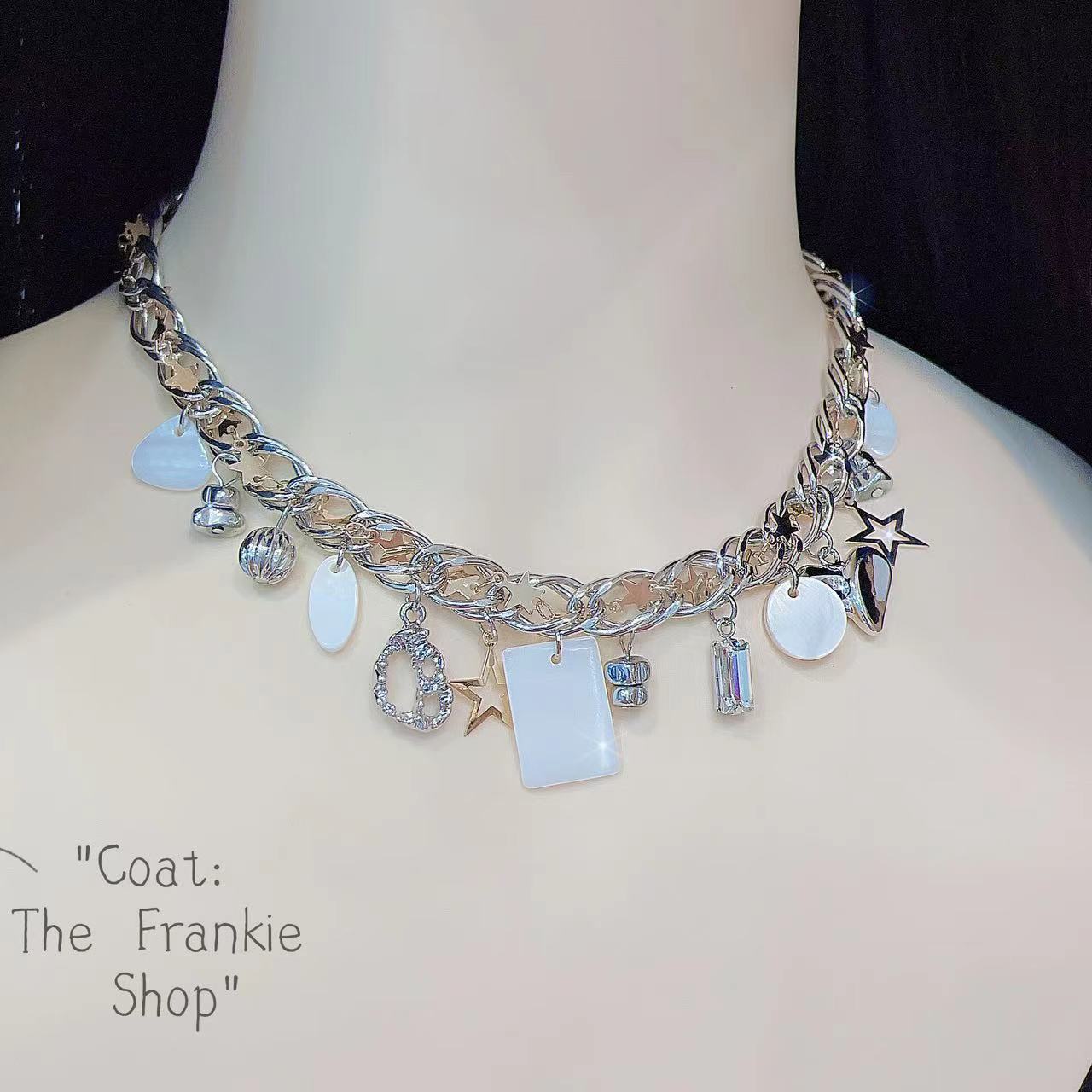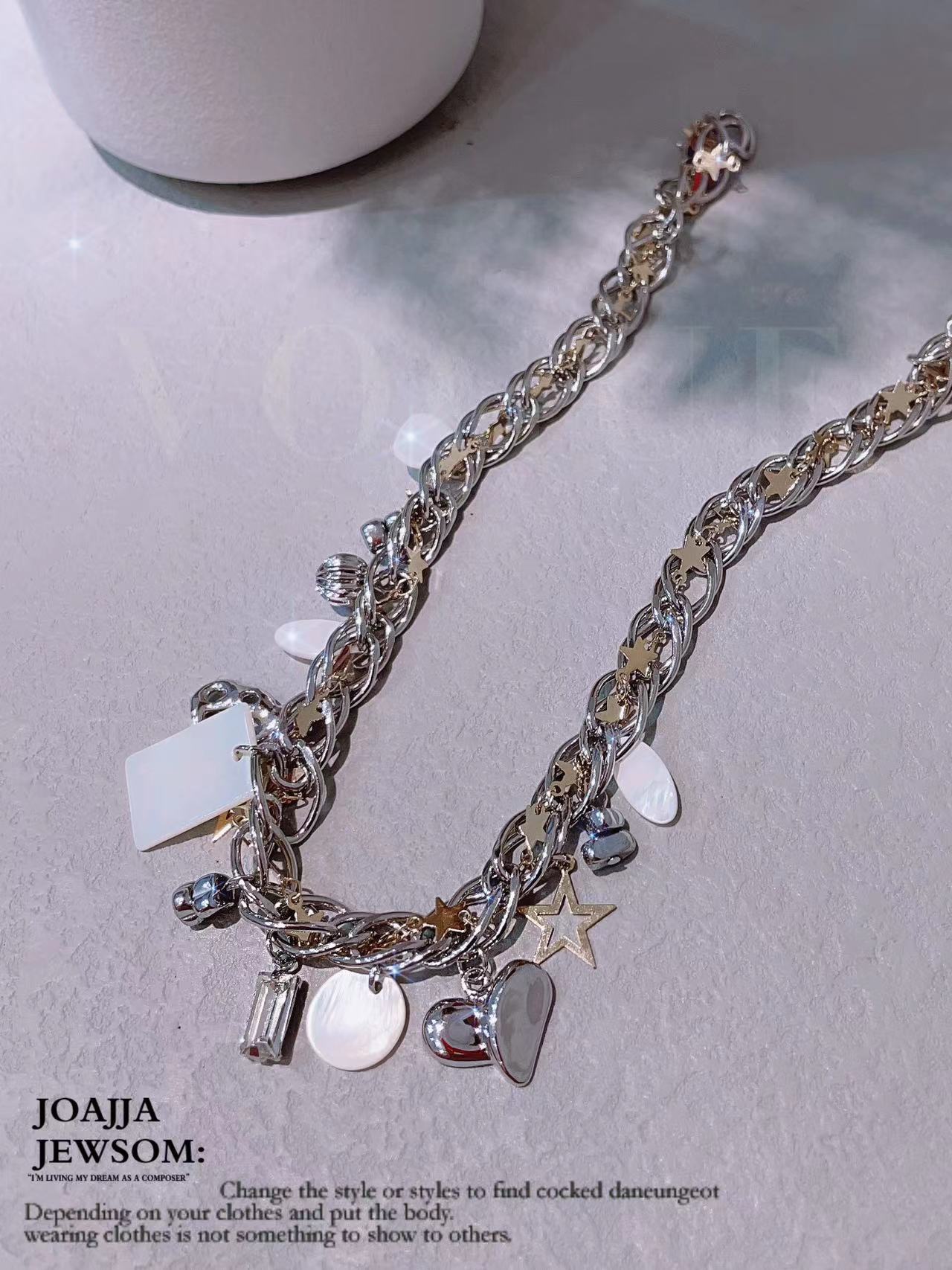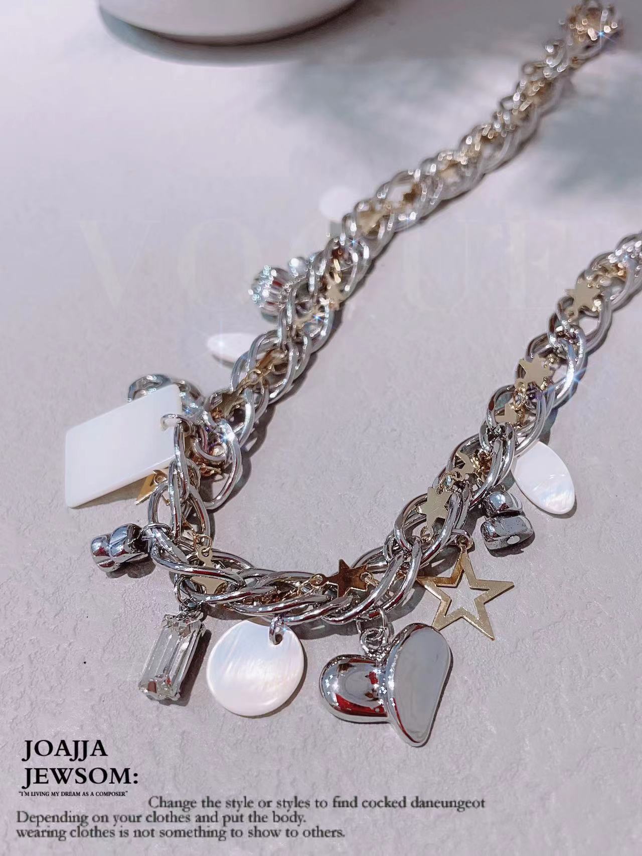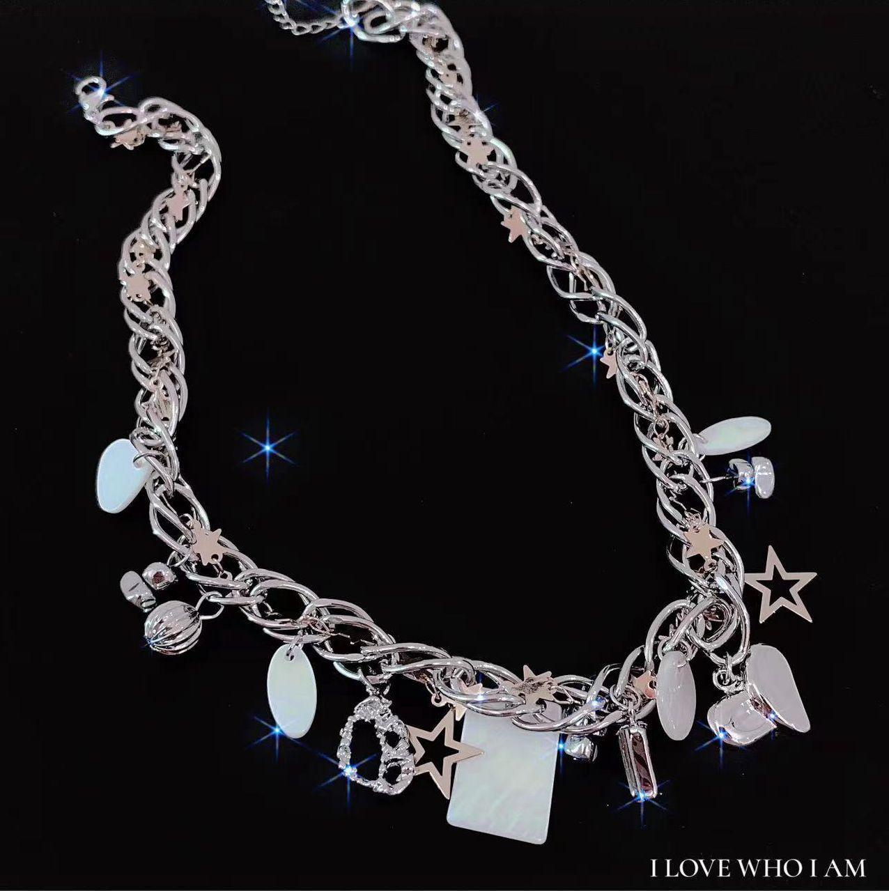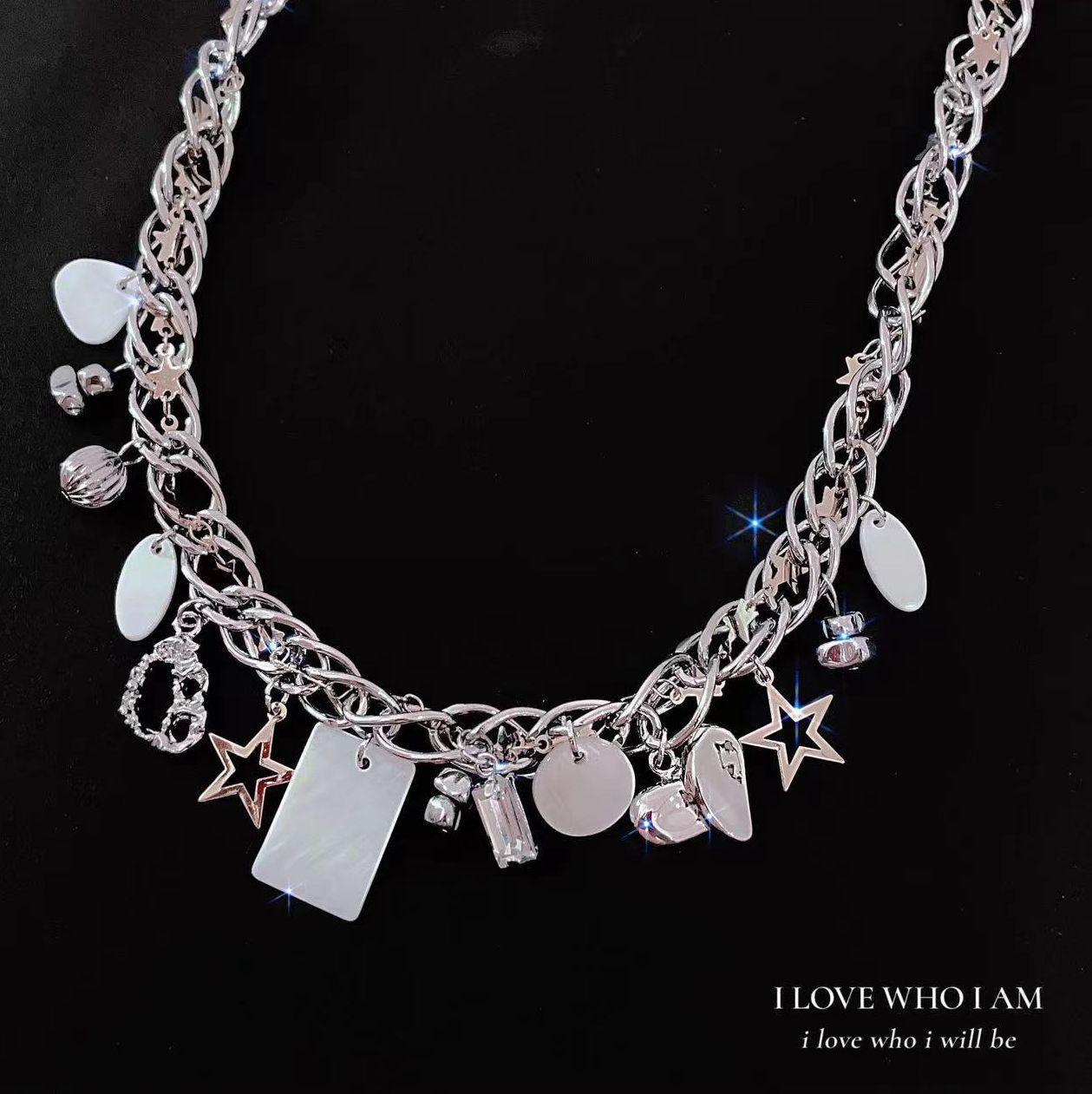 Collar Punk de Alta Gama Dulce y Cool con Colgante de Estrella Calada, Concha Blanca, Cadena para Clavícula, Diseño Geométrico Irregular, Collar Personalizado