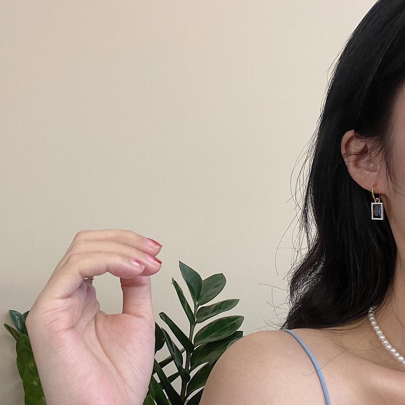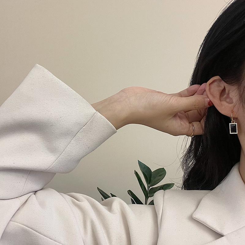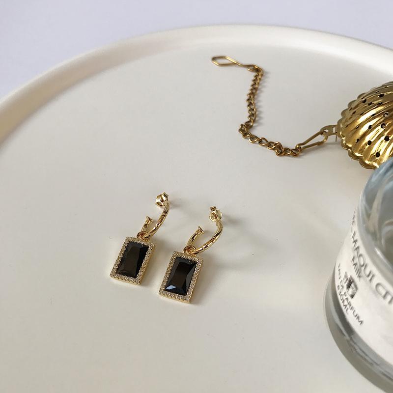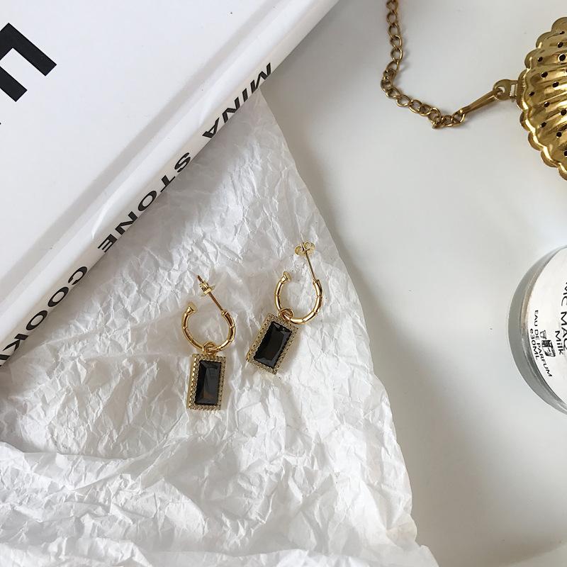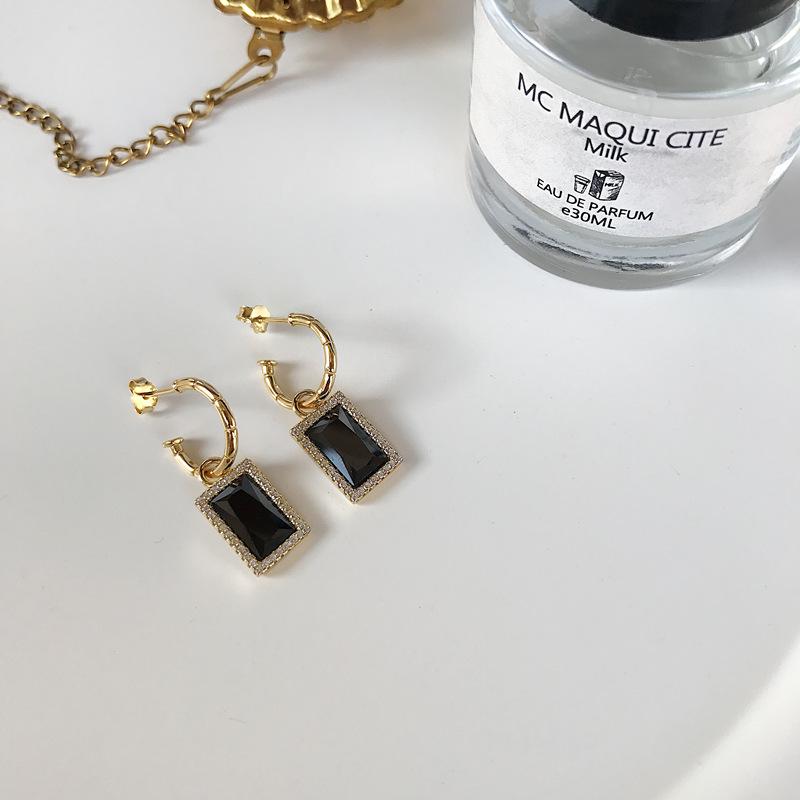 Kashite Corea del Sur estilo coreano S925 plata negro oro cuadrado pendientes personalidad temperamento hermosos pendientes mujer Red Red