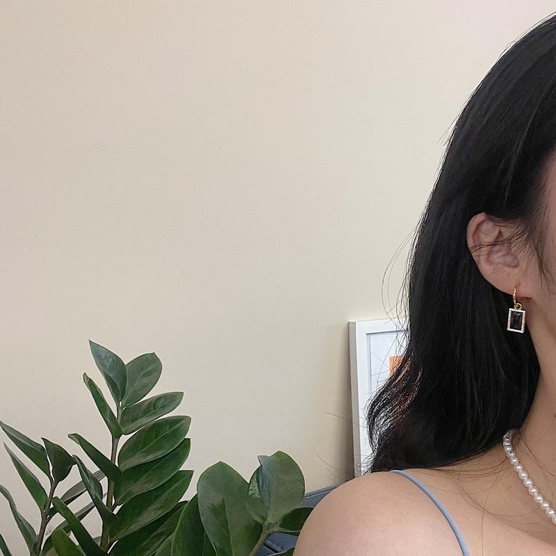 E317 black gold square stud earrings (yellow gold) 925 silver