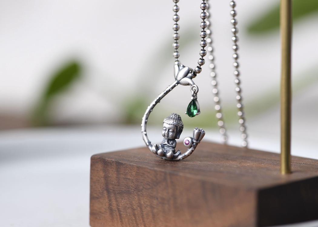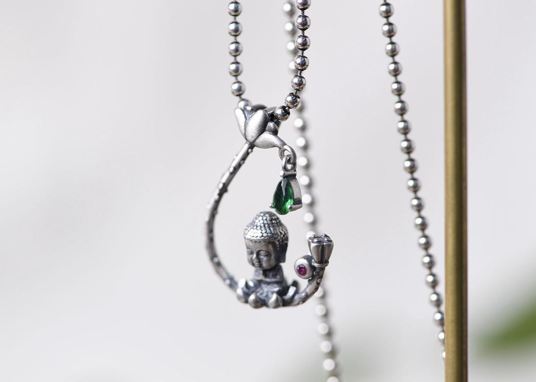 Colgante de Buda Maitreya de plata S925 con diseño retro de ciervo dorado, joyería de plata al por mayor, colgante de collar de loto tridimensional para mujer