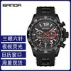 Reloj de Cuarzo Luminoso de Moda Sanda de Alta Venta para Hombre con Tres Subesferas, Calendario, Correa de Silicona, Reloj de Pulsera Deportivo Impermeable