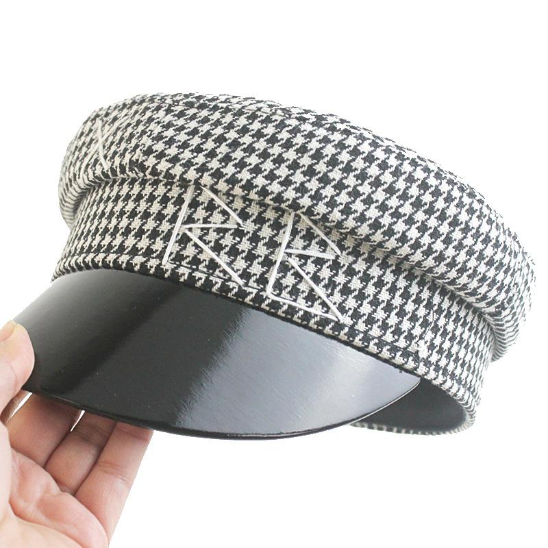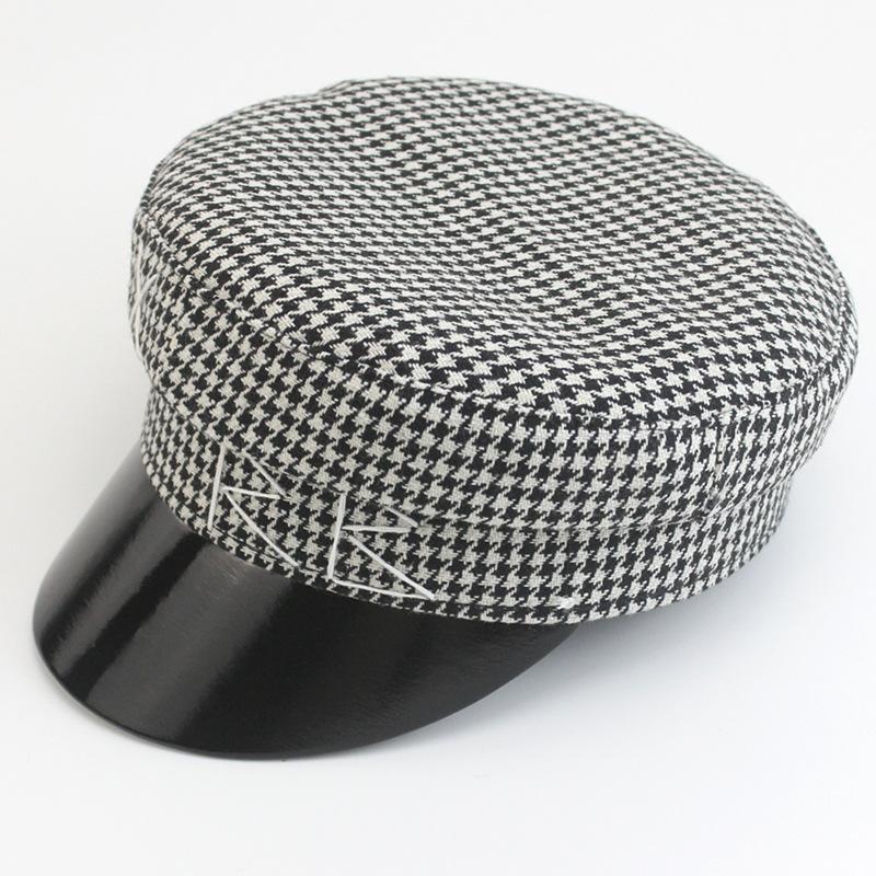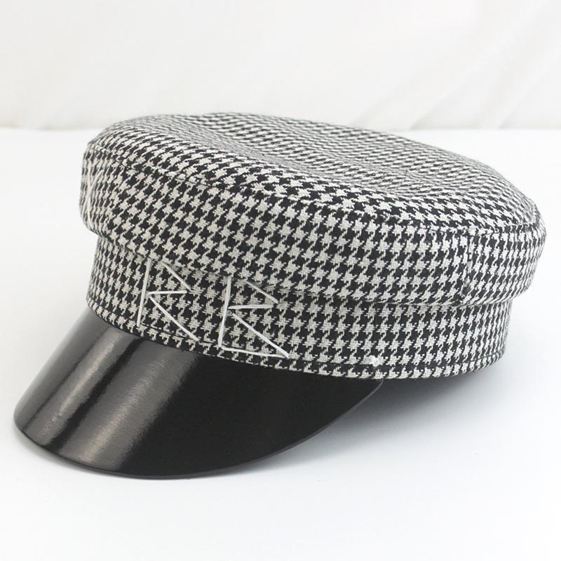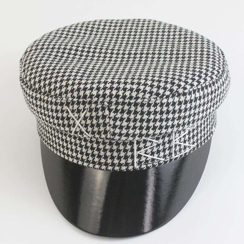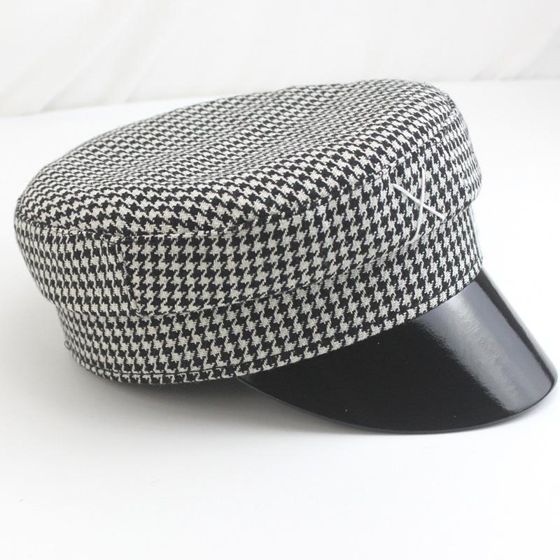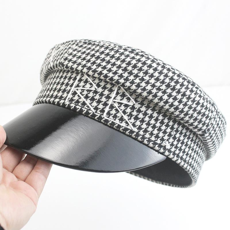 Sombreros de Otoño e Invierno para Mujer Moda Coreana Sombrero Pata de Gallo Azul Marino Bordado Letra Rb Cálido Gorra con Visera Sombrero Octogonal de Cuadros