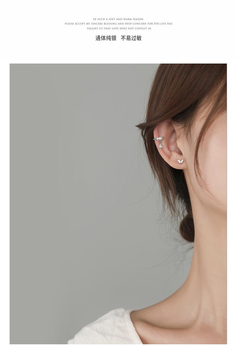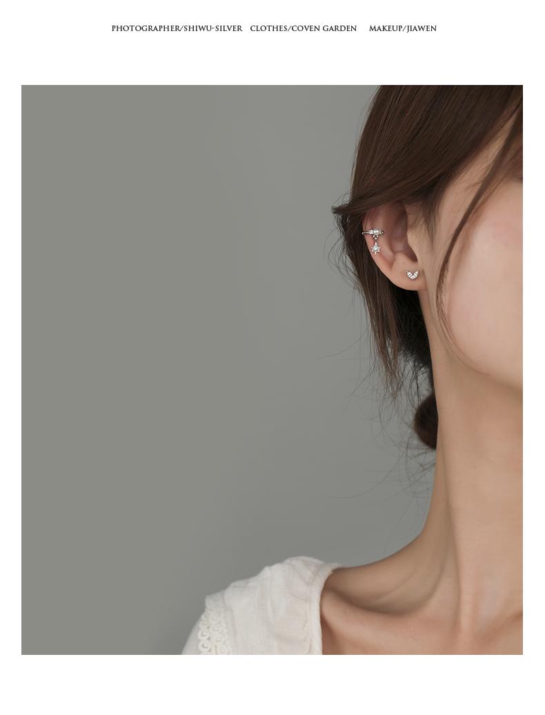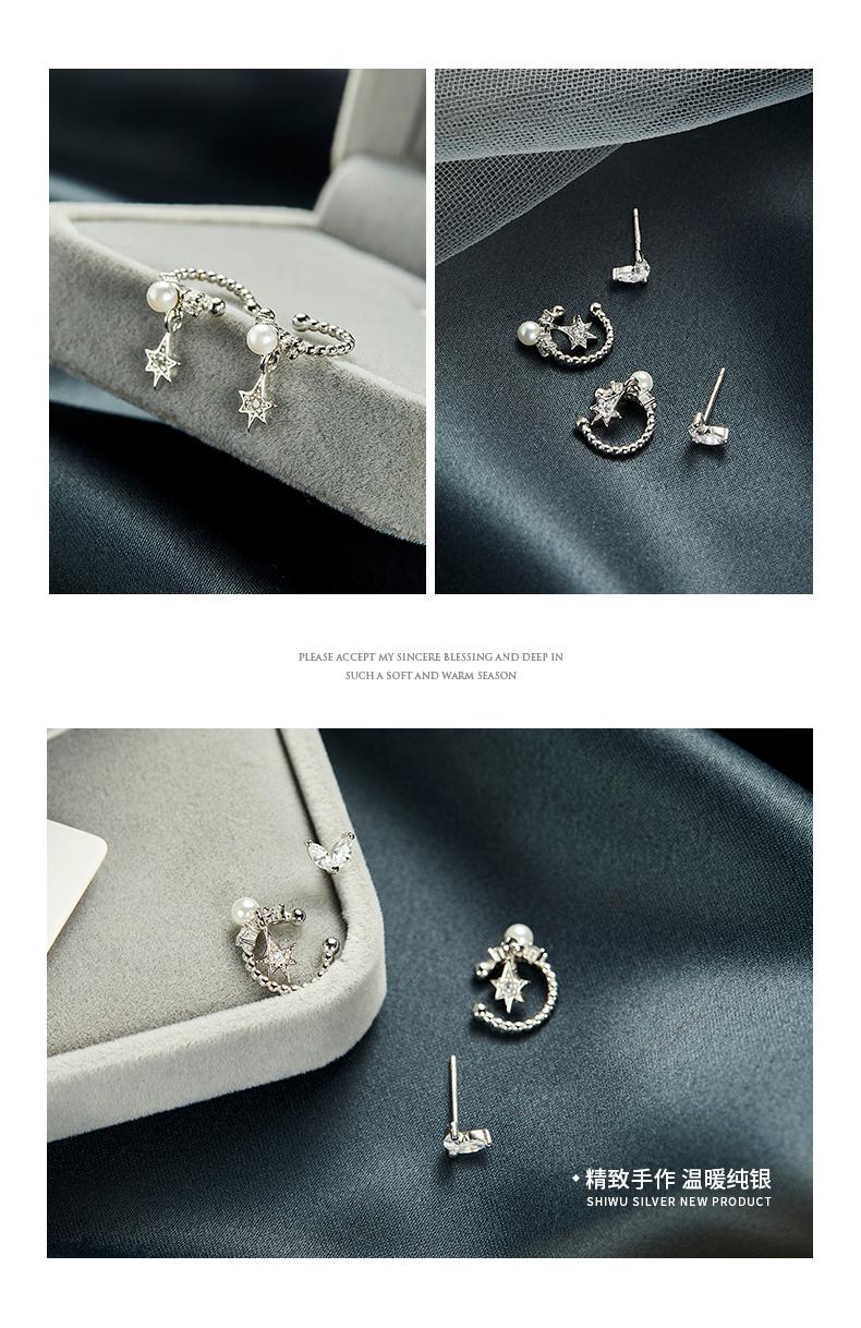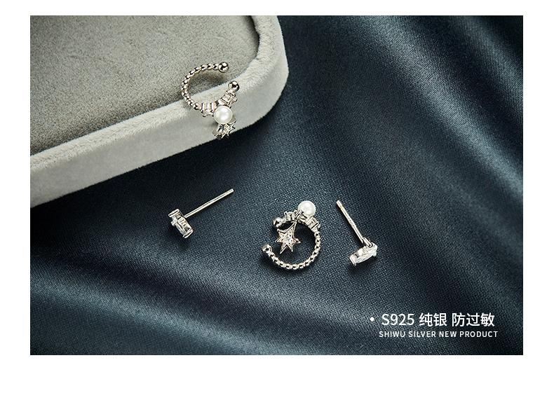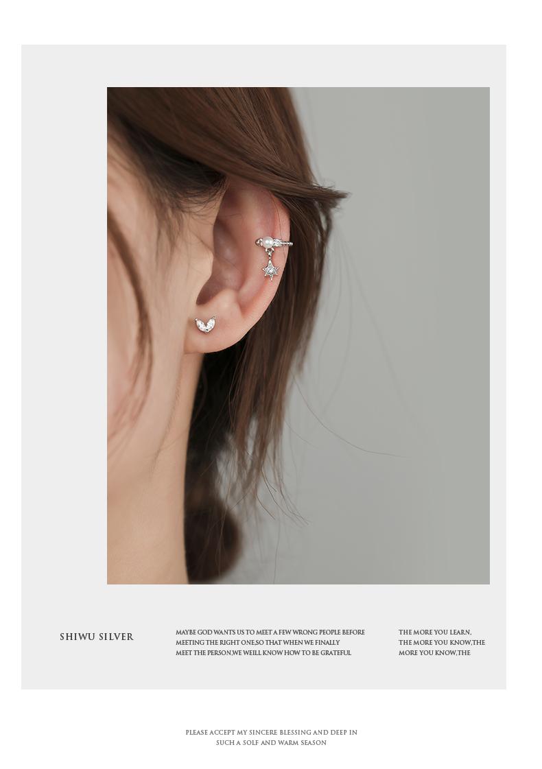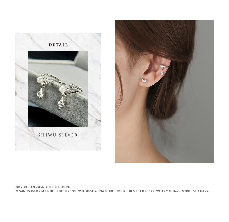 Clip para Oreja de Perla Estrella Plateada Sin Perforaciones para Oreja Estilo Hada Mori Súper Hada Clip para Oreja Retro Sentido del Diseño de Personalidad