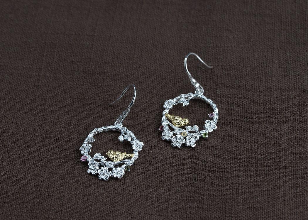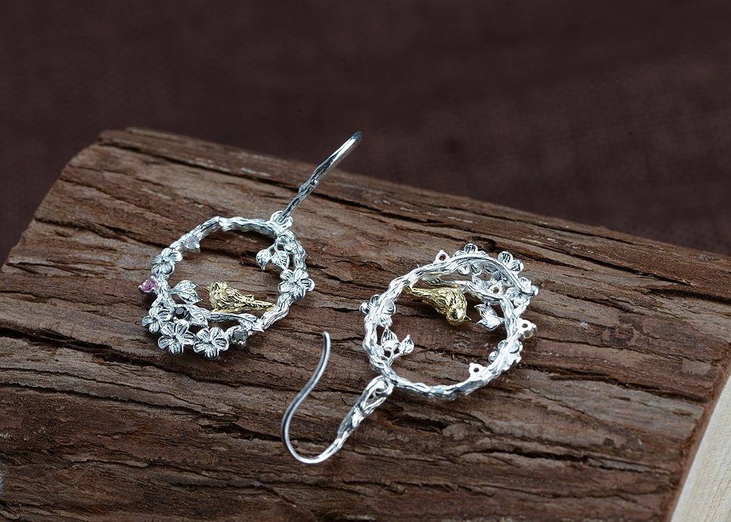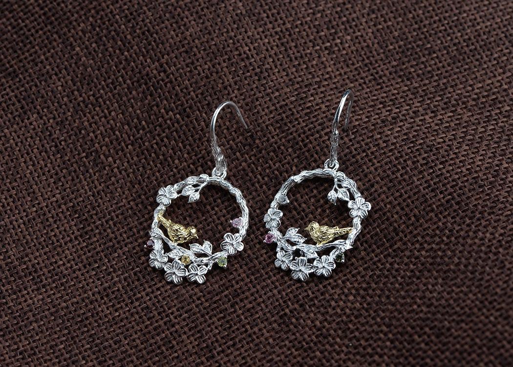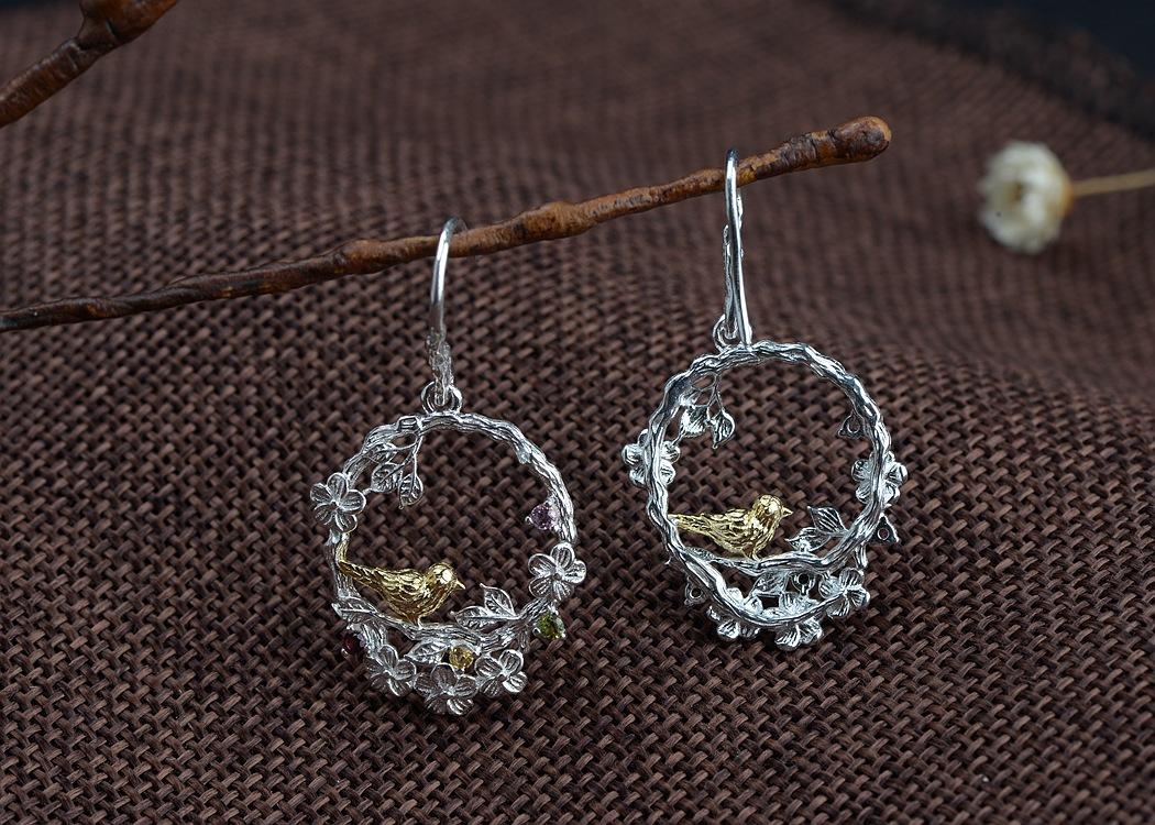 [Nombre del producto] Aretes de plata S925 con forma de pájaro