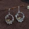 Pendientes Colgantes de Plata de Ley S925 Ciervo Dorado Rey Plata Lisa Arte de Oro Flotante Arte Pastoral Rama de Pájaro Fresco Pequeño Pendientes de Mujer