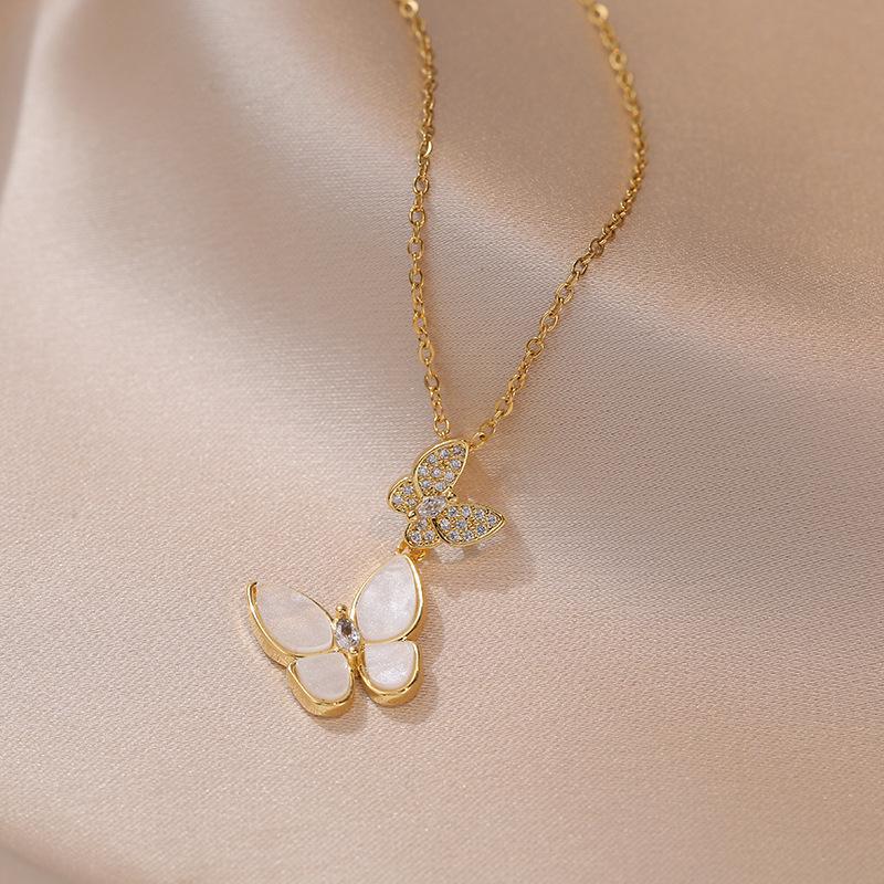 Collar para mujer, diseño de celebridad de internet, mariposa transfronteriza, circonita, nicho, moda, nuevo diseño, colgante con temperamento, cadena de clavícula de acero de titanio.